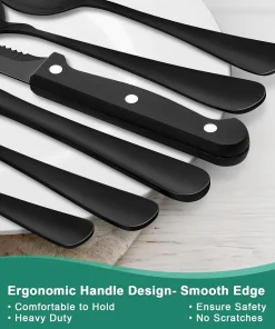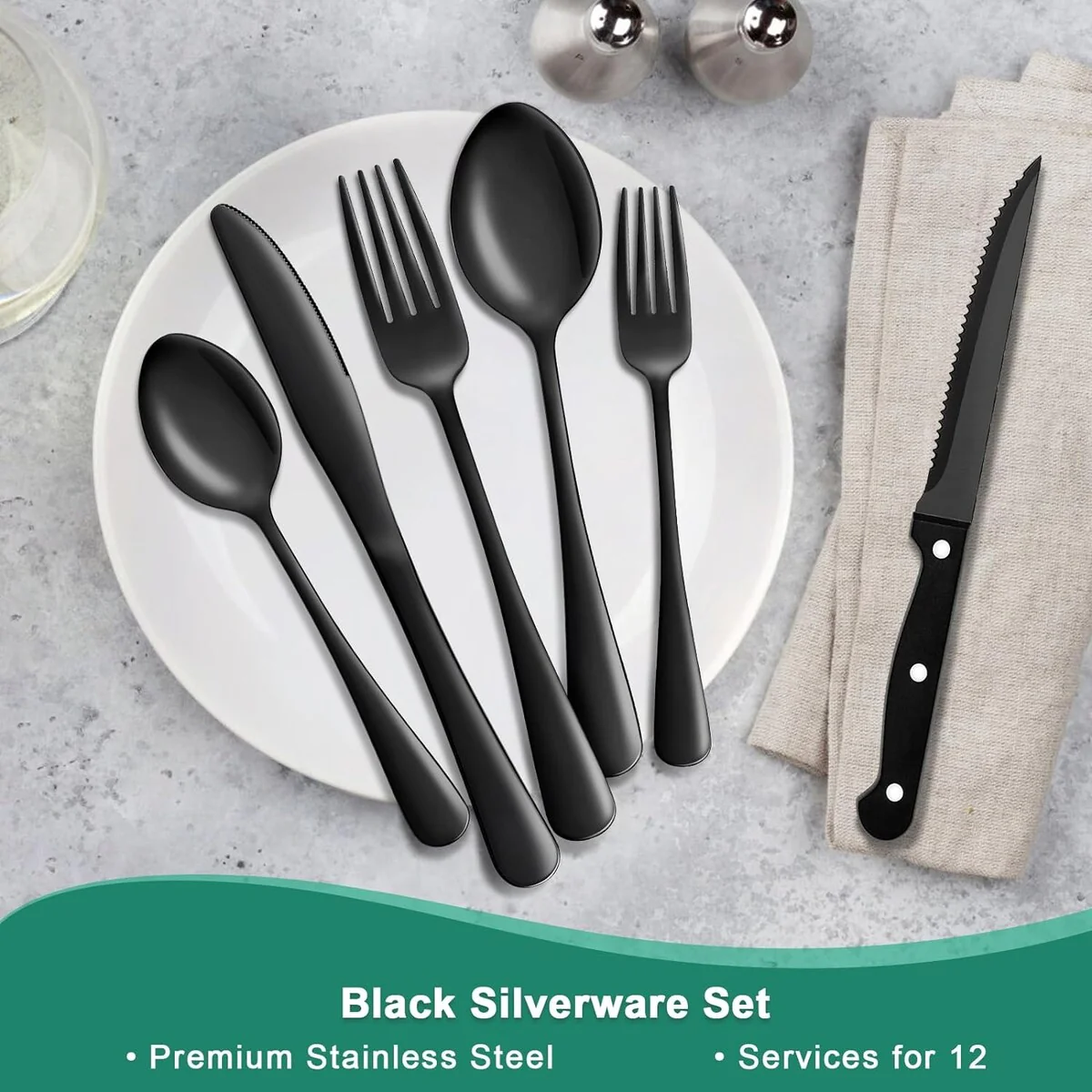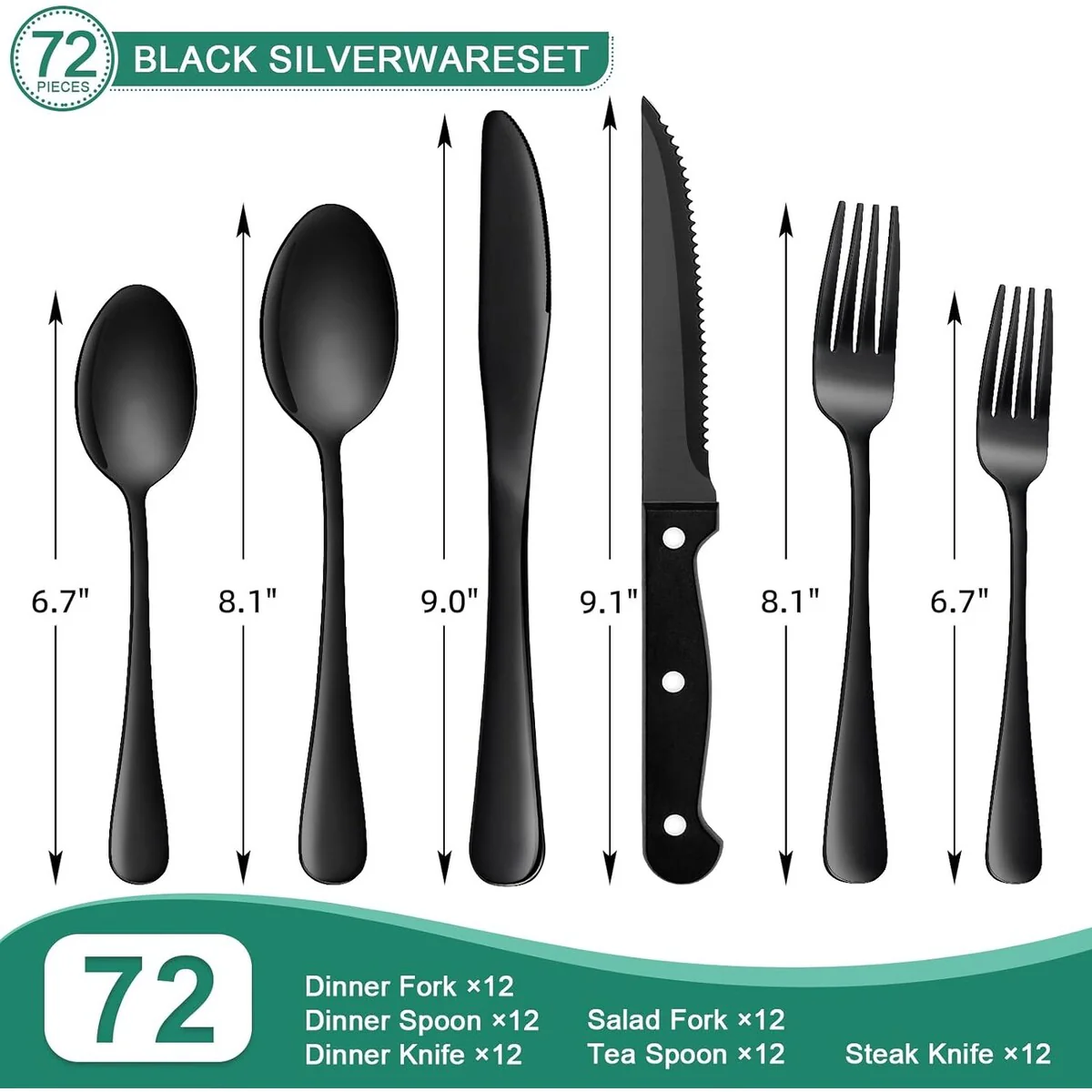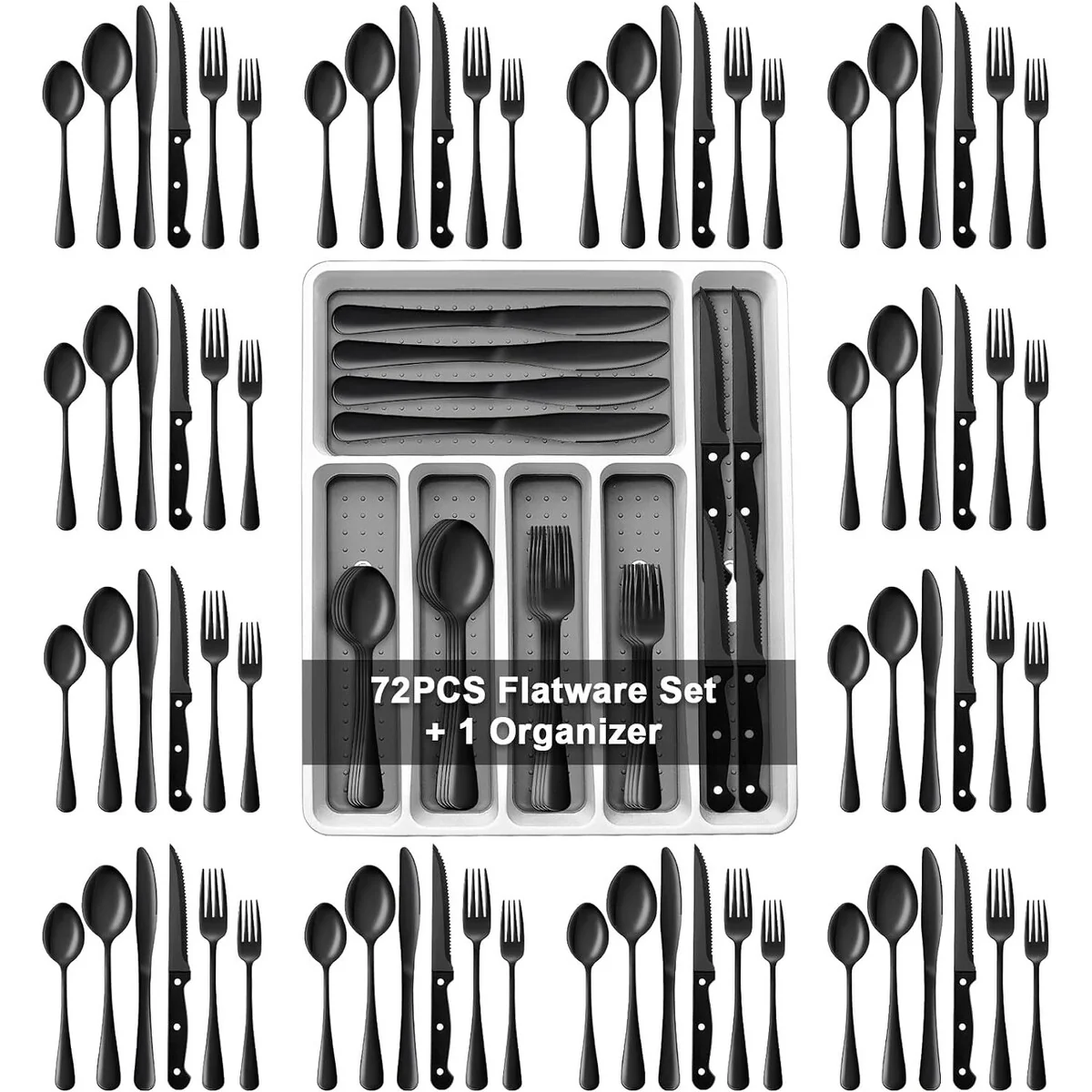 PREMIUM 73-PIECE SILVERWARE SET – Silverware set includes 12 steak knives,12 dinner knives, 12 dinner forks, 12 salad forks, 12 dinner spoons and 12 teaspoons. Additional 1 silverware tray organizer which is simple and generous, suitable for most families, and can be used on formal or casual occasions. Provide you with a better dining experience.