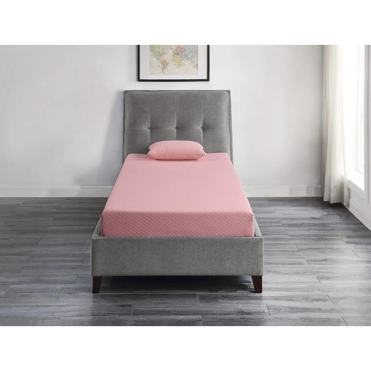 The pink fabric covering the twin mattress is breathable, which allows for a comfortable nightās sleep no matter the season.