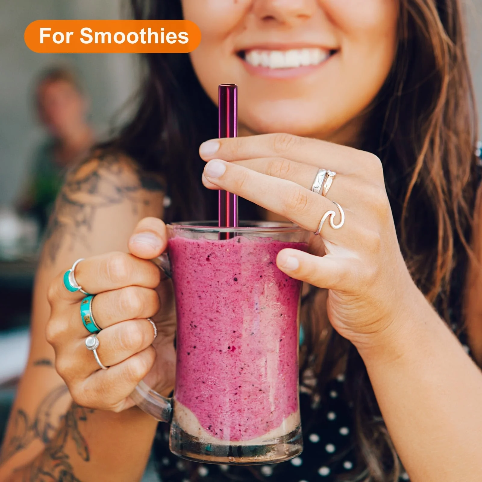 - Versatile Application – Reusable metal straws are available in different colors to fit different types of drinks. Suitable for enjoy beverages, milkshakes, juice, soda, coffee, tea, cocktail, and more cold and hot drinks in family gatherings, parties, outdoor picnics, barbecues, etc.