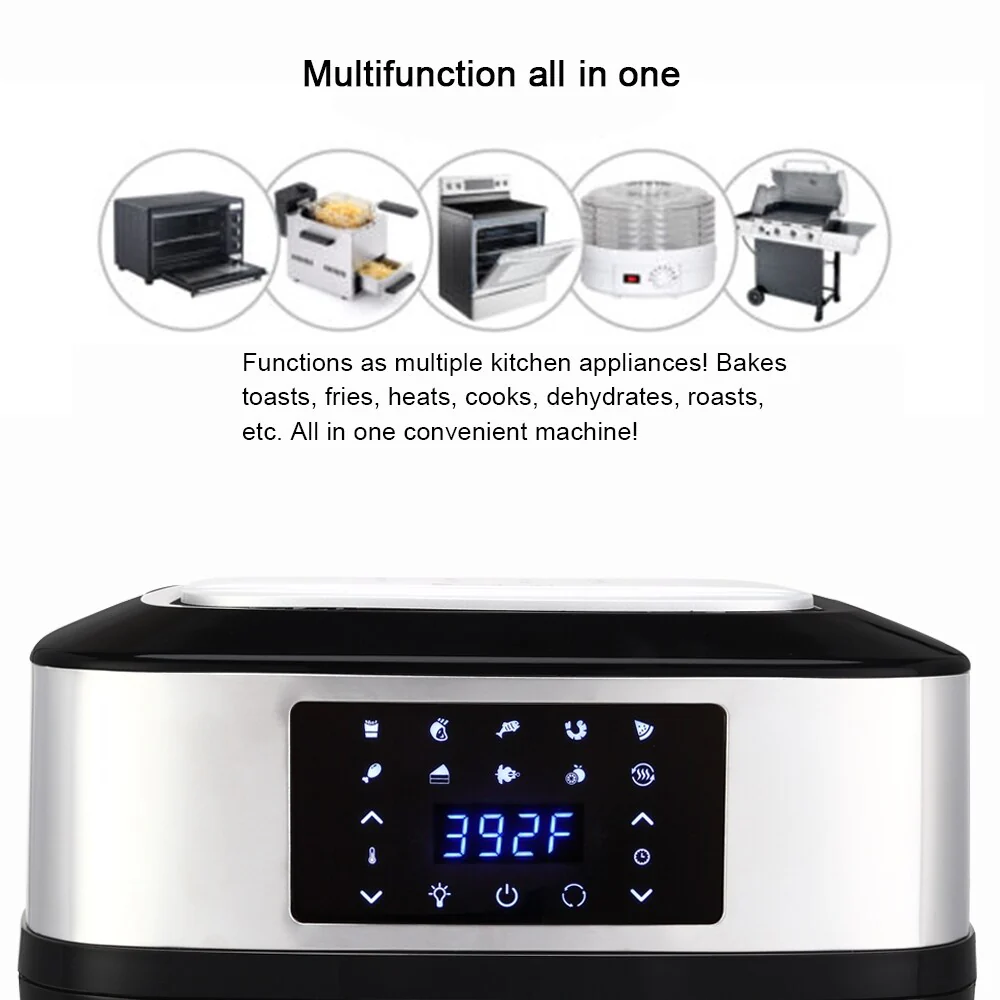 2. Digital easy one touch panel , 8 Preset Quick Menus , One Button Control : Internal lighting and Rotisserie. Dehydration function dehydrates foods such as fruit, veggies, and beef jerky, along with 3 Fry Net to cook multiple batches at once