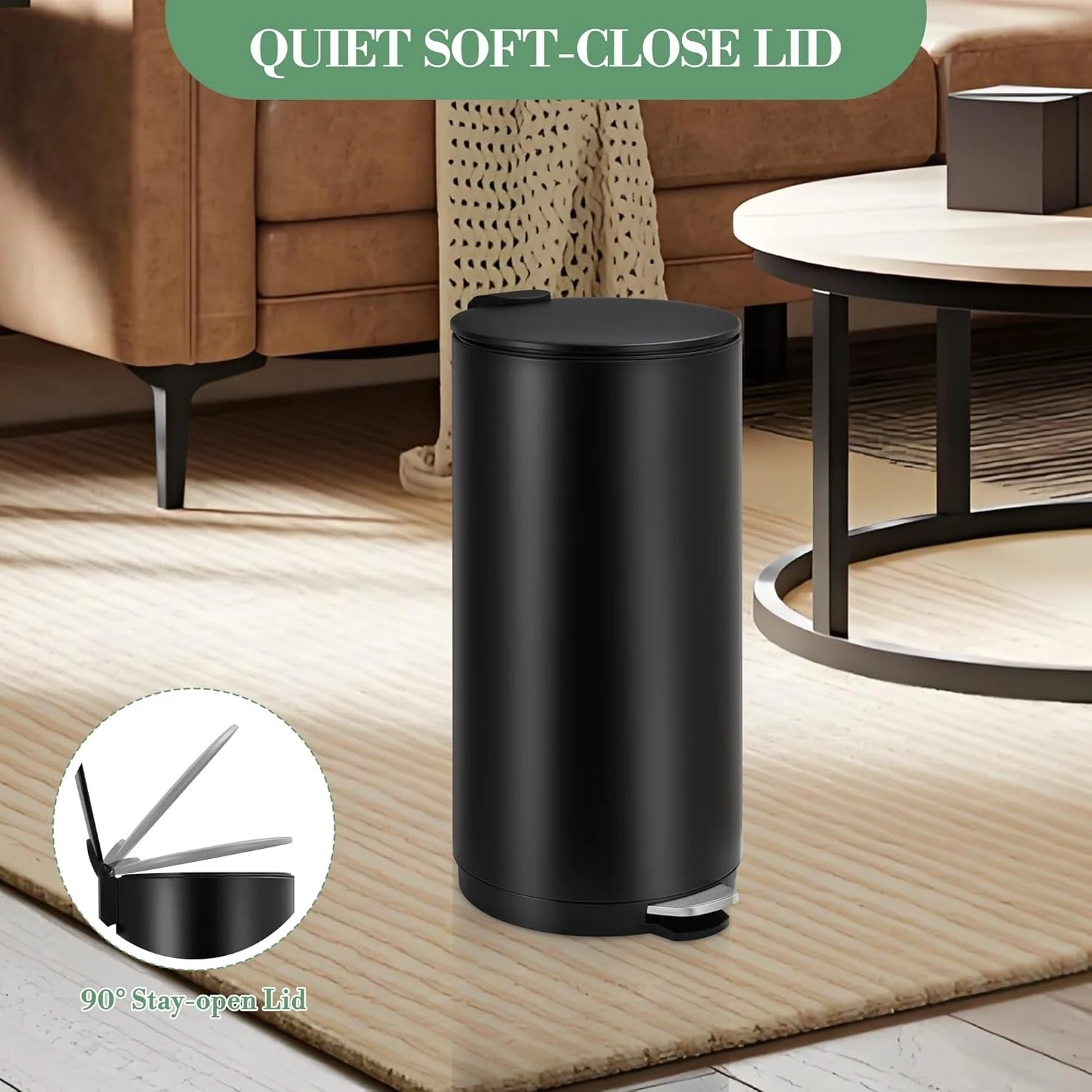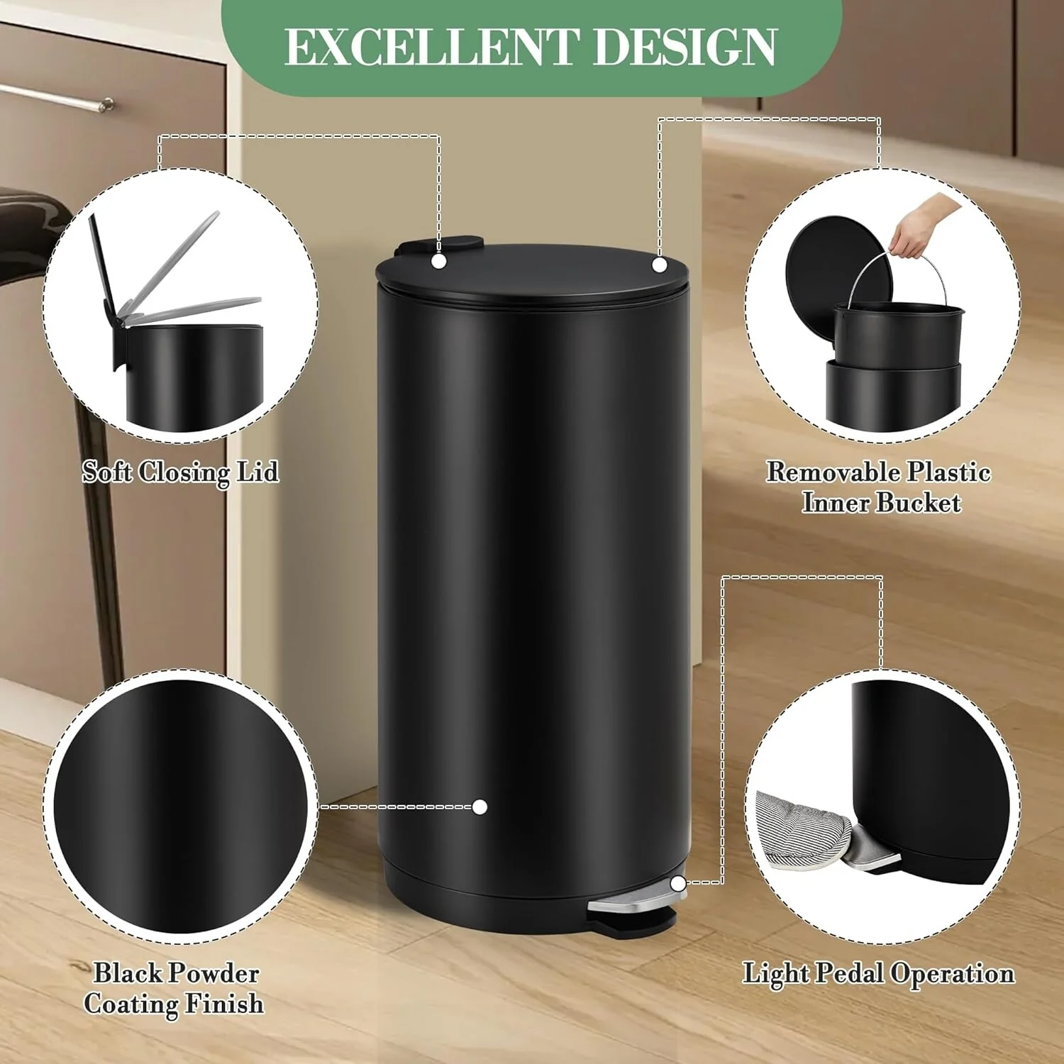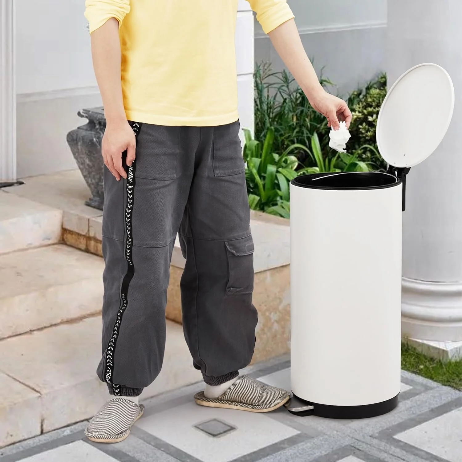 8 Gallon (30L) Step Trash Can, Round Bathroom Garbage Can with Lid and Foot Pedal