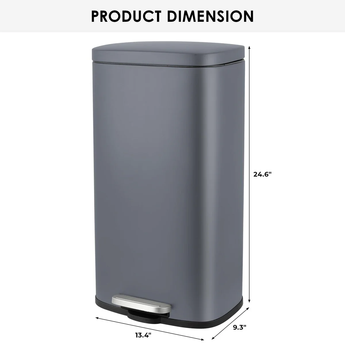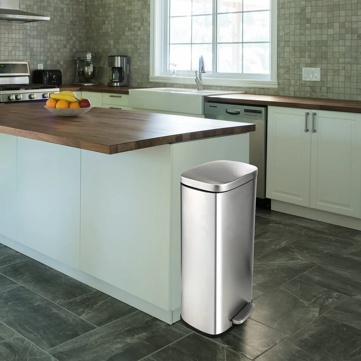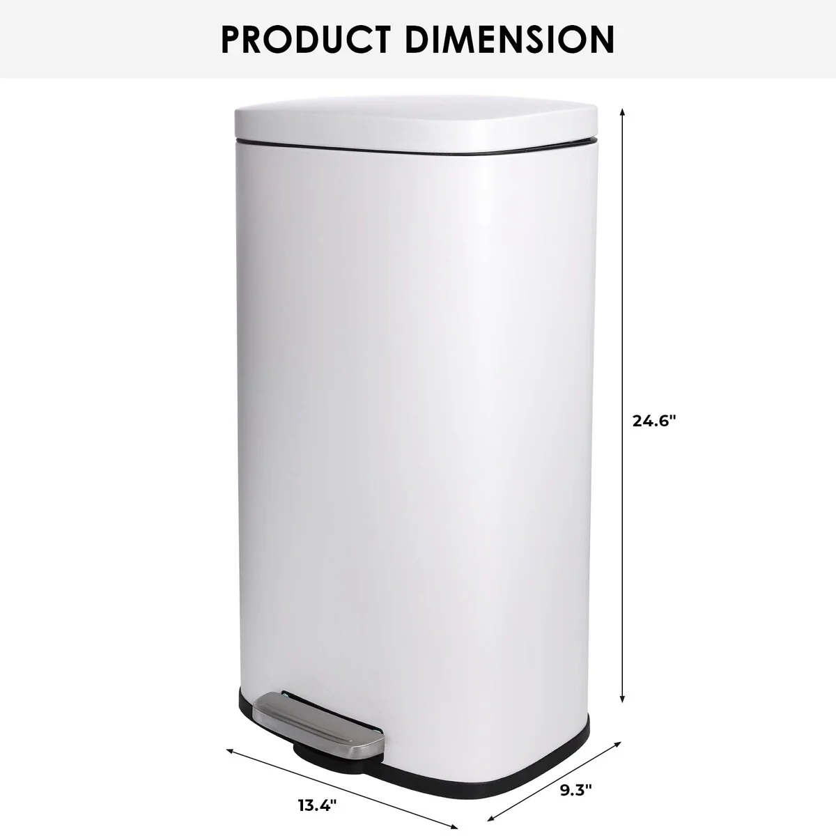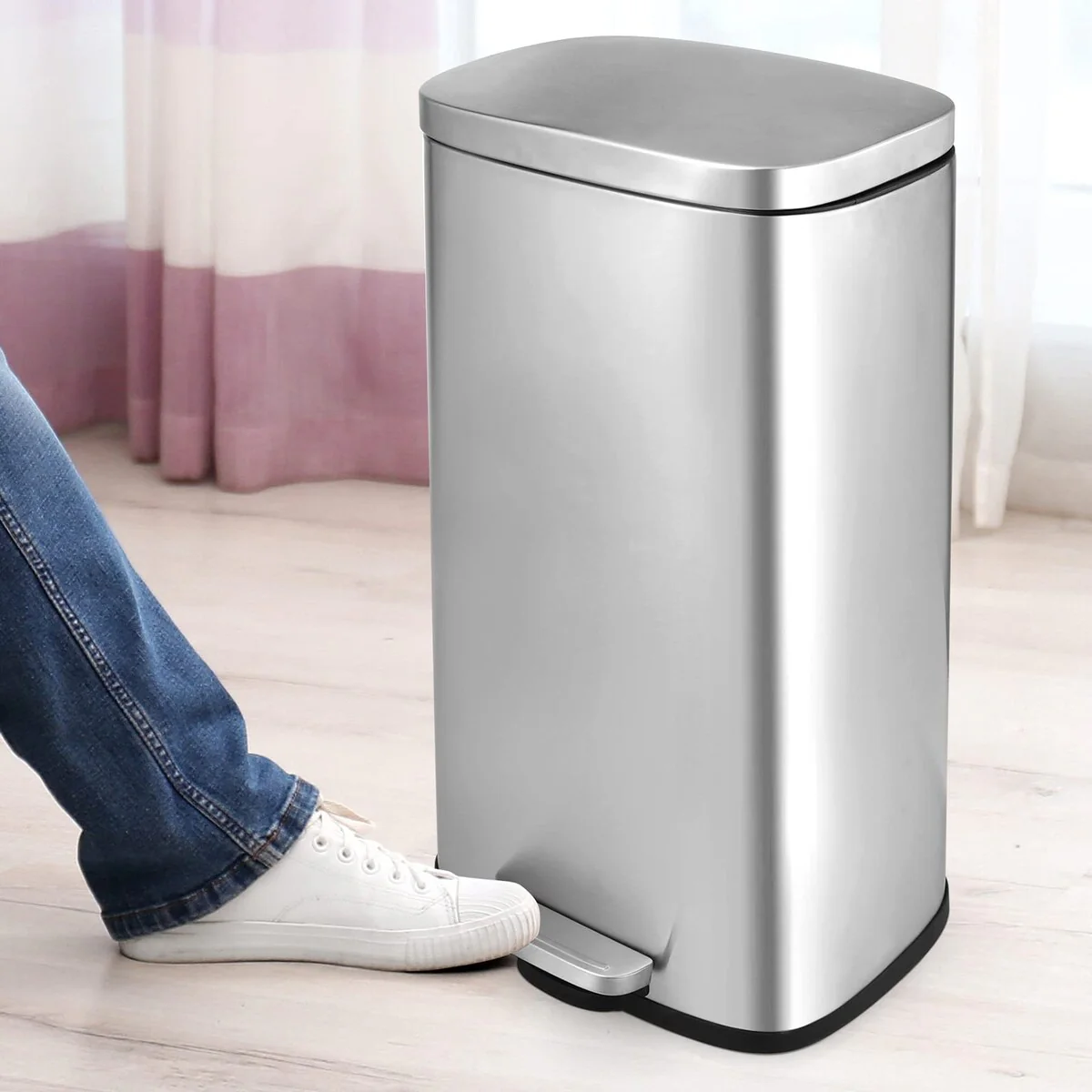 8 Gallon Step Trash Can, Stainless Steel Garbage Bin, Soft-Close Rubbish Bin with Removable Inner Bucket, Fingerprint-Proof 30L