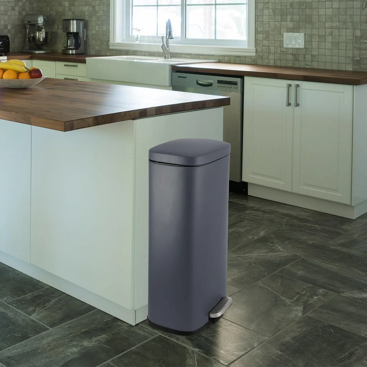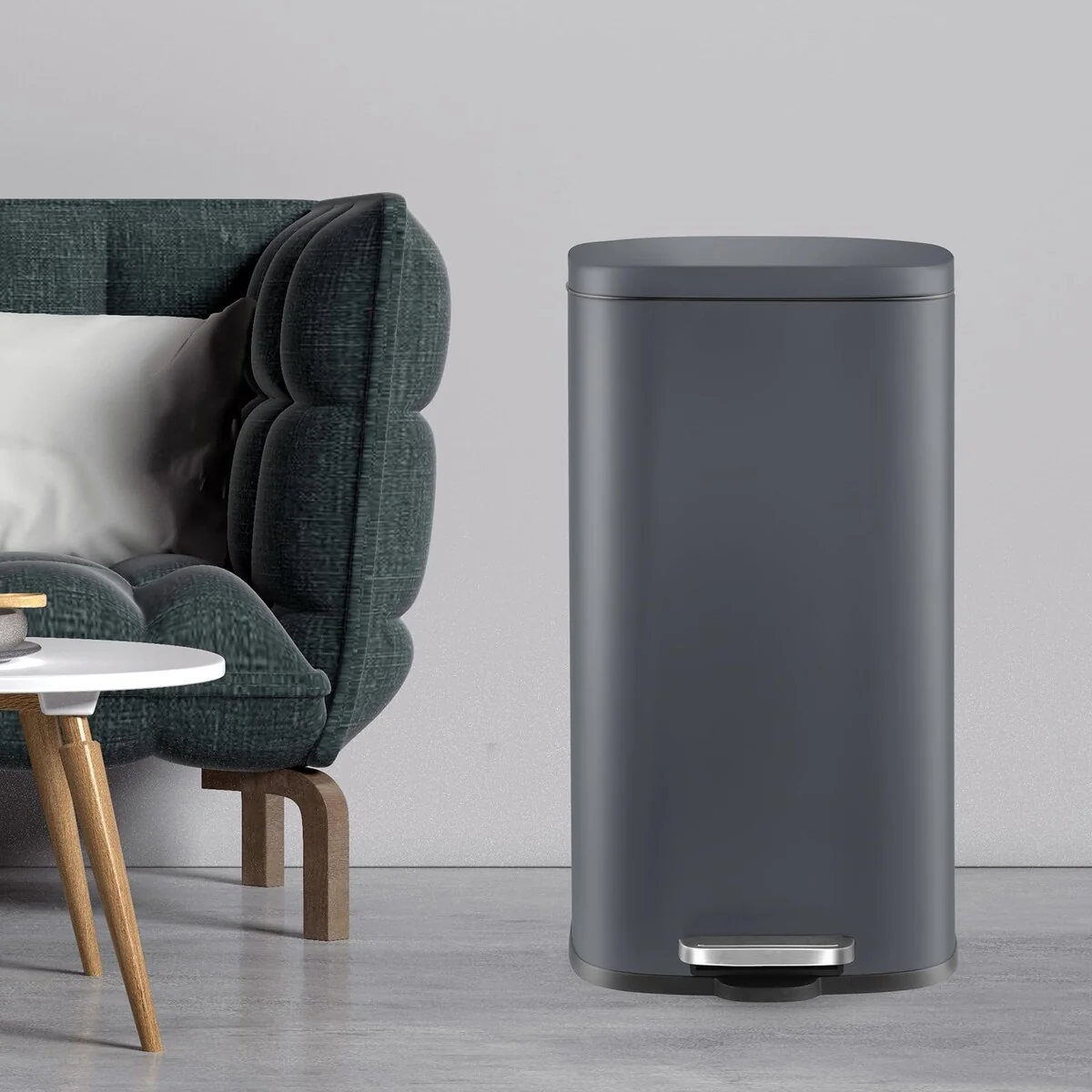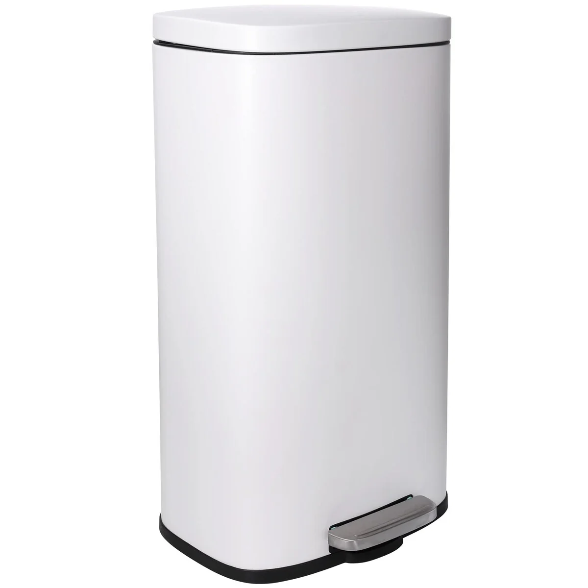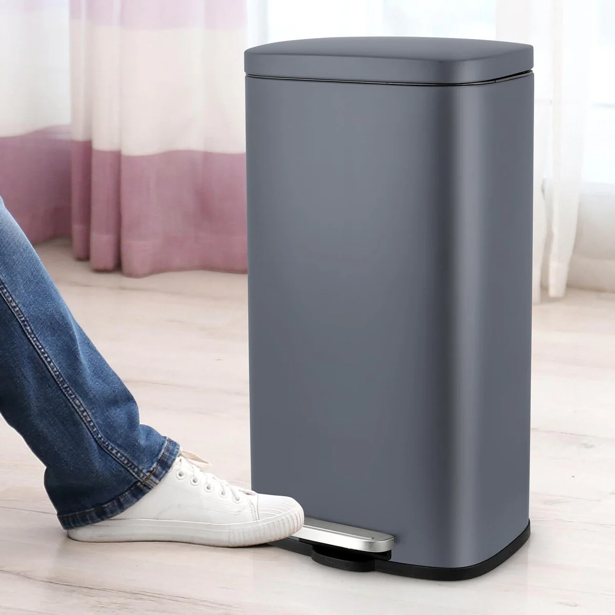 8 Gallon Step Trash Can, Stainless Steel Garbage Bin, Soft-Close Rubbish Bin with Removable Inner Bucket, Fingerprint-Proof 30L