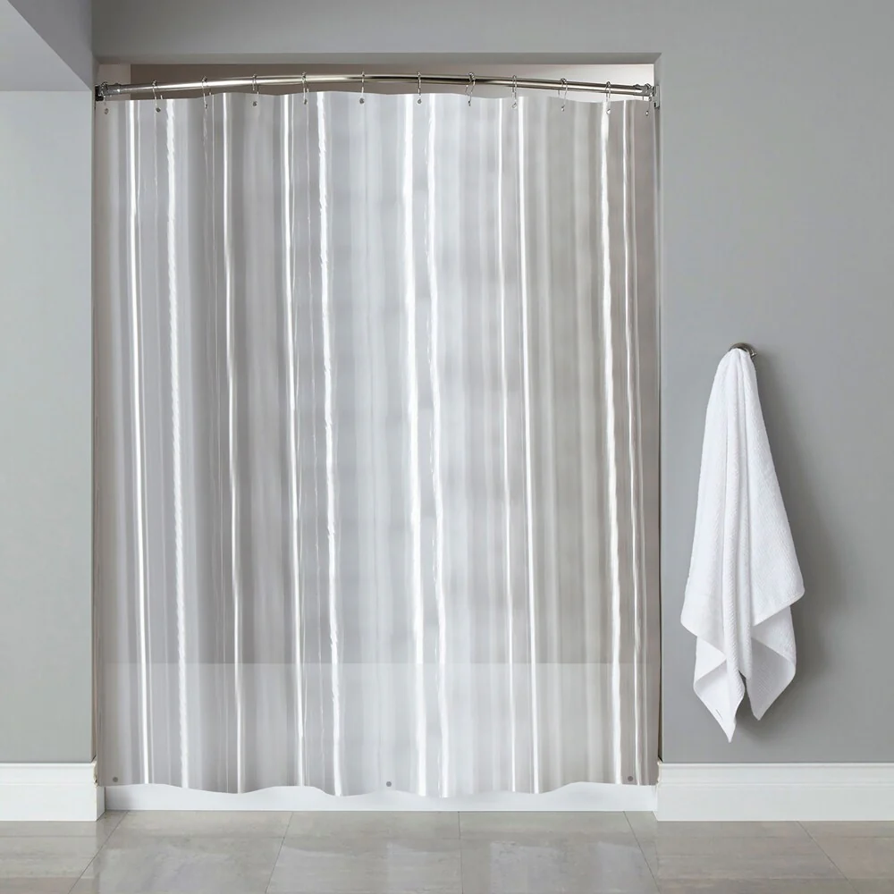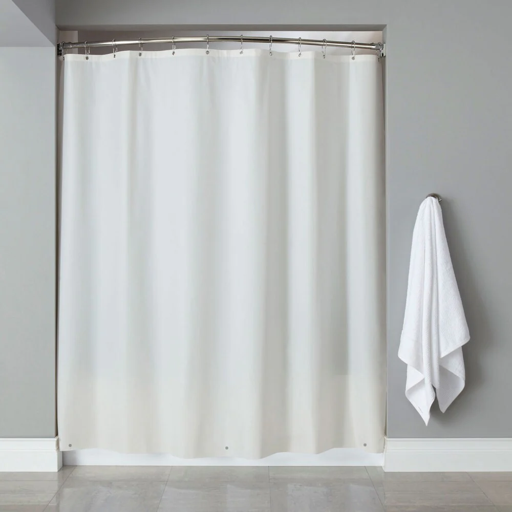 This heavyweigth shower curtain liner features reinforced metal grommets to prevent tearing, magnets to hold liner securely to the tub and is mildew resistant. Heavy 8 gauge construction provides durability.