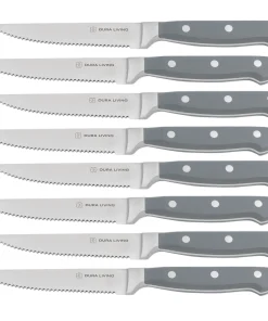 Upgrade your dining experience with the Dura Living 8-Piece Steak Knife Set. Expertly crafted for meat lovers, each knife features a razor-sharp, serrated blade made from high carbon stainless steel, ensuring effortless slicing through steaks, chops, and poultry. With ergonomic handles and a timeless design, this set is perfect for both everyday meals and special occasions, bringing professional quality to your table.