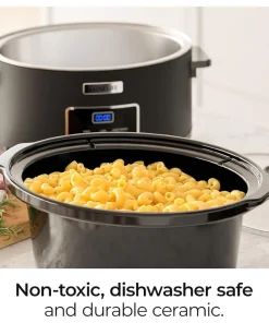 - DISHWASHER-SAFE POT INSERT & GLASS LID – Nobody wants to spend time cleaning up the mess after a long day. The ceramic pot insert and glass lid are dishwasher-safe for easy clean up!