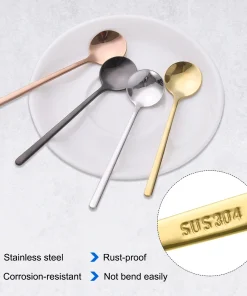 2. The long-handle spoons feature a round head design with a long handle, ample for stirring in tall glasses and cups, and smooth edges that ensure the safety of your lips to provide a fine dining experience.