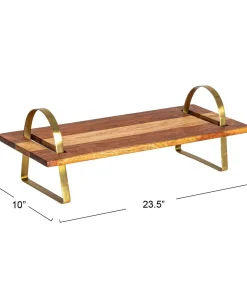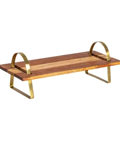 Introducing our Acacia Wood Serving Board with Gold Stand – a perfect blend of natural elegance and contemporary style. Crafted from durable acacia wood, this generously sized board is perfect for presenting cheeses, appetizers, and charcuterie. The sleek gold stand elevates your culinary creations, adding a touch of luxury to your table setting. Durable and easy to clean, this serving board is both functional and visually stunning. Upgrade your hosting experience with this sophisticated accessory – where natural beauty meets modern design.Â