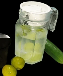 The integrated handle makes you easy to hold the bottle and pour drinks. The plastic pitcher is easy to clean, just rinse it with water and dry.