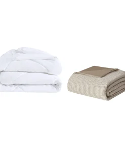 The Clean Spaces Adalyn 4 Piece Cotton and Rayon from Bamboo Blend Waffle Weave Comforter Cover Set with Removable Insert offers a cozy, casual update to your bedroom. This cotton and rayon from bamboo blend comforter cover features a waffle weave with button details, for a soft feel and textured look. A removable insert with hypoallergenic recycled polyester filling is included and secured by corner ties and a button closure to make washing easier. The 2 matching shams pair handsomely with the comforter to complete the modern bedding set. Oversized and overfilled for extra comfort, this comforter cover set is machine washable for easy care and provides a farmhouse-inspired touch to your bedroom decor. An antimicrobial treatment provides built-in freshness protection, reducing the growth of odor causing bacteria to keep fabric lasting longer. Items in the set may come in a rolled or compressed packaging, which will need to be fluffed up or steam ironed before use to remove wrinkles.