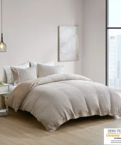 The Clean Spaces Adalyn 3 Piece Cotton and Rayon from Bamboo Blend Waffle Weave Duvet Cover Set offers a cozy, casual update to your bedroom. This cotton and rayon from bamboo blend duvet cover features a waffle weave with button details, for a soft feel and textured look. The 2 matching shams pair handsomely with the blue duvet cover to complete the modern bedding set. Oversized for extra comfort, this duvet cover set is machine washable for easy care and provides a farmhouse-inspired touch to your bedroom decor. An antimicrobial treatment provides built-in freshness protection, reducing the growth of odor causing bacteria to keep fabric lasting longer. A button closure at the foot end allows you to place a padded insert within the duvet cover and internal corner ties prevent it from shifting (Insert is NOT included).