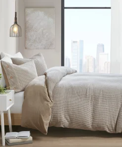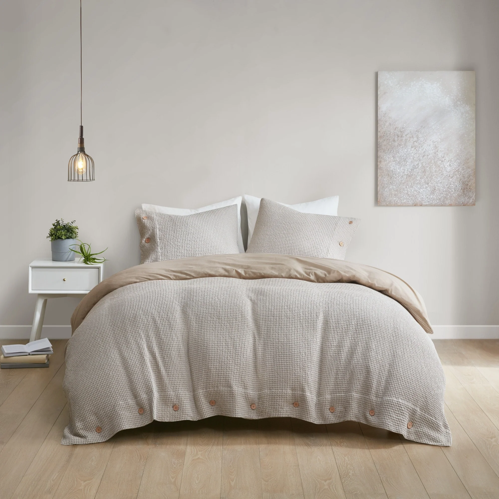 - Soft cotton and rayon from bamboo blend waffle weave duvet cover set with button details