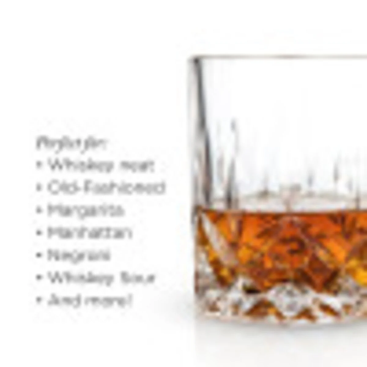- PERFECT FOR LOWBALL COCKTAILS AND BOURBON – Large enough to serve as double old fashioned glasses but suitable for neat pours or whiskey on the rocks, this set of crystal cocktail drinkware will be your go-to glasses for daily sipping.