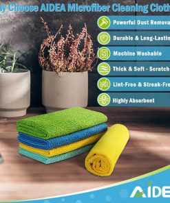 AIDEA Microfiber Cleaning Cloths-8PK, All-Purpose Cleaning Towels, Soft Absorbent Cleaning Rags Kitchen Towels, Lint-Free Dusting Cloth for House, Kitchen, Car, Window-(12in.x 12in.)