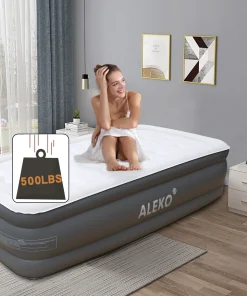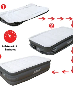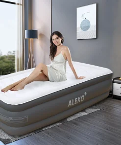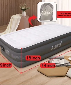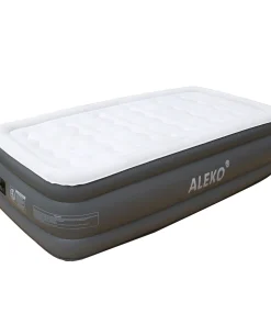 ALEKO All Purpose Twin Air Mattress is perfect for guests, moving homes, or taking on a camping trip. A soft waterproof flocked-top layer, paired with Oval-Beam construction, provides head to toe support for a relaxing and comfortable night’s sleep. Designed for proper spinal alignment, a heavy duty PVC material maintains stability, preventing any dips and bulges that might occur from tossing sides. Engineered from puncture-resistant material protects against accidental scrapes and scratches. Maximize your level of comfort by simply adding or removing air to your personal preference. At the flick of a switch, the airbed deflates quickly for easy storage and transportation. Its compact size makes it easy to store in a closet or take in the trunk of a car.