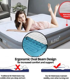 ALEKO All Purpose Twin Air Mattress is perfect for guests, moving homes, or taking on a camping trip. A soft waterproof flocked-top layer, paired with Oval-Beam construction, provides head to toe support for a relaxing and comfortable night’s sleep. Designed for proper spinal alignment, a heavy duty PVC material maintains stability, preventing any dips and bulges that might occur from tossing sides. Engineered from puncture-resistant material protects against accidental scrapes and scratches. Maximize your level of comfort by simply adding or removing air to your personal preference. At the flick of a switch, the airbed deflates quickly for easy storage and transportation. Its compact size makes it easy to store in a closet or take in the trunk of a car.