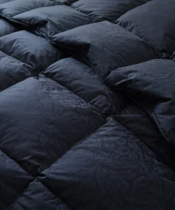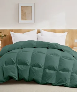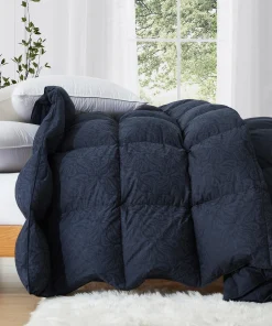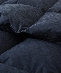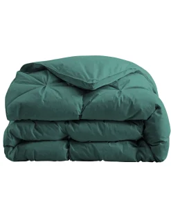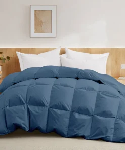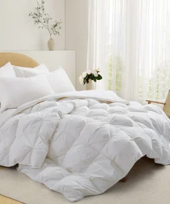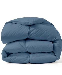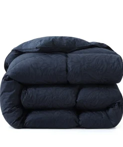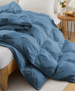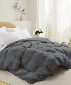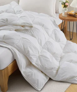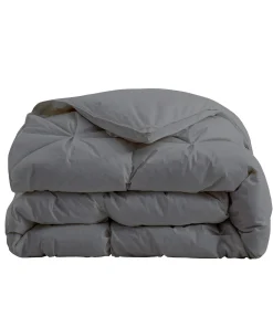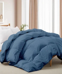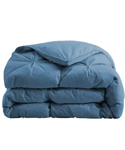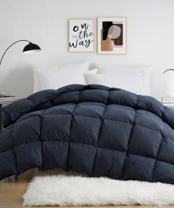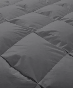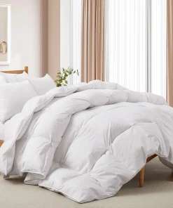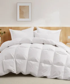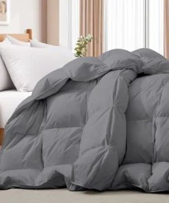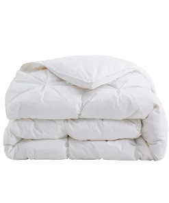 This all season comforter is ideal for year-round use. Featuring a 100% cotton cover, the comforter is soft and breathable. The special design of baffle box construction keeps the filling in place evenly and ensures a stable sleep. The comforter fill material is a perfect combination of 10% white goose down and 90% white goose feather, offering a luxurious warmth and softness, giving you a sweet night sleep. Four corner loops adds convenience to attach with a duvet cover and secures the comforter during the night sleep. Â