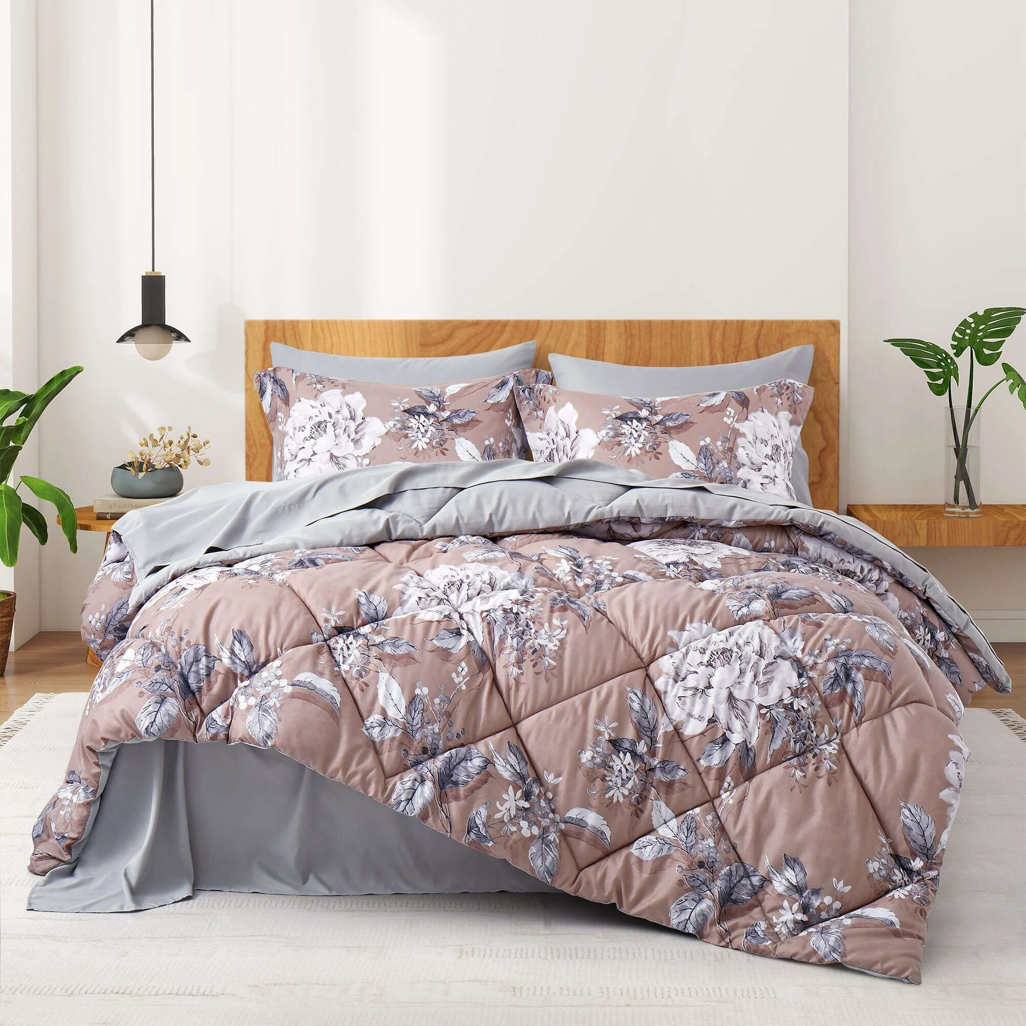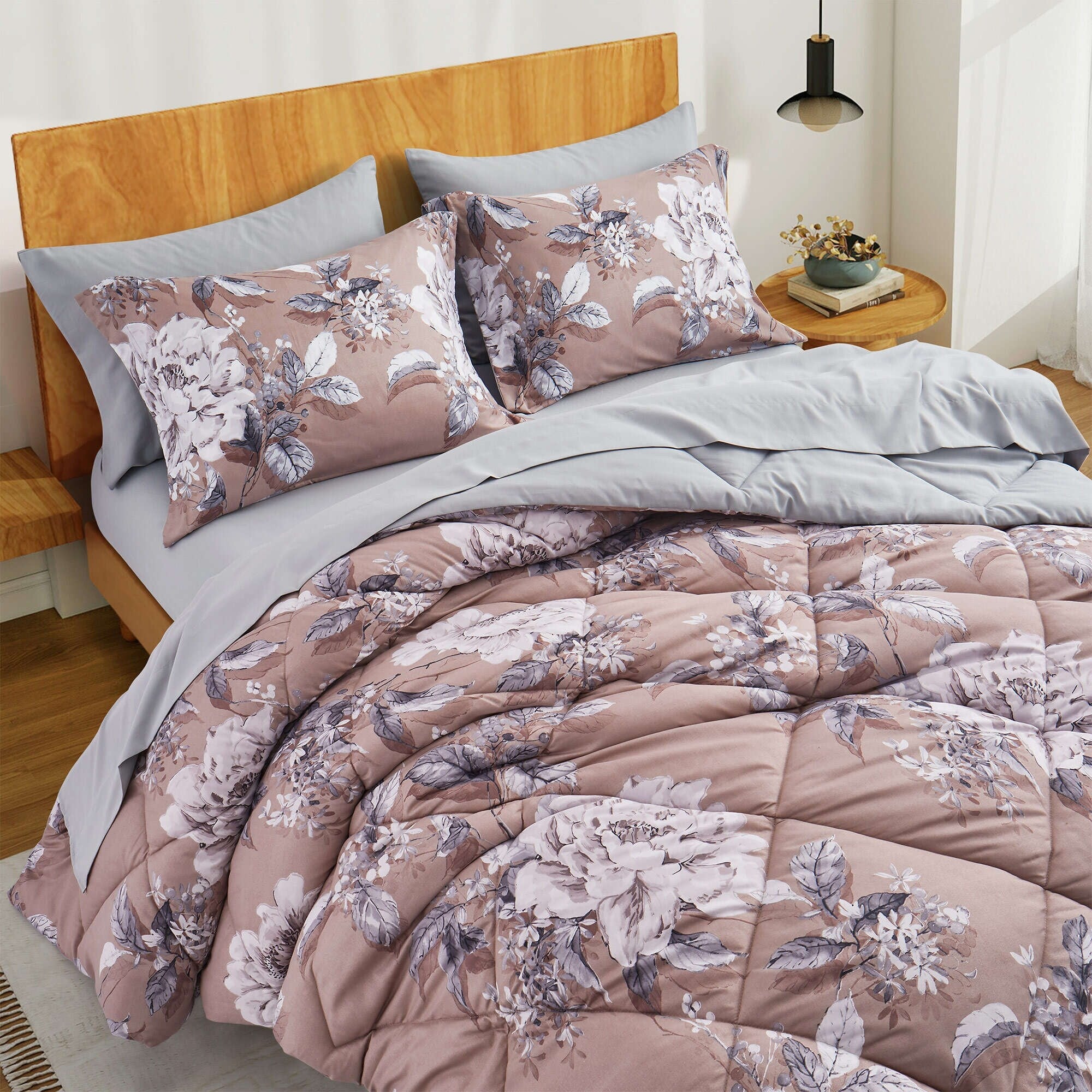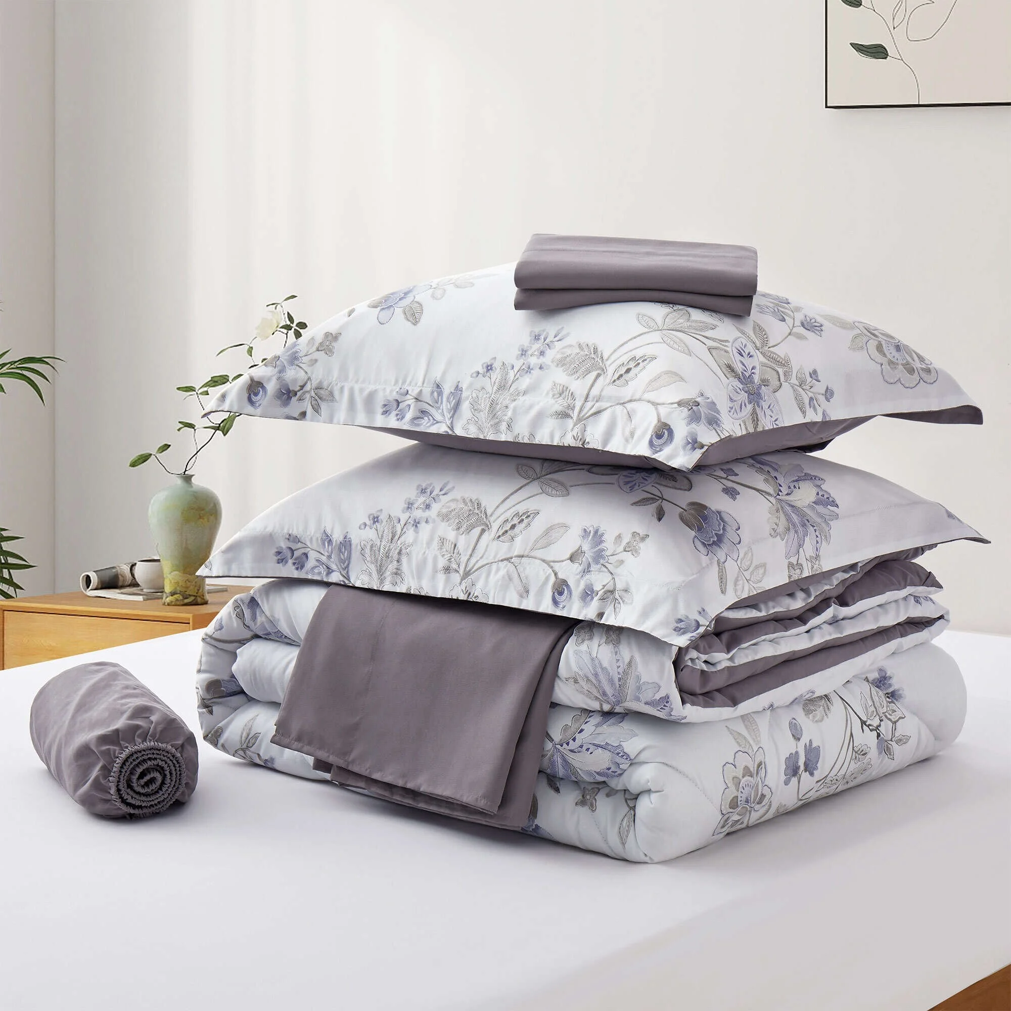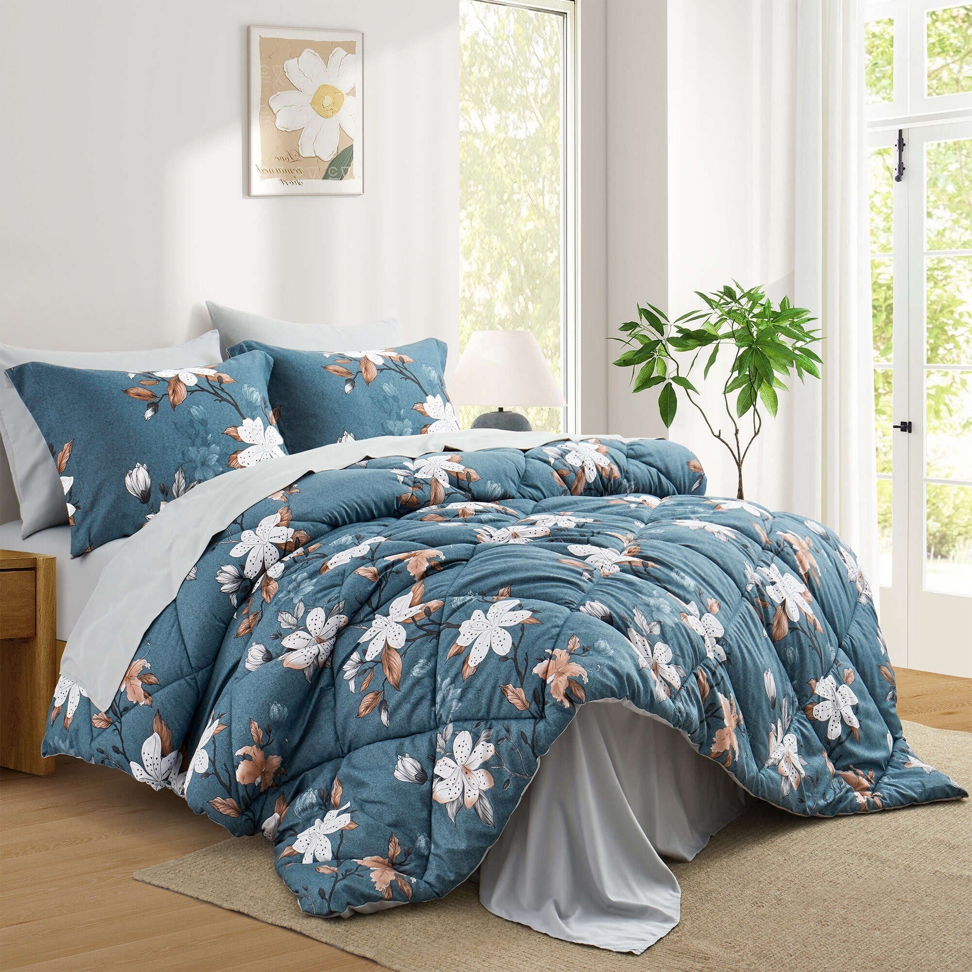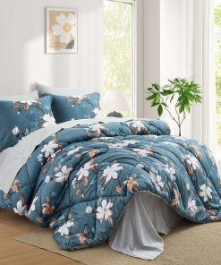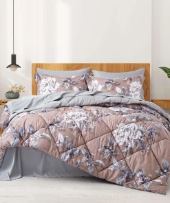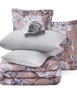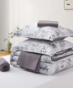 Transform your bedroom into a stylish retreat with this Bed-in-a-Bag set. The unique floral design adds a pop of color and sophistication to your space, while the ultra-soft microfiber fabric ensures a cozy and peaceful night’s sleep. The high-grade microfiber filling delivers superior comfort and warmth, while its durable construction resists fading, shrinking, and seam slippage after washing. This all-in-one set includes everything you need to create a beautiful, comfortable bed, including a comforter, pillowcases, shams, fitted sheet, and flat sheet. Perfect for any bedroom refresh!