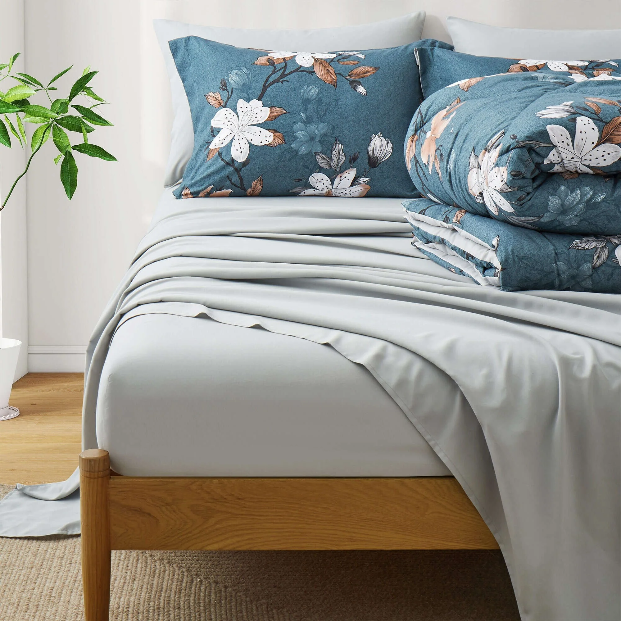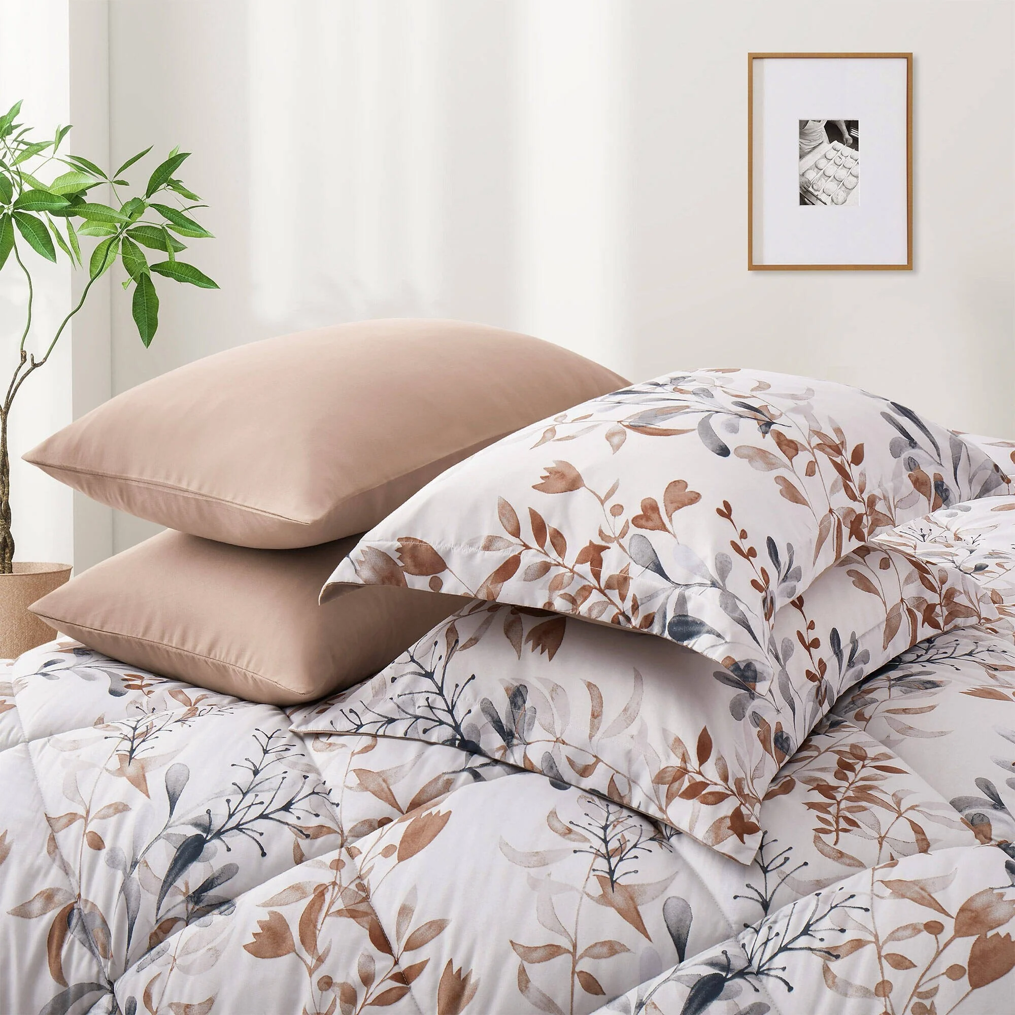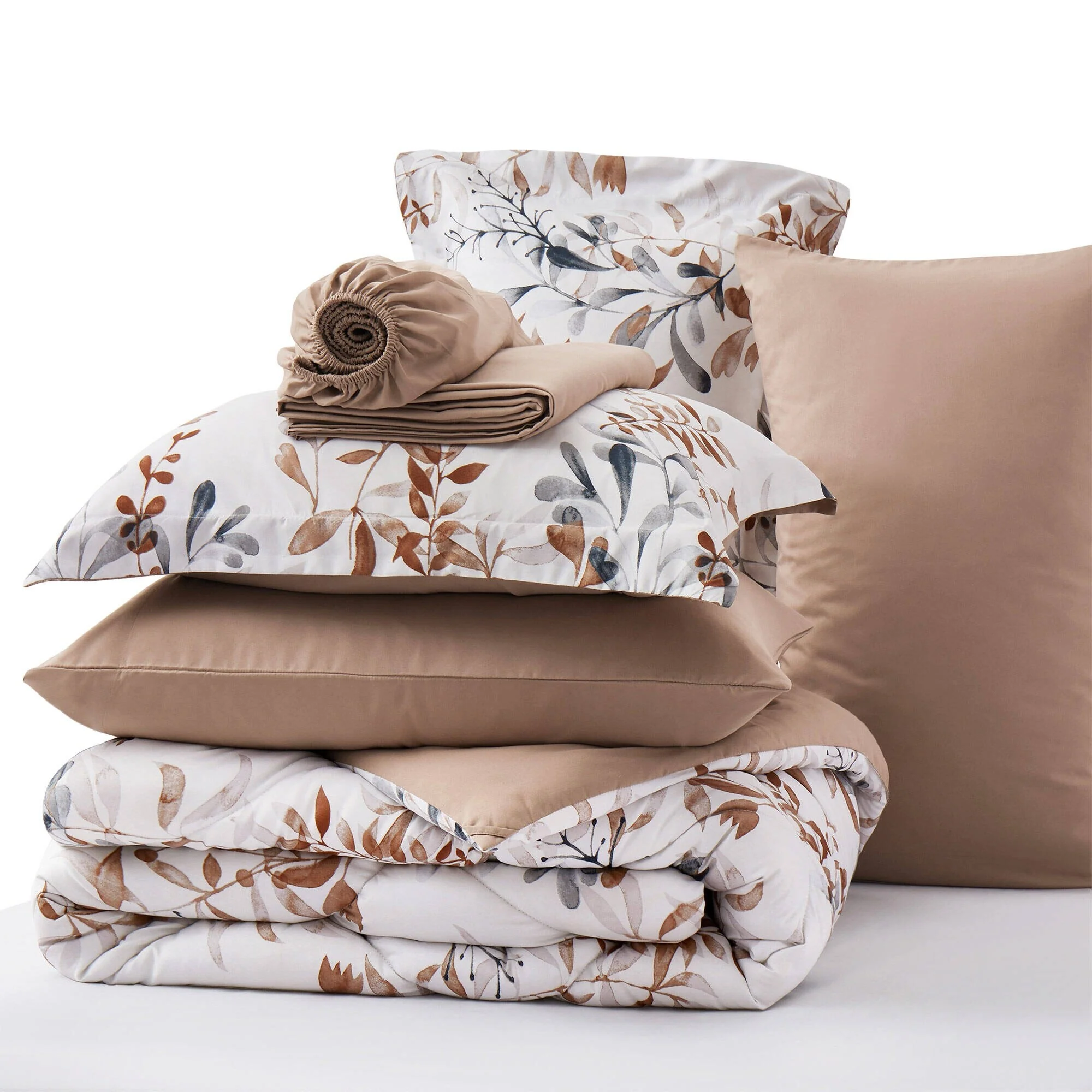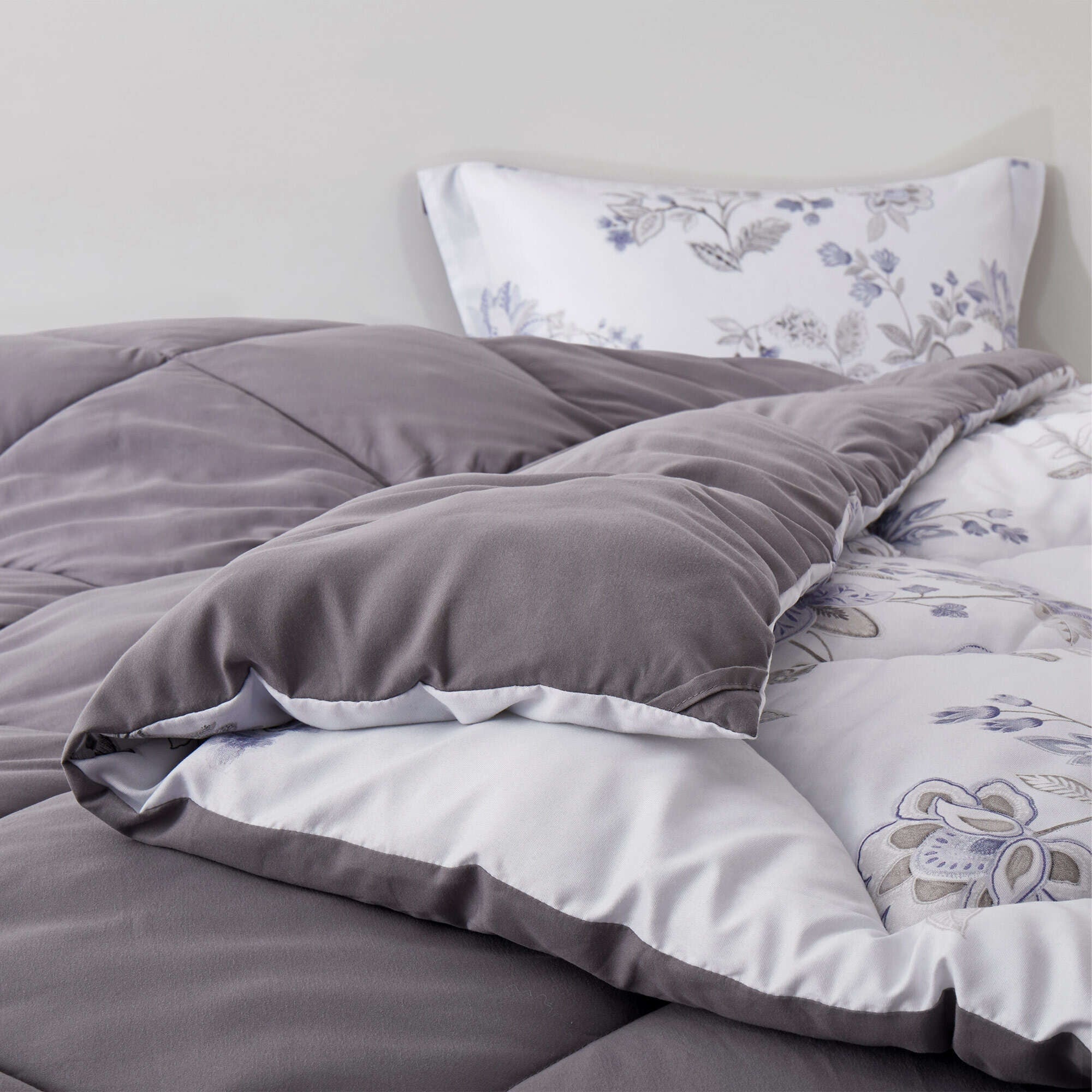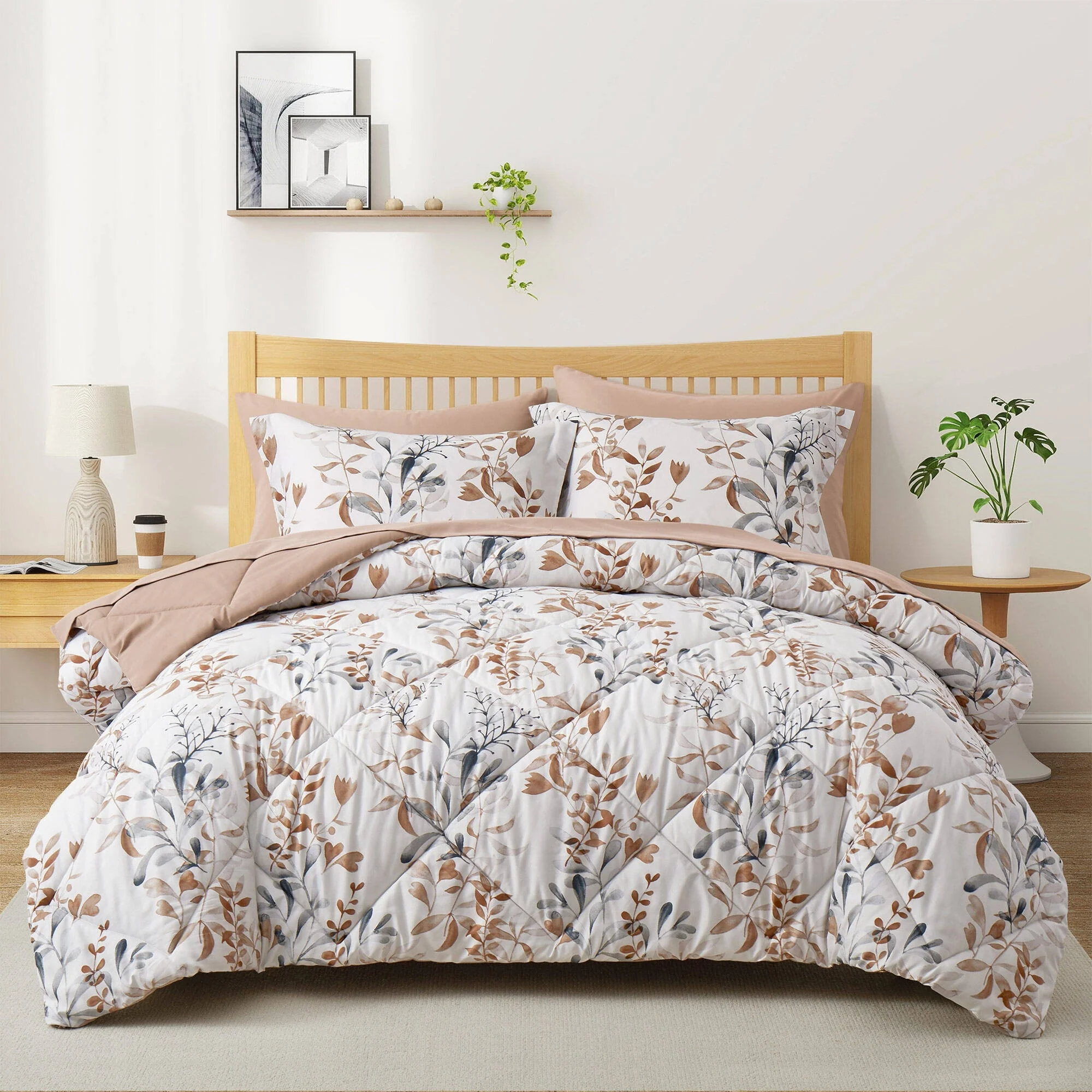 Transform your bedroom into a stylish retreat with this Bed-in-a-Bag set. The unique floral design adds a pop of color and sophistication to your space, while the ultra-soft microfiber fabric ensures a cozy and peaceful night’s sleep. The high-grade microfiber filling delivers superior comfort and warmth, while its durable construction resists fading, shrinking, and seam slippage after washing. This all-in-one set includes everything you need to create a beautiful, comfortable bed, including a comforter, pillowcases, shams, fitted sheet, and flat sheet. Perfect for any bedroom refresh!