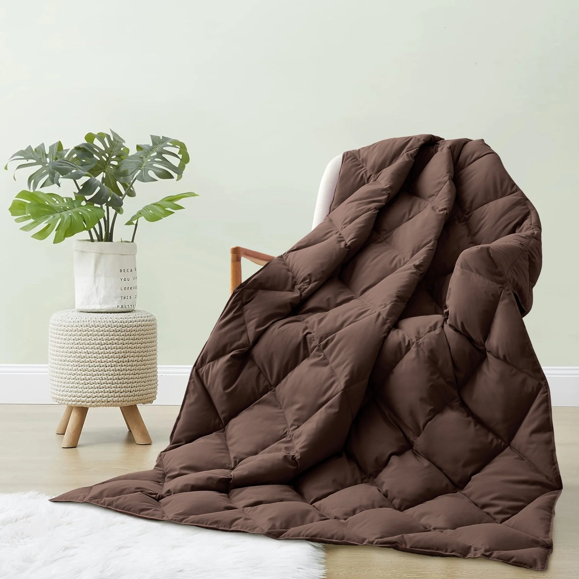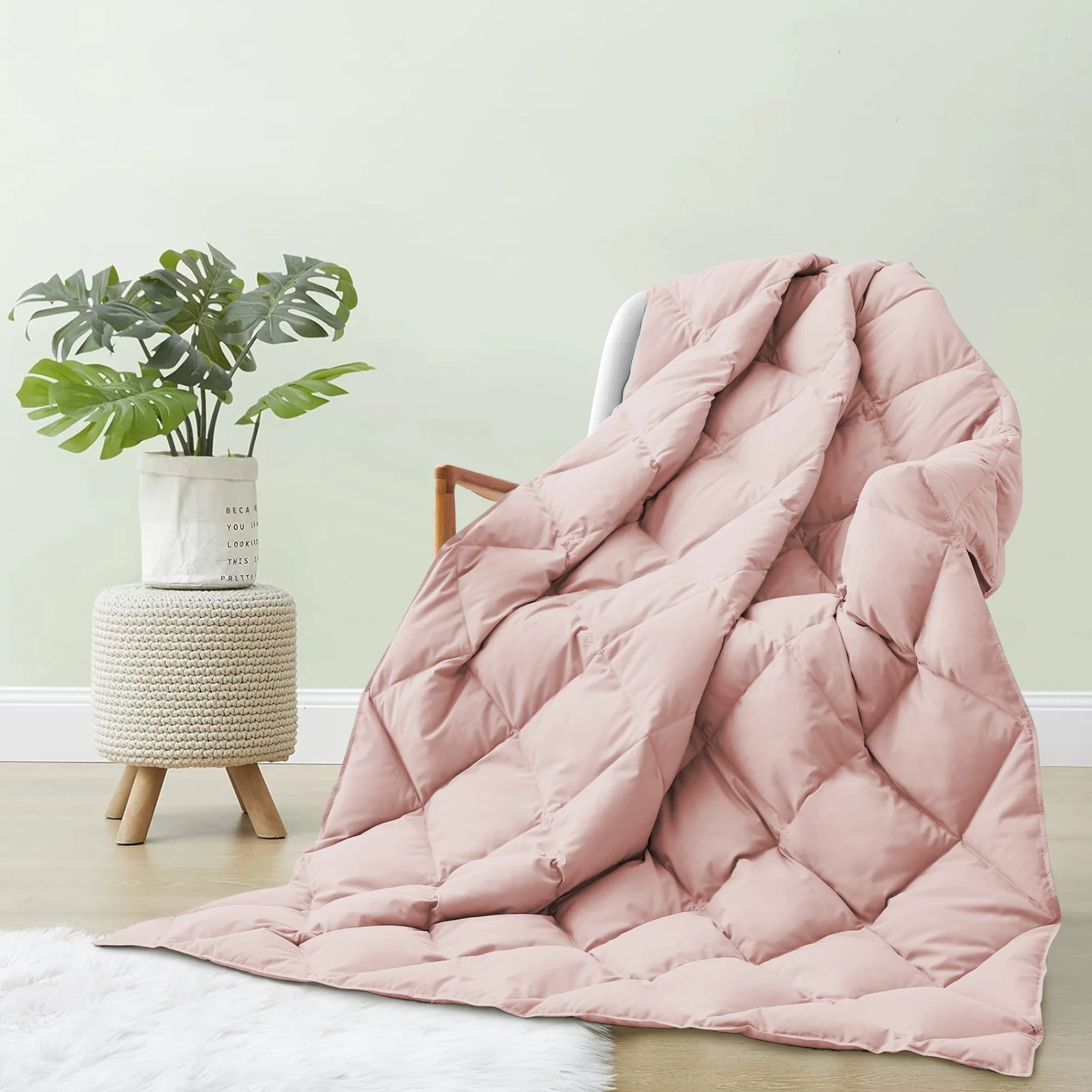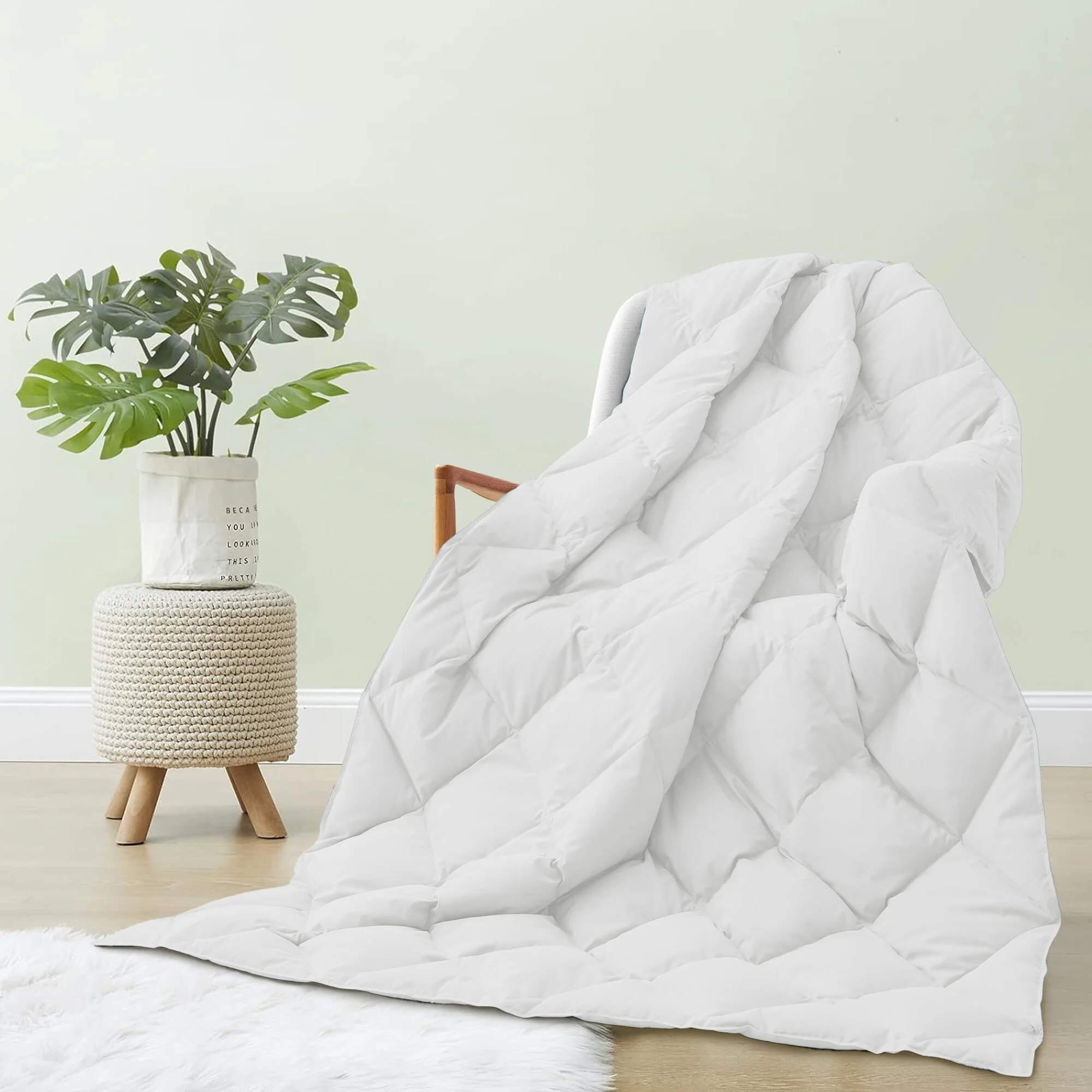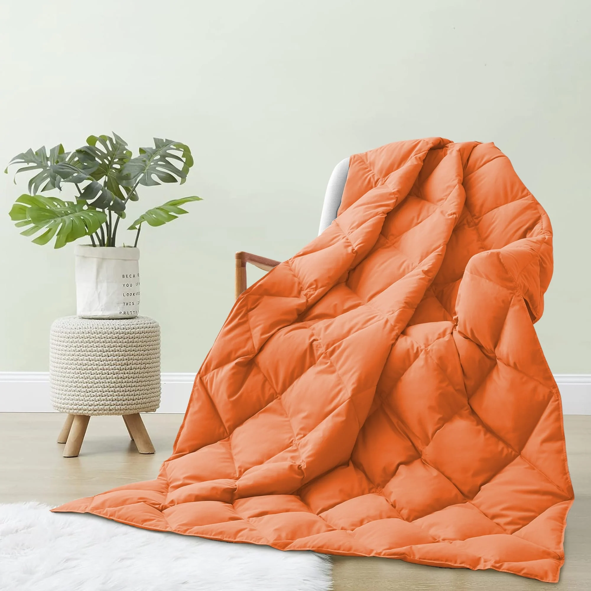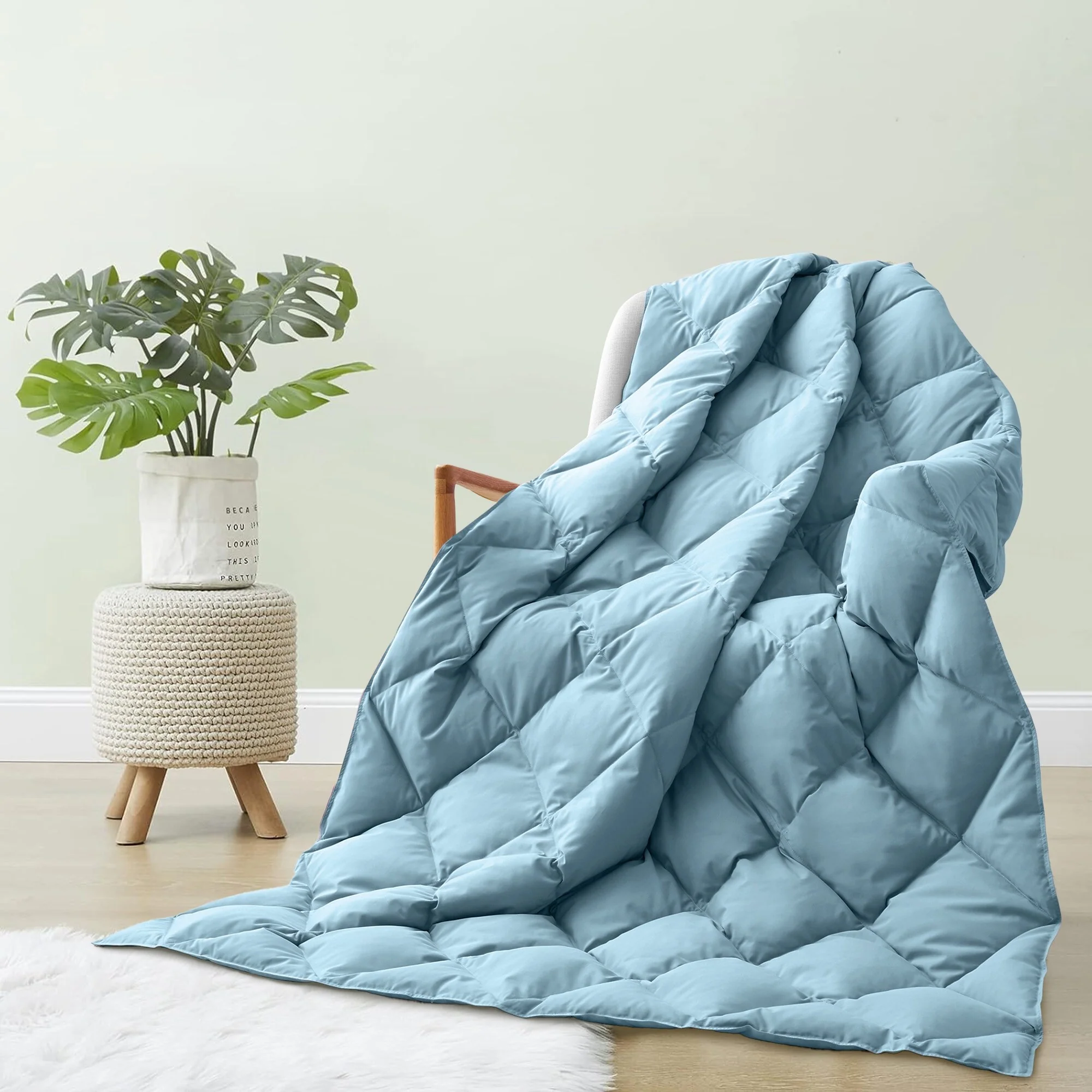 Our premium down bed throw blanket is crafted with a perfect blend of 30% down fiber and 70% feather fiber, providing an unparalleled level of softness and comfort. The unique diamond-quilted design not only enhances its aesthetic appeal but also effectively prevents the filling from shifting, ensuring long-lasting durability. Its lightweight material makes it an ideal choice for year-round use, whether you’re reading on the sofa, enjoying a cool evening outdoors, or taking it along for camping and travel. Available in three sizes to suit various needs. Machine washable for easy care, offering a seamless blend of warmth and comfort.