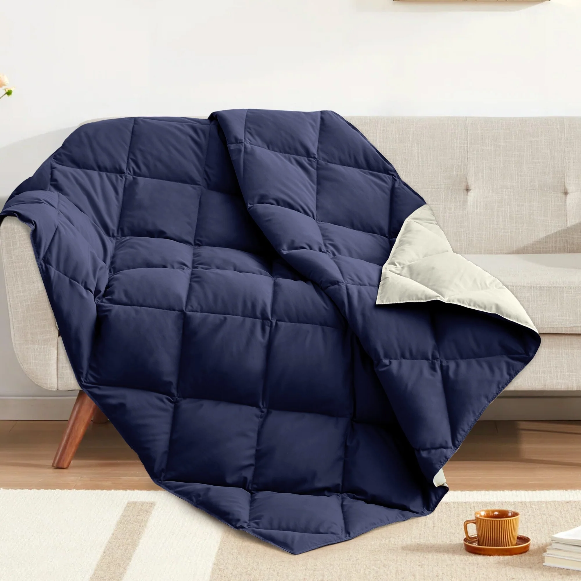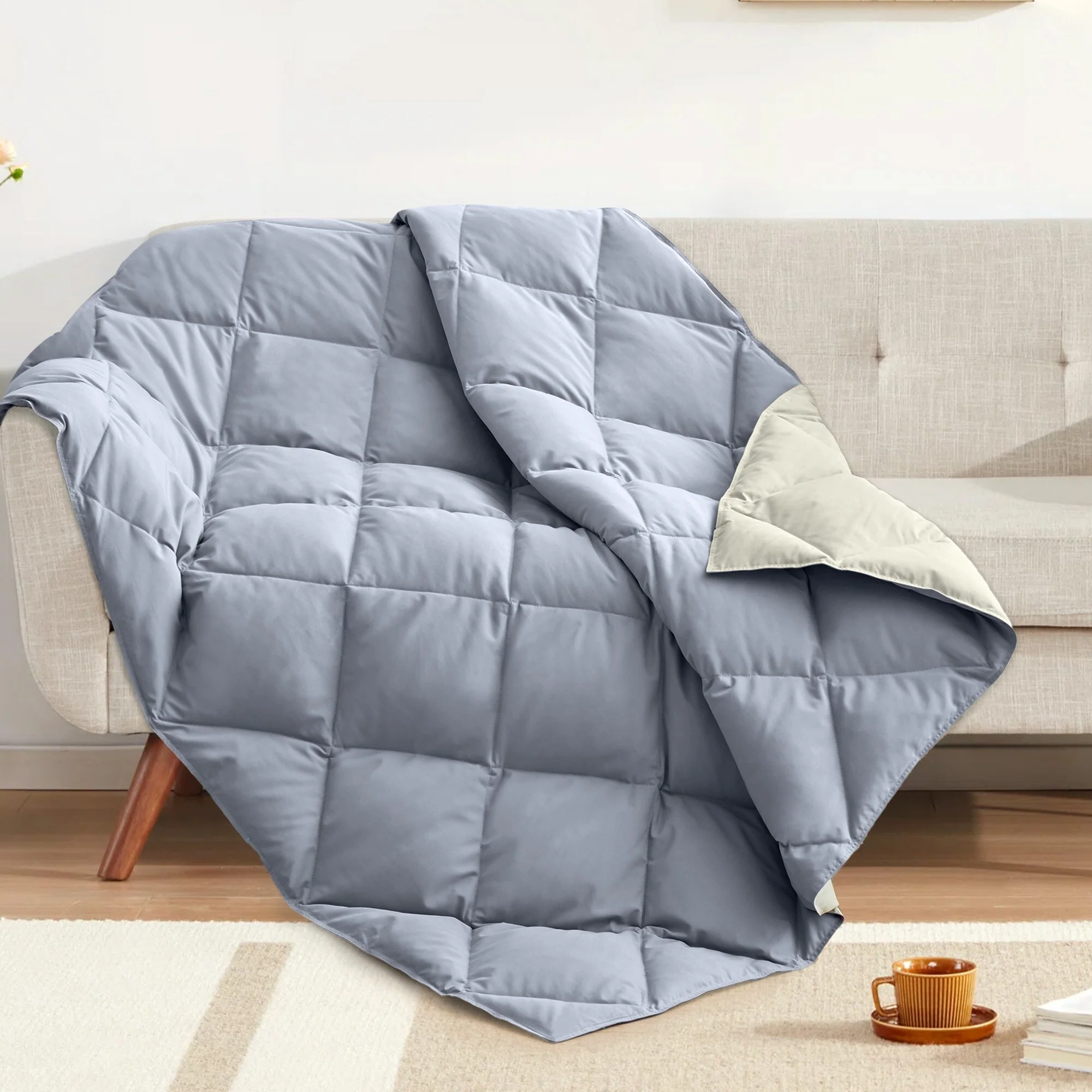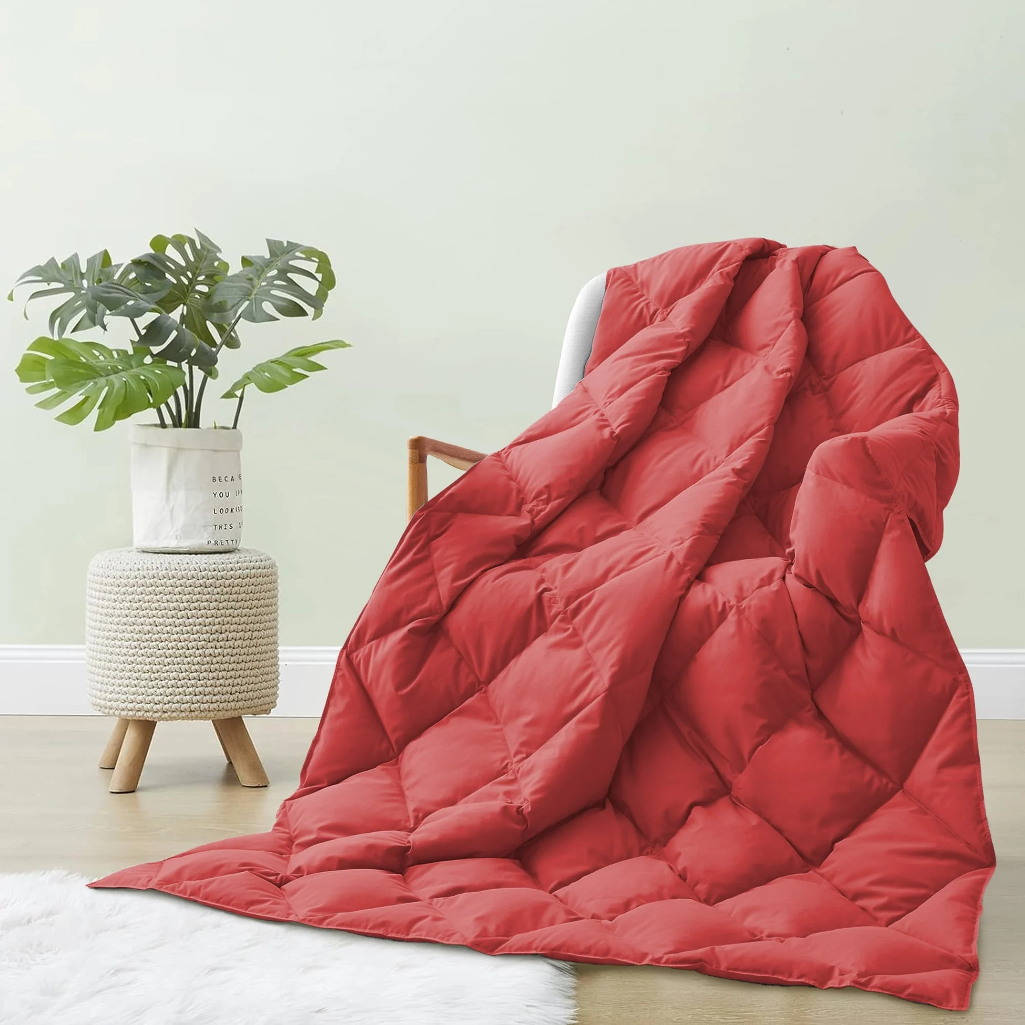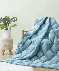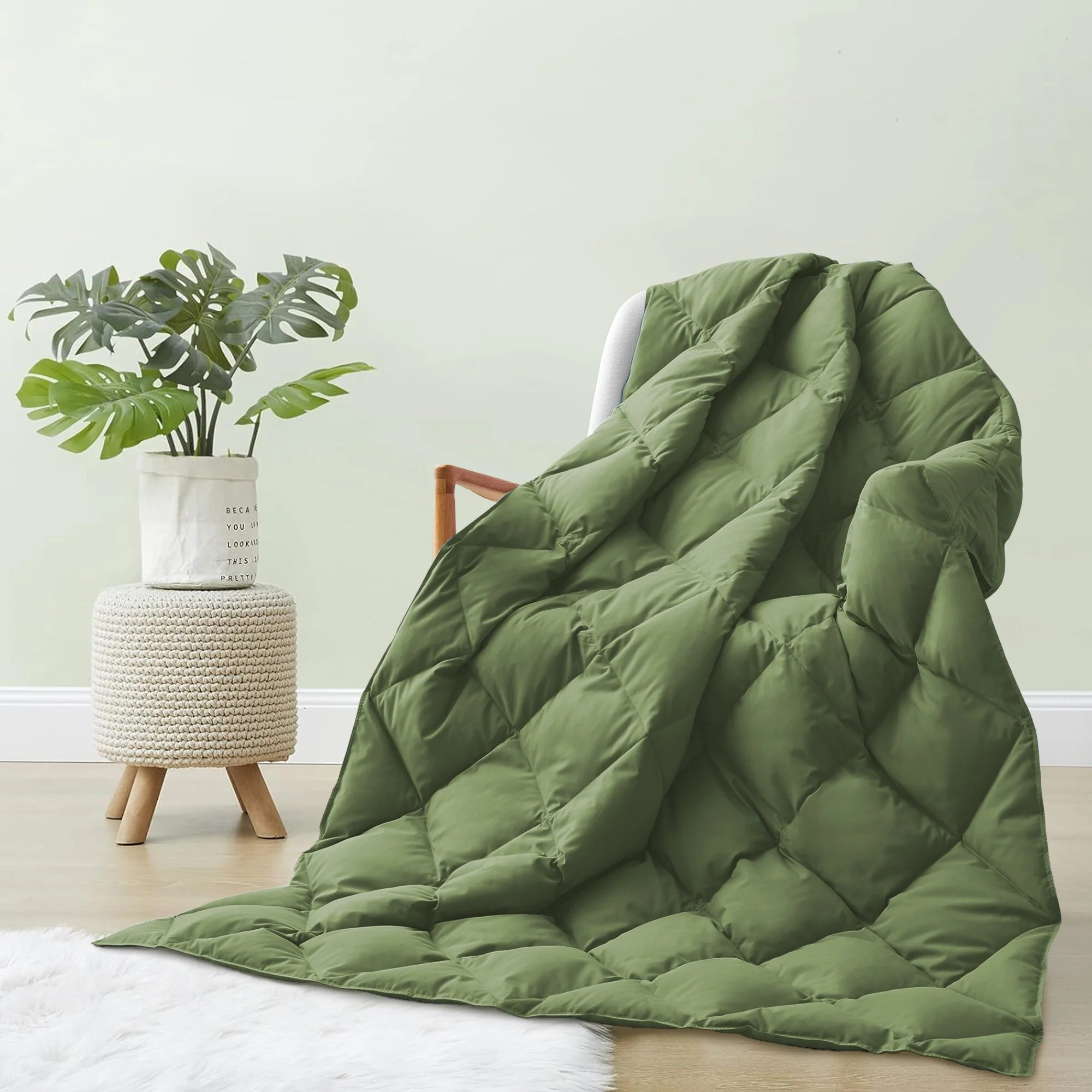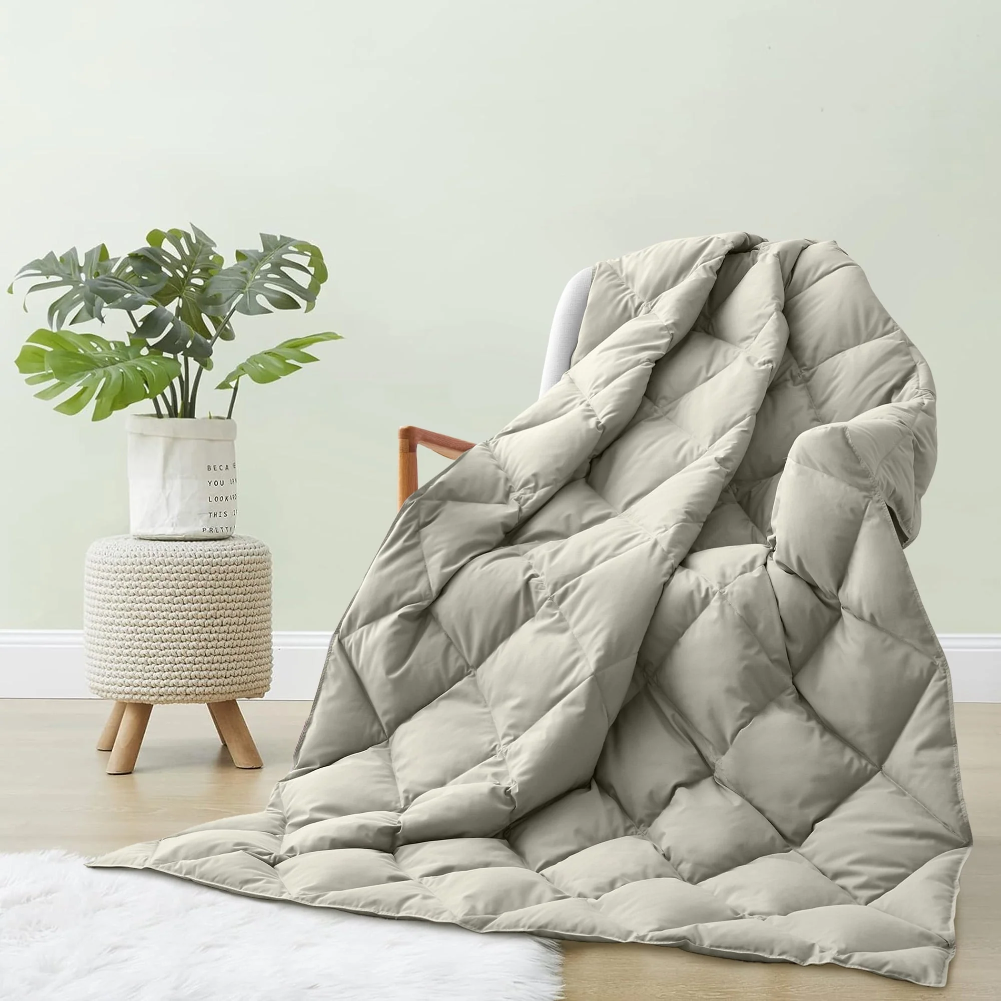 Our premium down bed throw blanket is crafted with a perfect blend of 30% down fiber and 70% feather fiber, providing an unparalleled level of softness and comfort. The unique diamond-quilted design not only enhances its aesthetic appeal but also effectively prevents the filling from shifting, ensuring long-lasting durability. Its lightweight material makes it an ideal choice for year-round use, whether you’re reading on the sofa, enjoying a cool evening outdoors, or taking it along for camping and travel. Available in three sizes to suit various needs. Machine washable for easy care, offering a seamless blend of warmth and comfort.