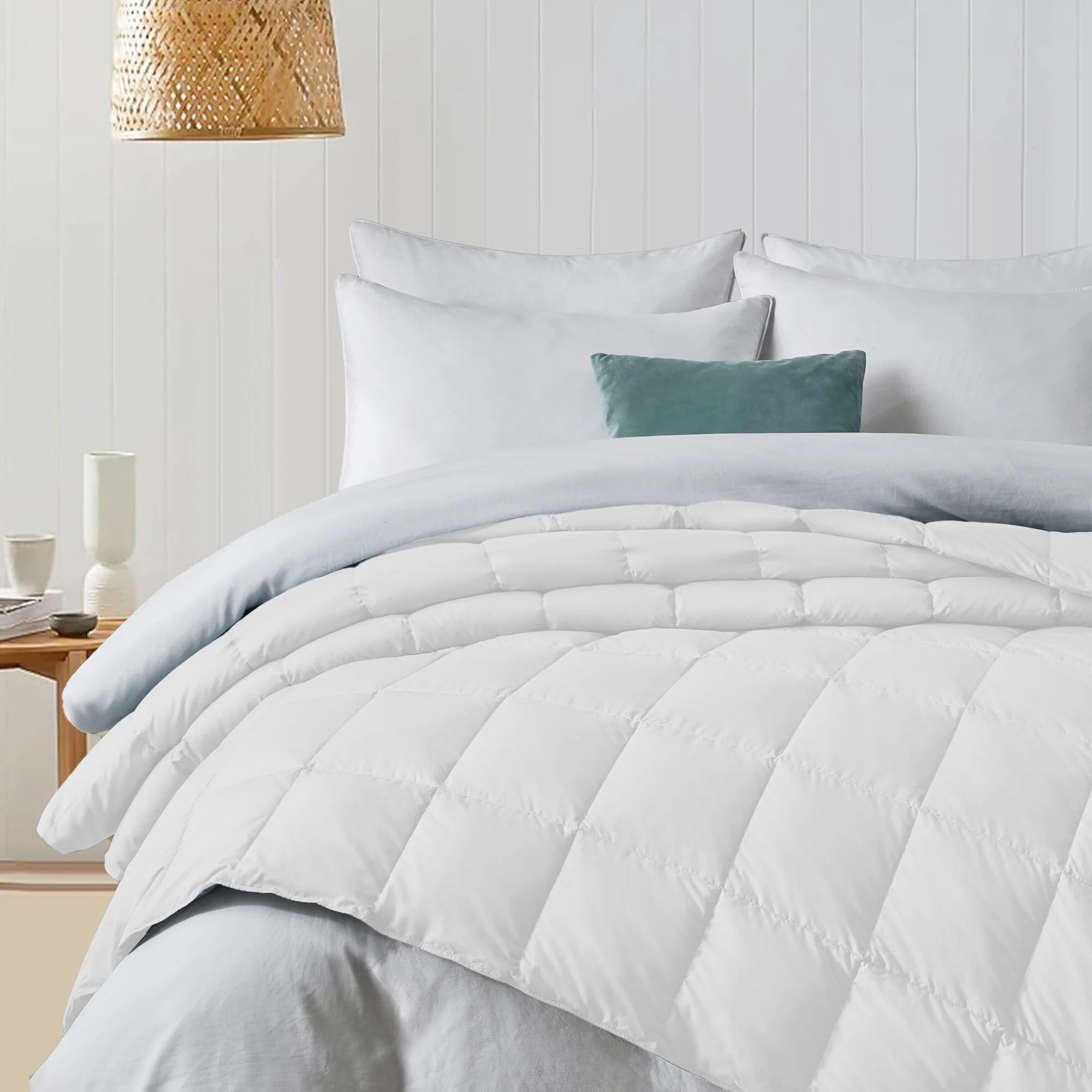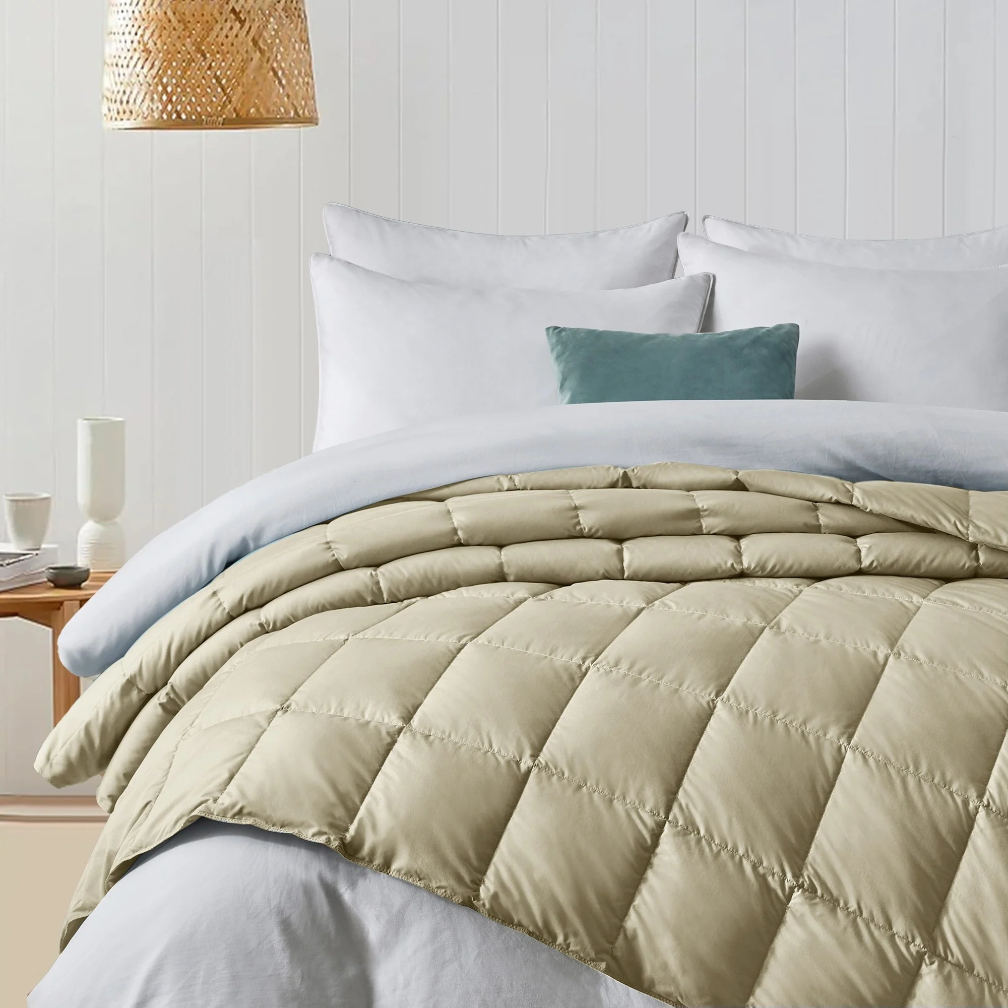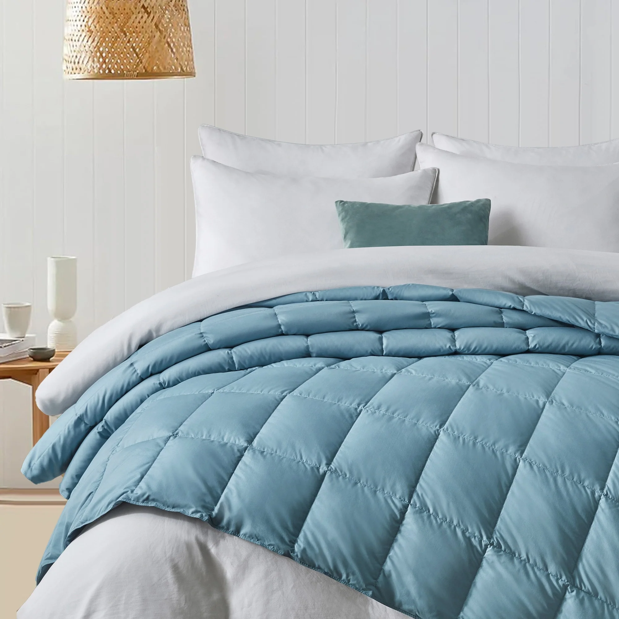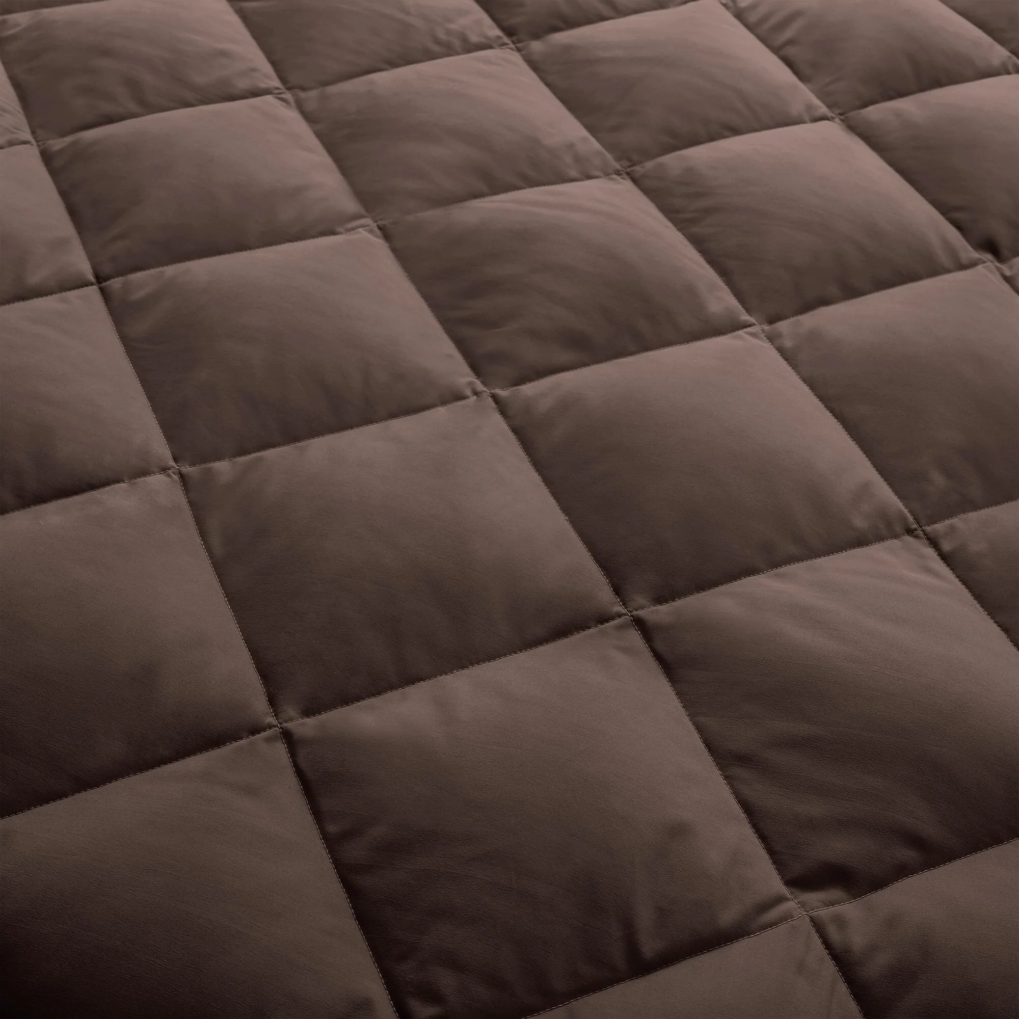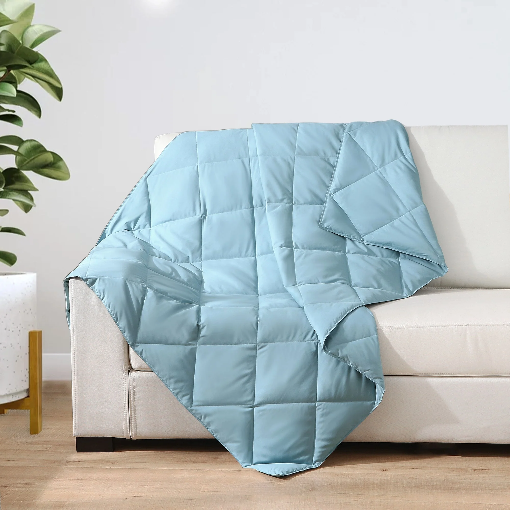 Our premium down bed throw blanket is crafted with a perfect blend of 30% down fiber and 70% feather fiber, providing an unparalleled level of softness and comfort. The unique diamond-quilted design not only enhances its aesthetic appeal but also effectively prevents the filling from shifting, ensuring long-lasting durability. Its lightweight material makes it an ideal choice for year-round use, whether you’re reading on the sofa, enjoying a cool evening outdoors, or taking it along for camping and travel. Available in three sizes to suit various needs. Machine washable for easy care, offering a seamless blend of warmth and comfort.