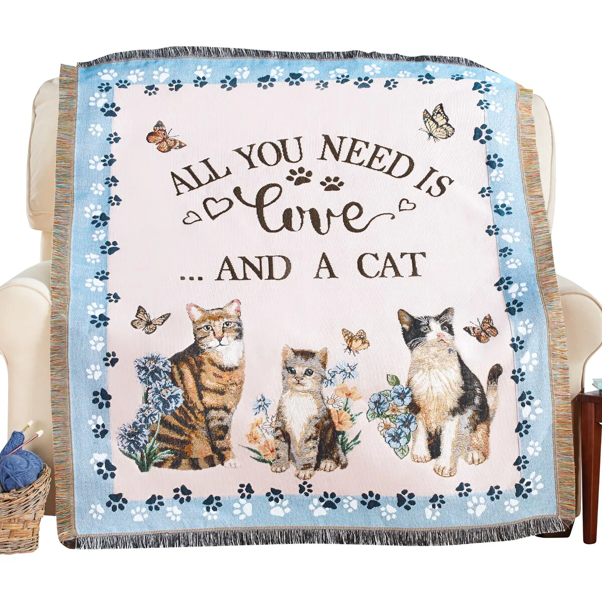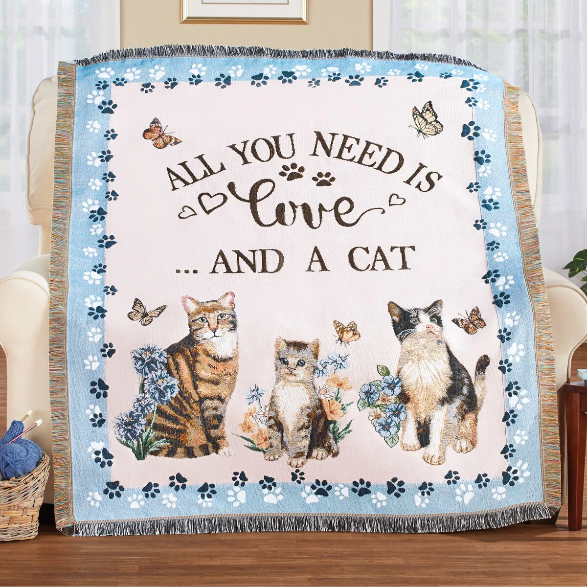 All You Need Is Love And A Cat Tapestry Throw Blanket