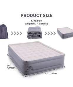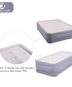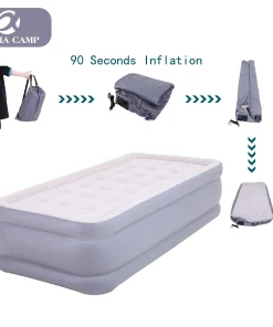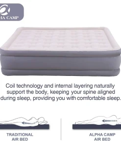 Alpha camp air bed pumps with built in pump inflates in under 2 minutes. Our portable, inflatable mattress has a sturdy coil beam construction – perfect for a comfy cat nap in your neck of the woods. It can be used as a floor mattress at home, a portable bed for traveling, and even as a camping mattress in the great outdoors. Includes a carry bag, making it easy to take your bed along with you anywhere you go. Inflate and deflate it any time you need to, and never worry about where you’re going to sleep again! Â