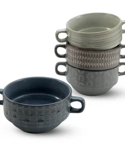 - Set of (4) American Atelier Glazed Soup Bowls with Handles – Assorted Blue