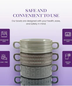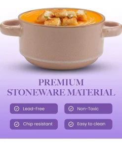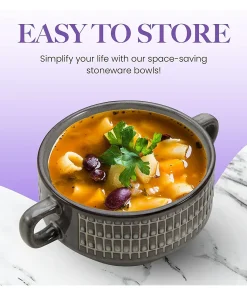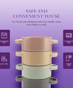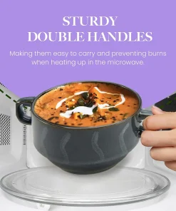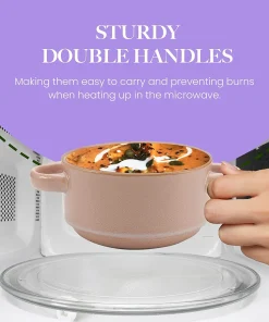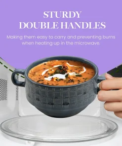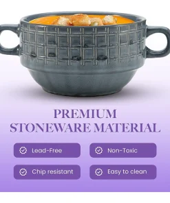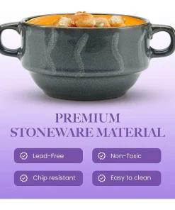 - DURABLE: soup bowls with handles are made of professional durable stoneware, high quality lead-free and non-toxic, high temperature resistant, safe, and odor-free, dishwasher, microwave, oven, and refrigerator safe