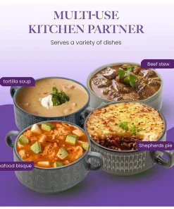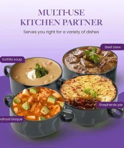 - CLASSIC DESIGN: The assorted colors and designs for this French onion soup crock is a great companion to any dining table, it also makes food look more palatable and attractive, and is great tableware to enhance your kitchen decor
