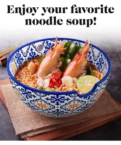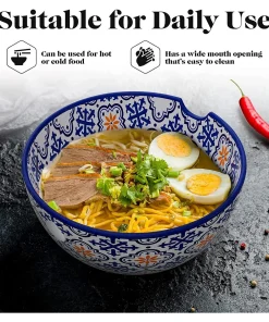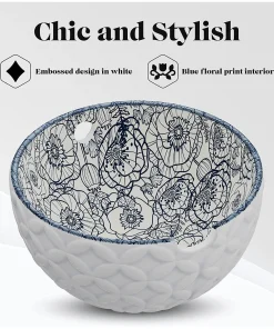 - Gorgeous Embossed Design – This ramen noodle bowl features a white embossed design and a blue floral print interior. Impress your guests with our kitchen bowls’ sleek and superbly stylish design!