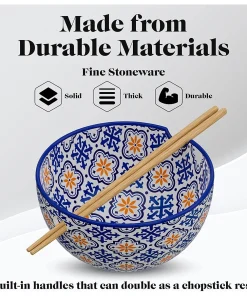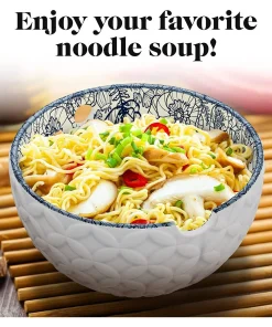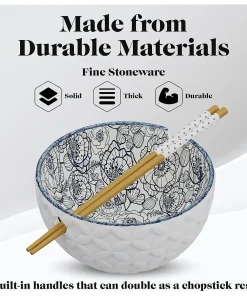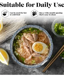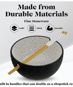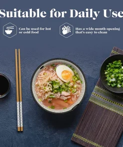 - Durable Construction – Made from fine stoneware, this instant ramen bowl is durable and suitable for everyday use. Unlike plastic, it does not discolor or absorb smell. Our solidly built ramen bowls with chopsticks can hold hot and cold food