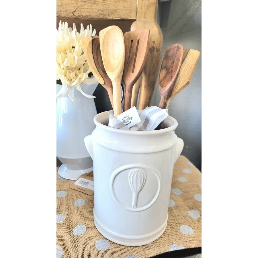 Amici Home Cooking Utensil Holder, Deep and Stable, Durable Utensil Crock for Kitchen Counter, Whisk Emboss – New