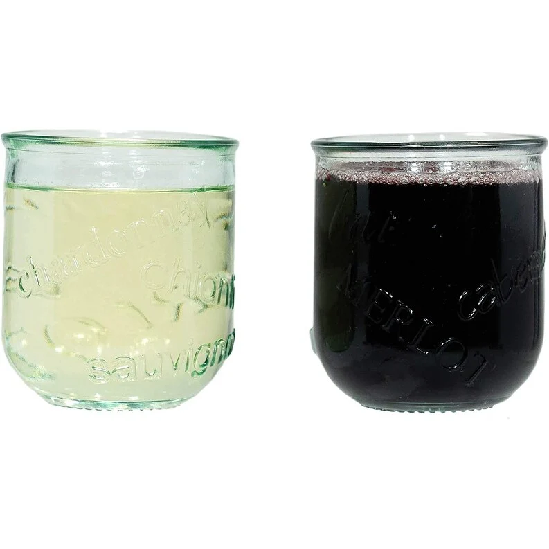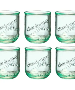 - Embossed Design – This glass features a variety of embossed types of wine around each glass, these glasses are sold as a set of 6.