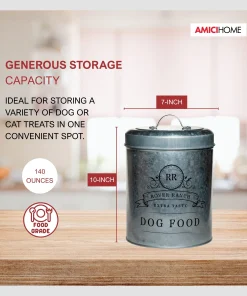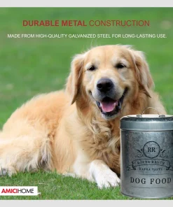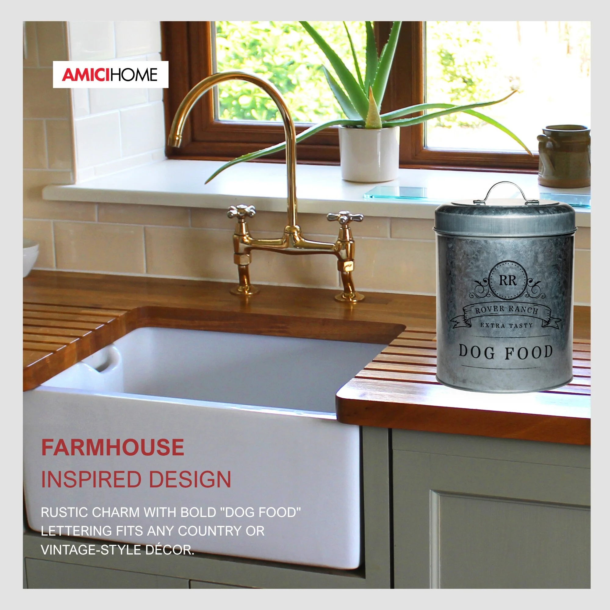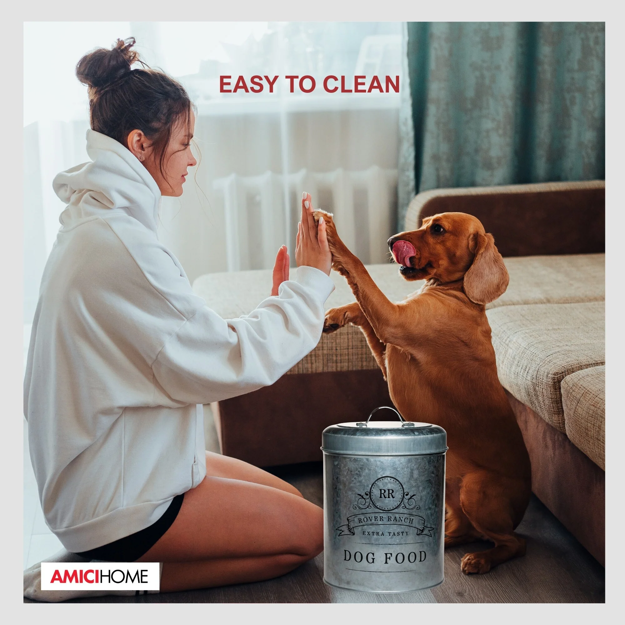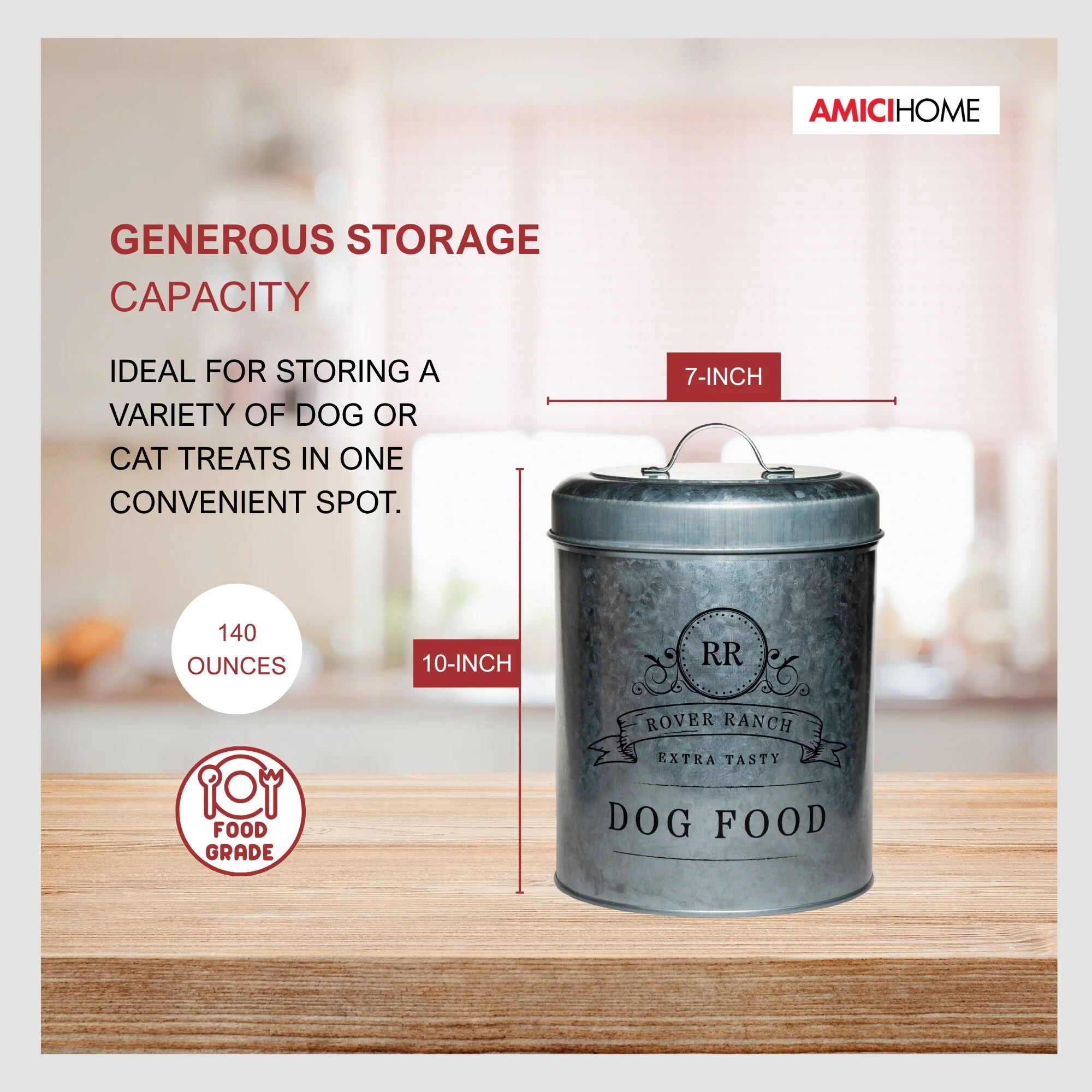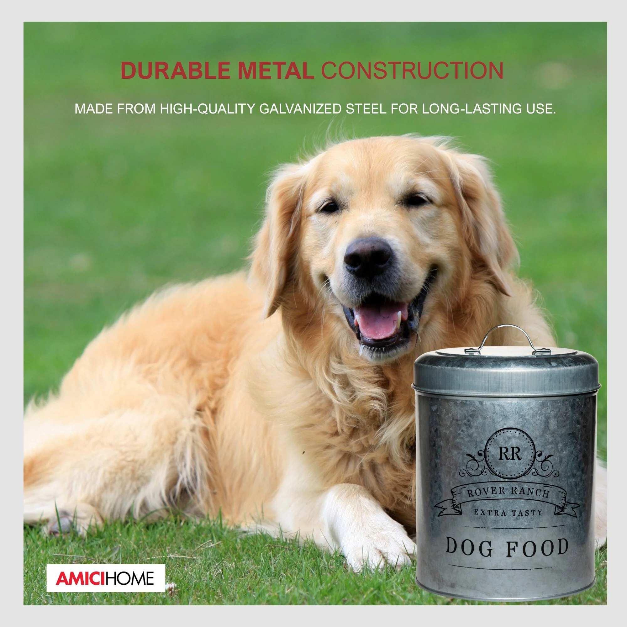 Amici Pet Rover Ranch 140oz Metal Dog Food Canister with Handle Lid & Silicone Seal – Large Pet Food Storage Container with Airtight Closure – Durable Pantry Organization Accessory for Dry Kibble – New
