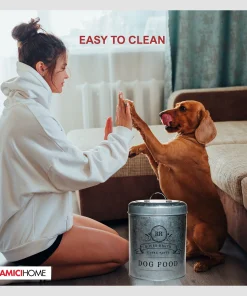 - Rugged Metal Build: Made from durable metal, this container withstands everyday wear and tear while providing dependable dog food storage in your kitchen, pantry, or mudroom.