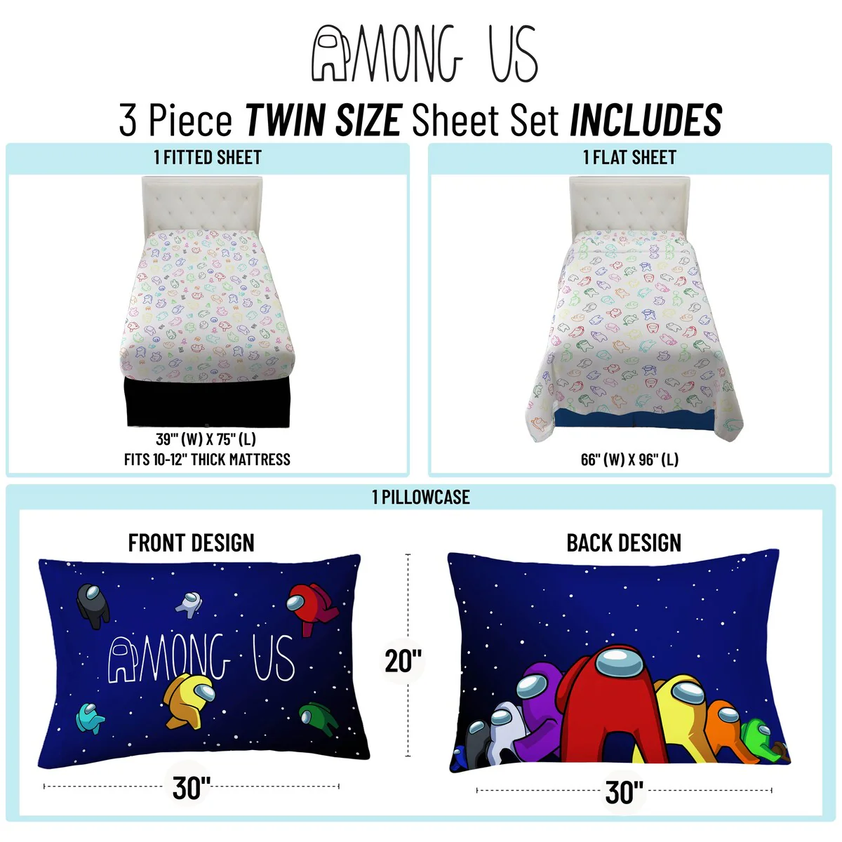 Among Us Crewmates 3 Piece Twin Sheet Set, 100% Microfiber