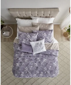 - ICONIC & STYLISH: The Twin size Anne Klein Halsbury Comforter bed set features a lavender floral pattern for easy sophistication in any bedroom or dorm room. Reverses to a solid. Â Â