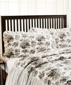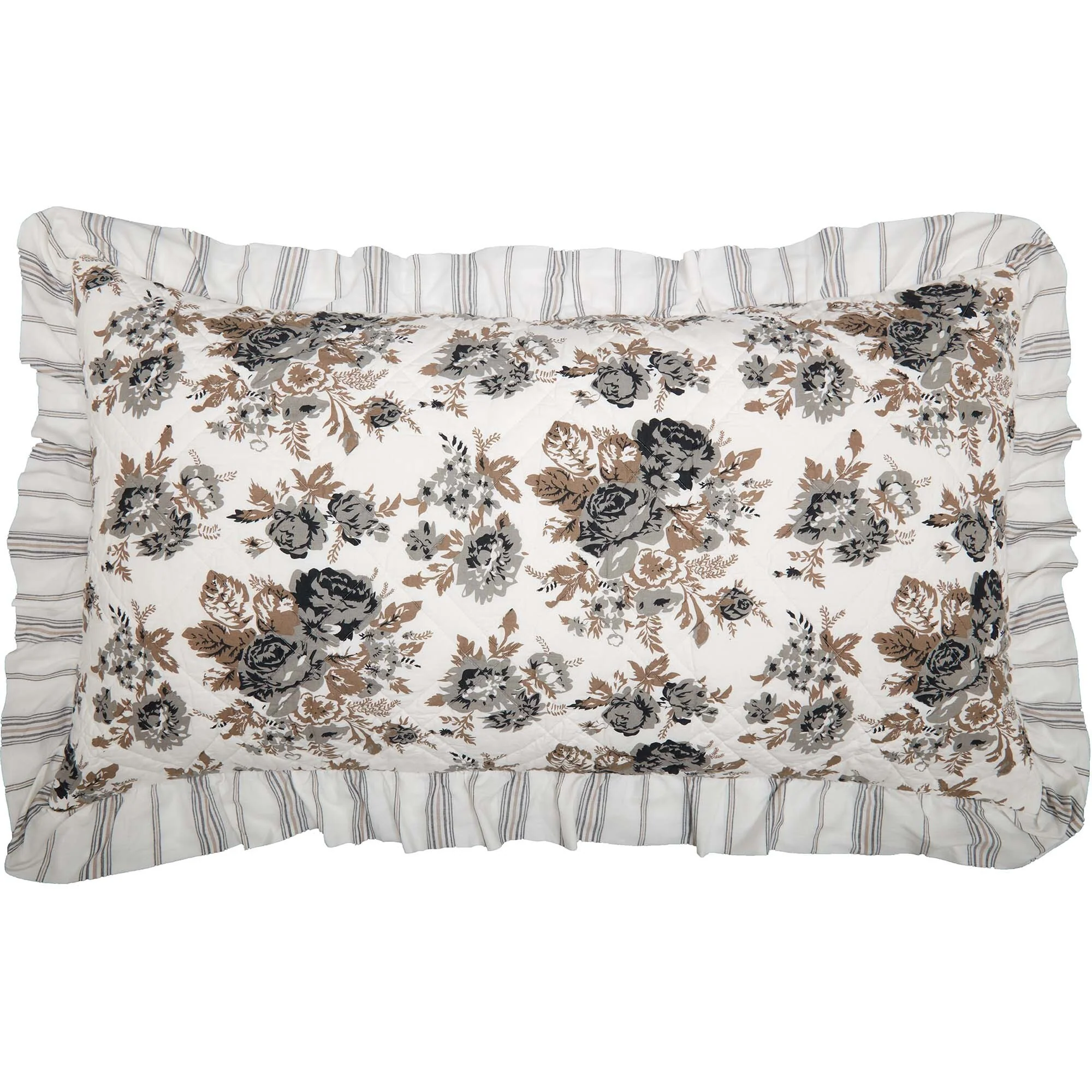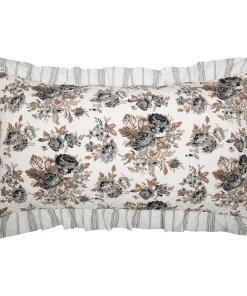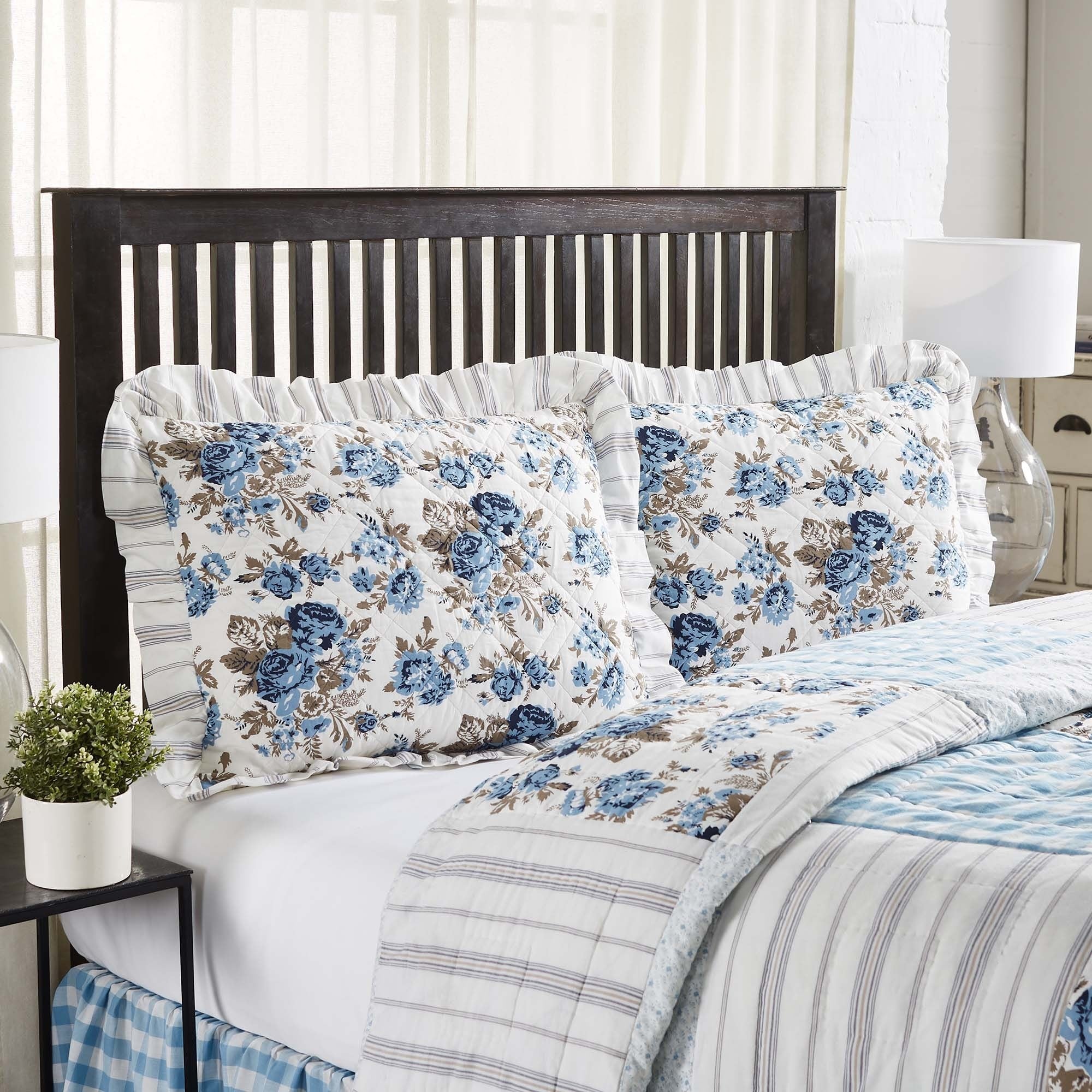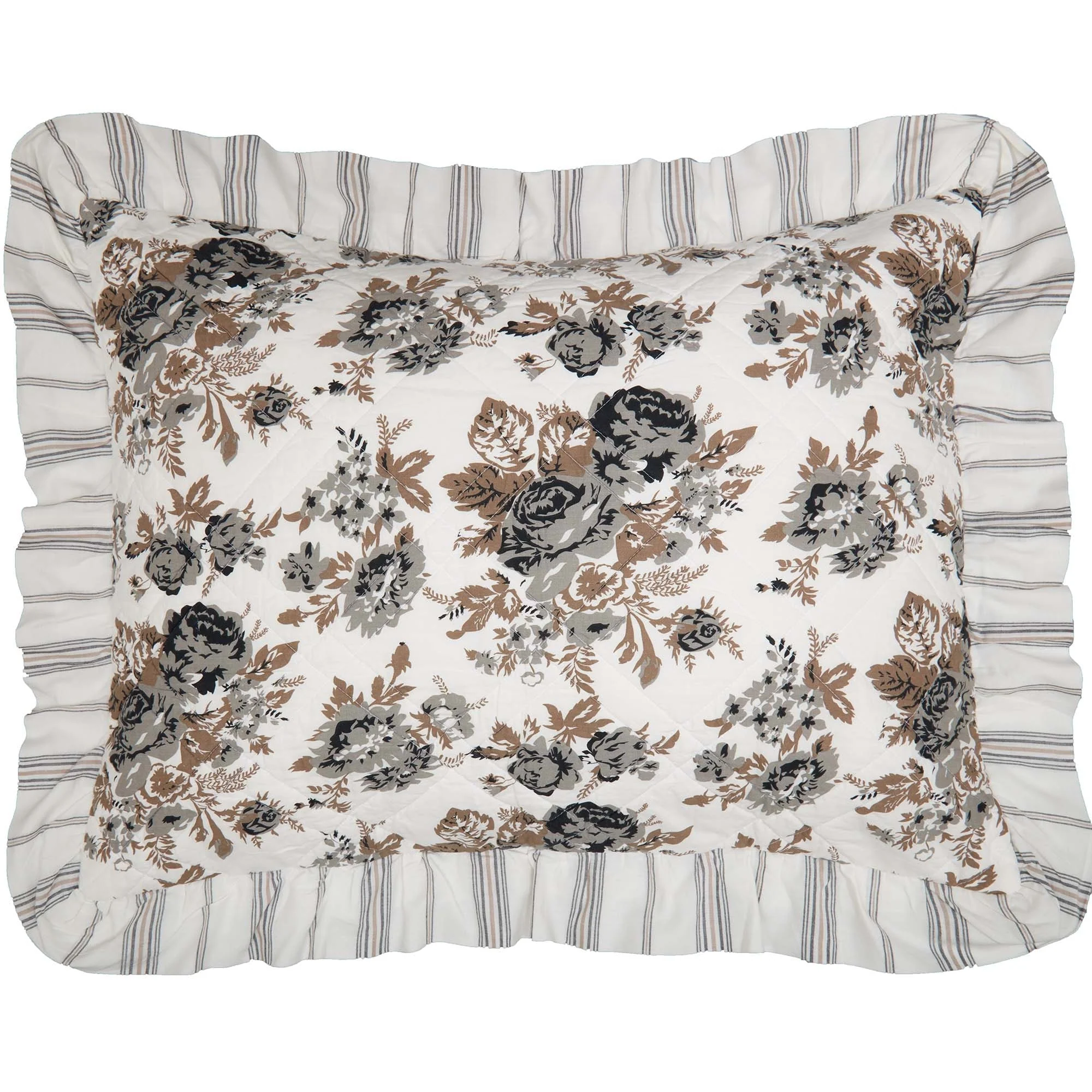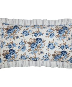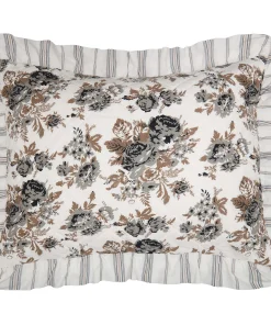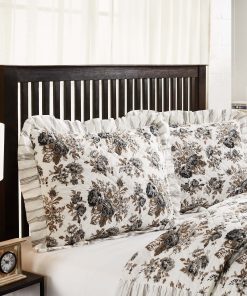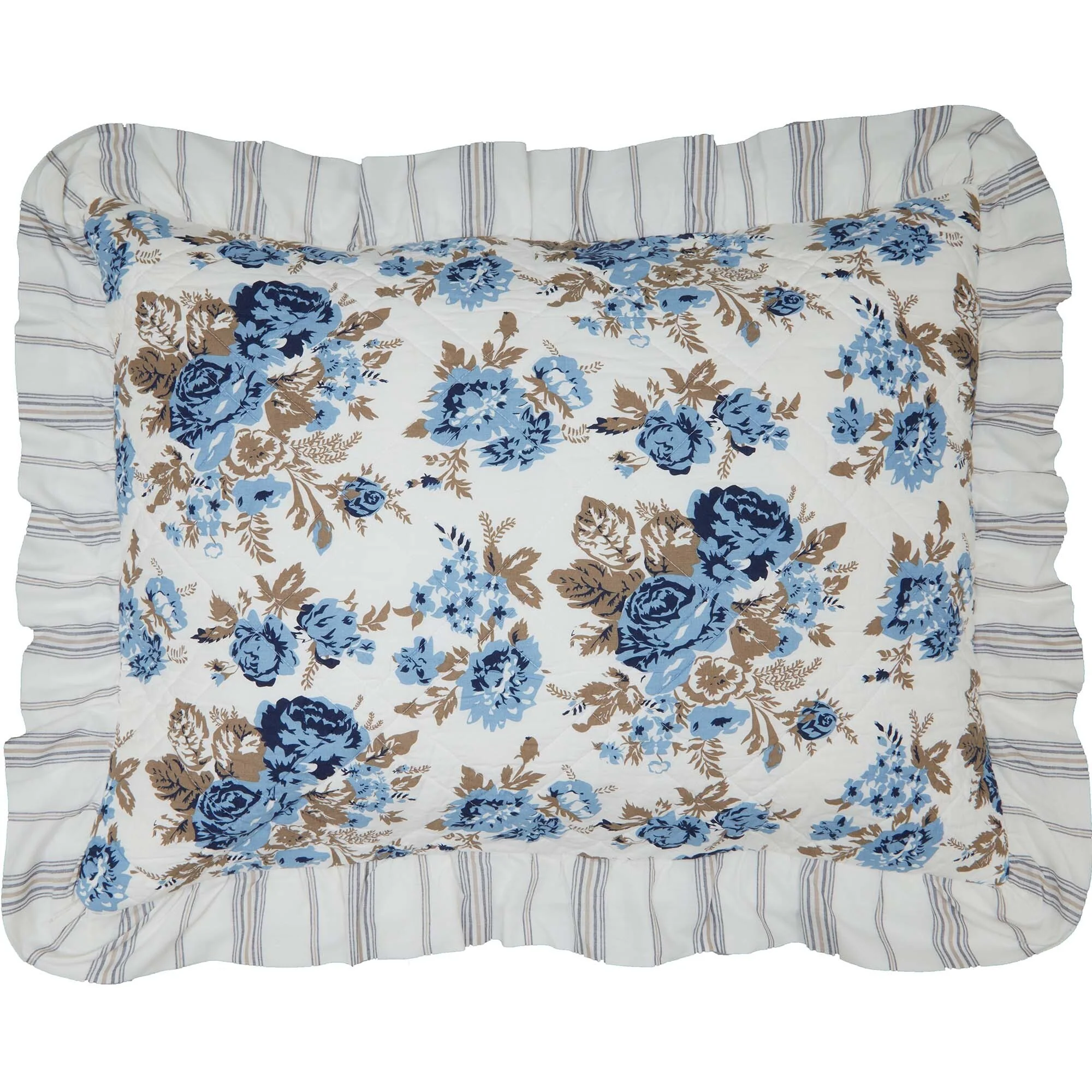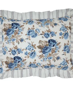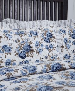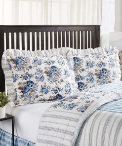 Dress your bed in cozy comfort and vintage charm with the Annie Sham . Beautifully showcasing unique floral print in dusk blue, soft white, and portabella brown finished with a graceful stripe pattern ruffled edge that updates your home decor with a lighthearted country feel. Our 100% cotton pillow sham adds the perfect combination of simplicity and elegance to match your vintage-chic style.