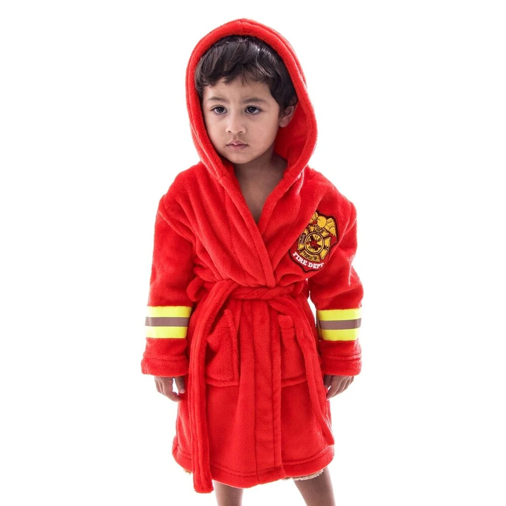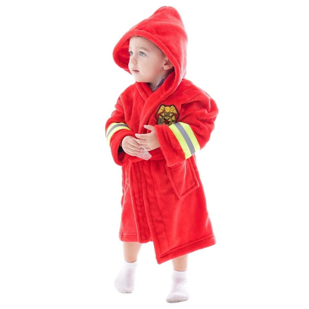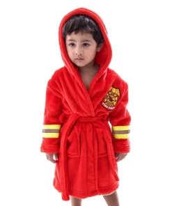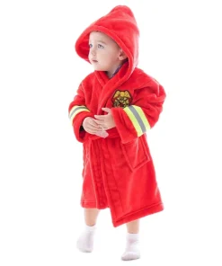 Pique your child’s imagination and ramp up the fun with this red fire chief bathrobe that inspires imaginative play. Soft and absorbent material makes this bathrobe a good choice for drying off after a bath or a swim, and it’s warm enough to wear over pajamas on a chilly Saturday morning.