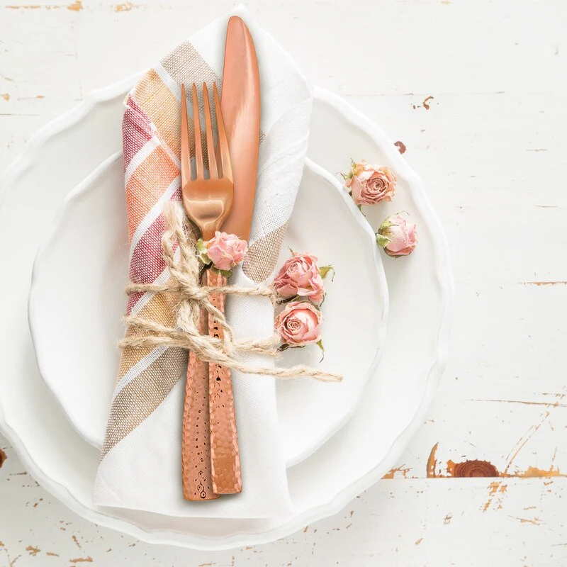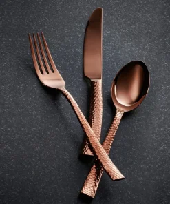 Up the glam factor at your next dinner party with the lustrous gold titanium-plated Paris Hammered Flatware Set by Argent Orfèvres™. The exquisitely hammered treatment with mirror polish finish reflects the light to display variations in color that add distinct character and drama to your table setting. Crafted from versatile 18/10 stainless steel, each piece showcases a metallic finish featuring a textured handle with handmade appeal.
