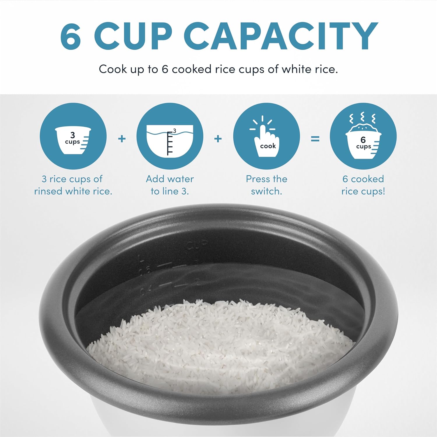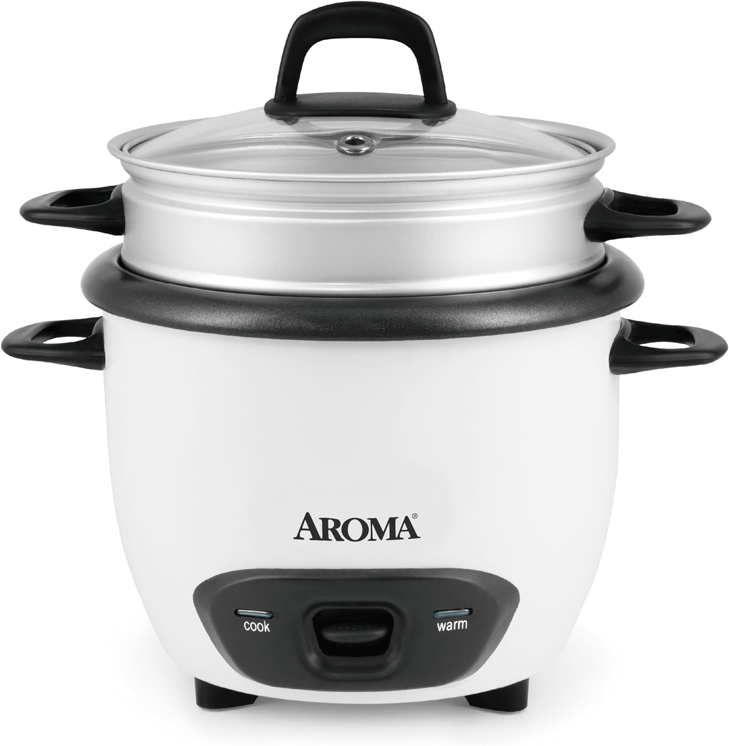 Aroma Housewares 6-Cup (Cooked) (3-Cup Uncooked) Pot Style Rice Cooker and Food Steamer (ARC-743-1NG), White