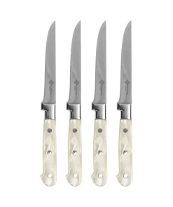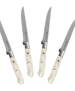 Au Nain, Set of 4 Steak Knives, with Pearlized Champagne Handles – White