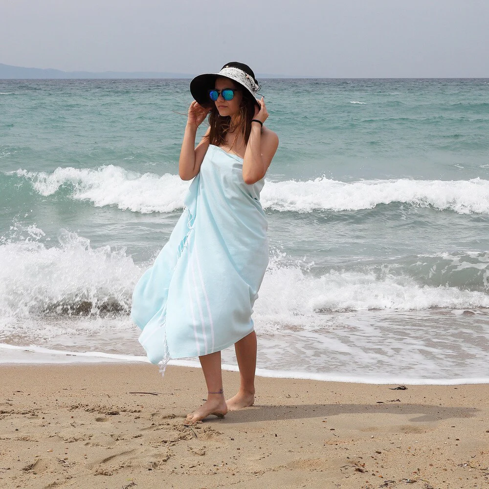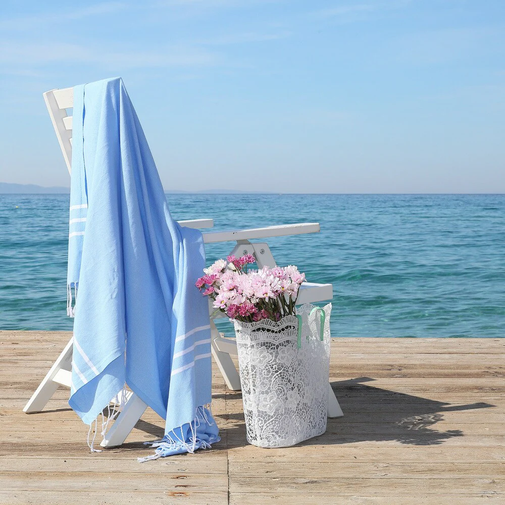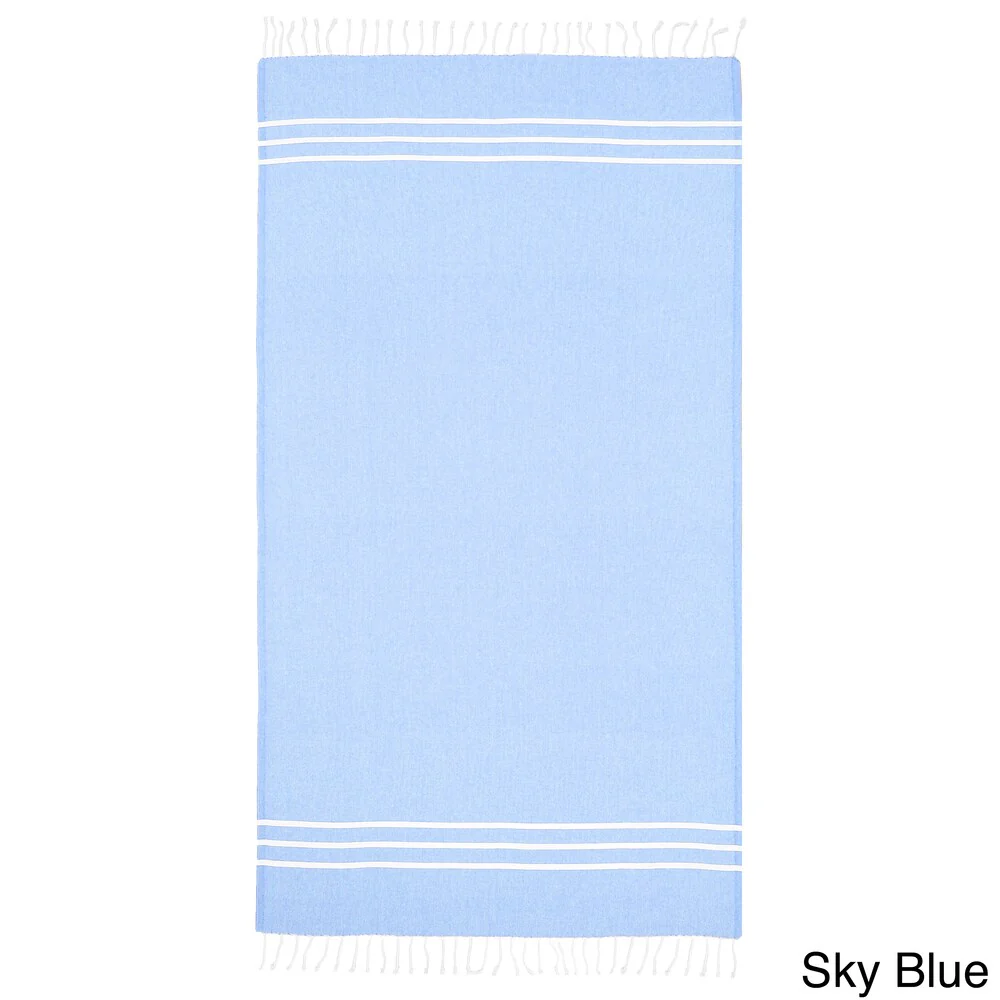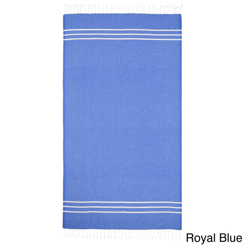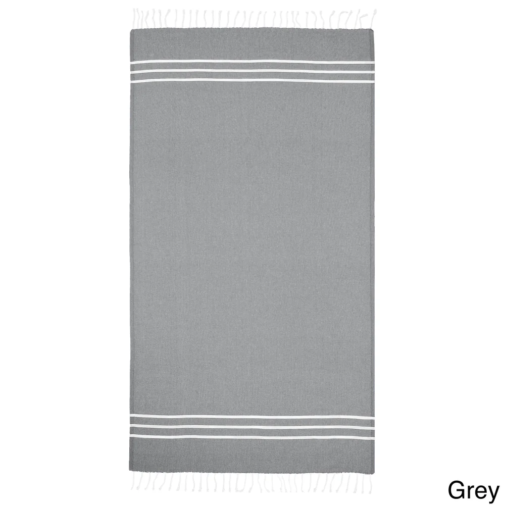 Experience luxury and style with the Authentic Ella Pestemal Fouta Turkish Cotton Bath/Beach Towel. This oversized towel made from 100% Turkish cotton is perfect for your beach and bath needs. Its eco-friendly design prevents mildew, while its hand-loomed texture and lightweight material make it versatile enough for use as a sarong, chaise lounge cover, shawl, picnic blanket, or tablecloth. With its fast-drying fringe, this fashionable towel is easy to pack and carry.