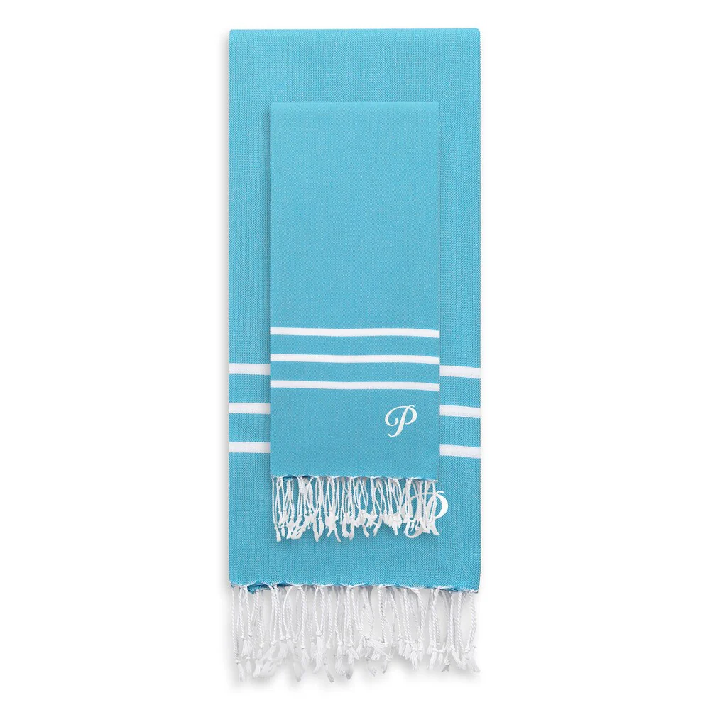 Hand-woven with lightweight yet absorbent Turkish cotton, these white and orange Ella towels are equally great for a day at the beach or getting ready at home. The pestemal towels feature a stylish striped pattern with an embroidered initial of your choice, making them a perfect gift for any occasion. The towels are machine washable for easy care and cleaning.