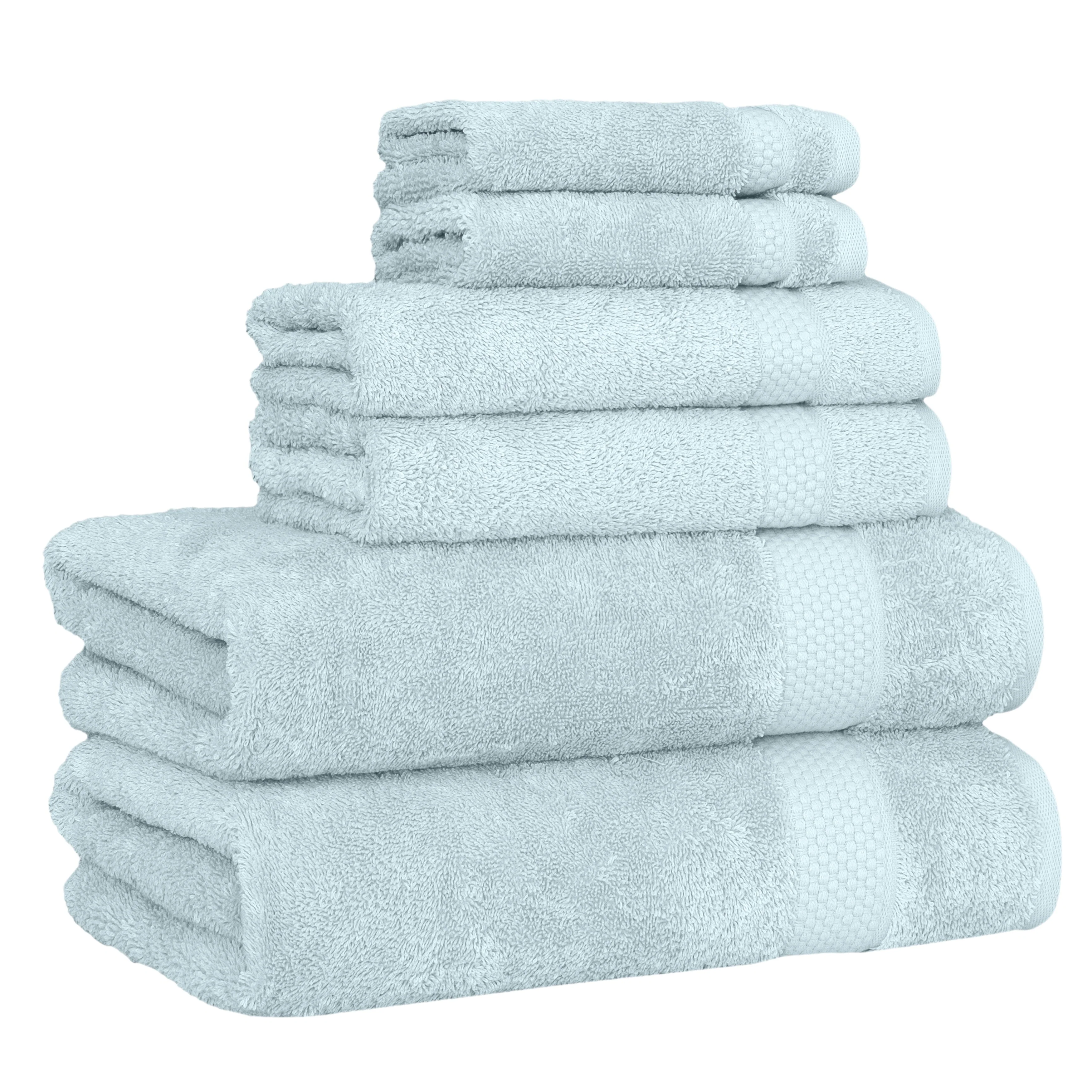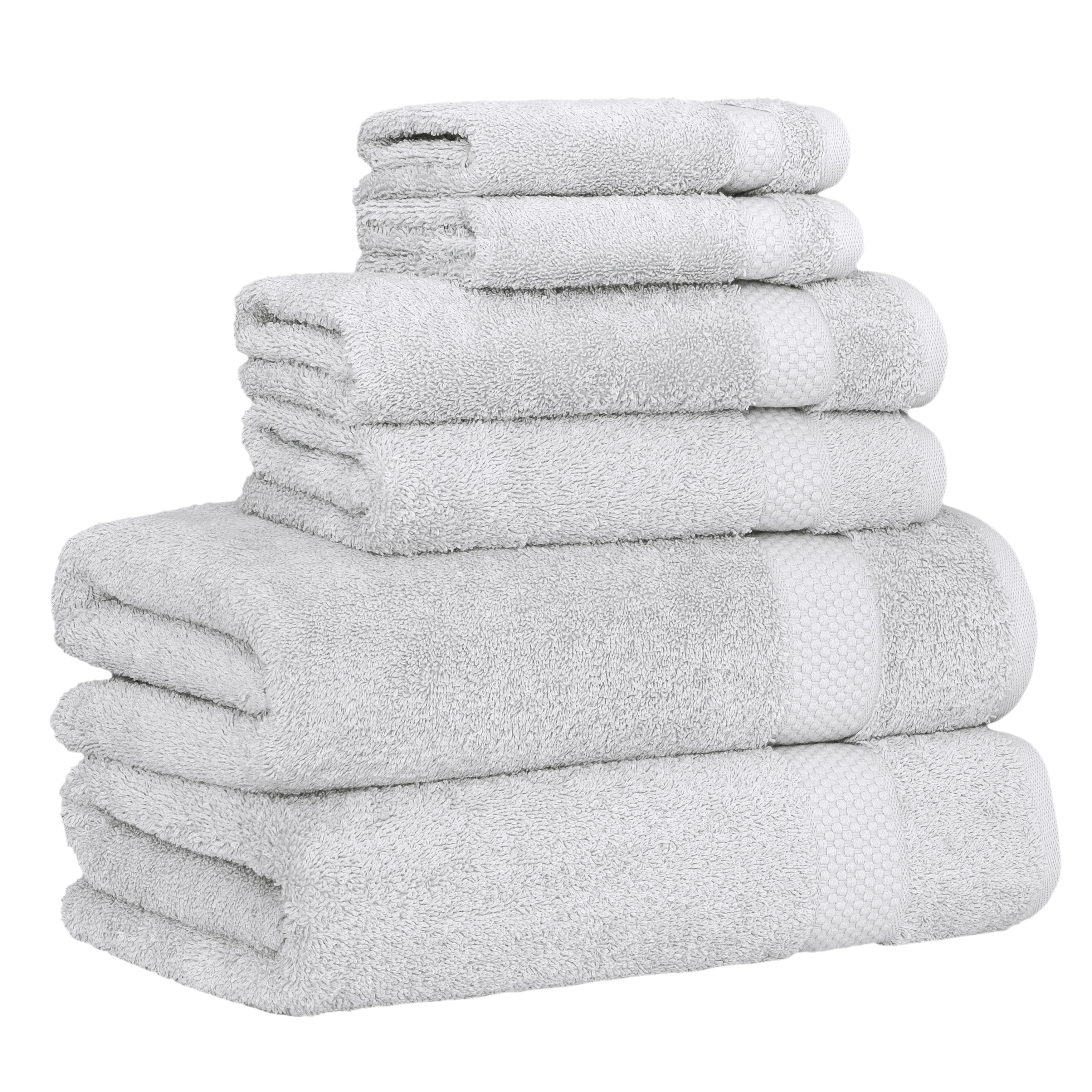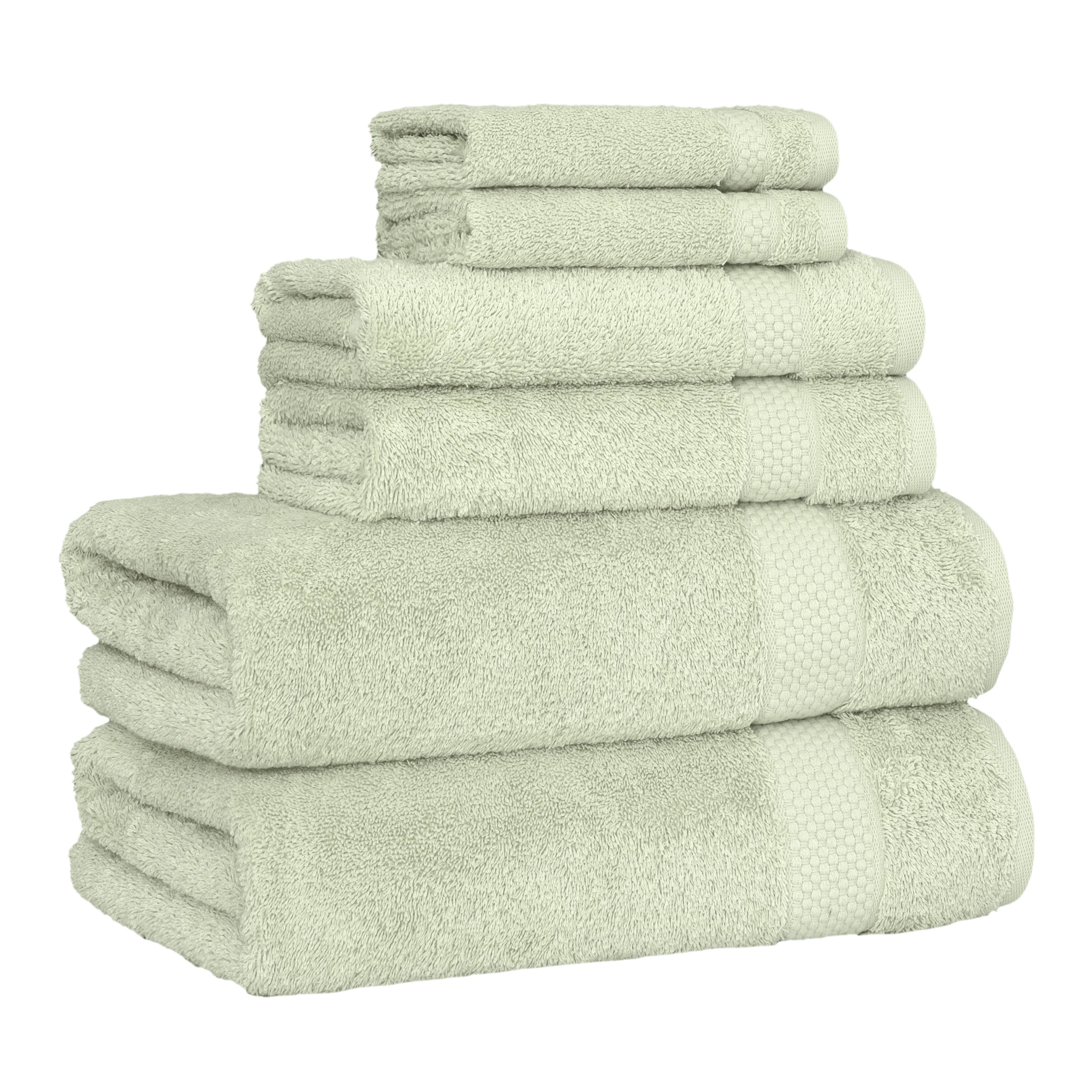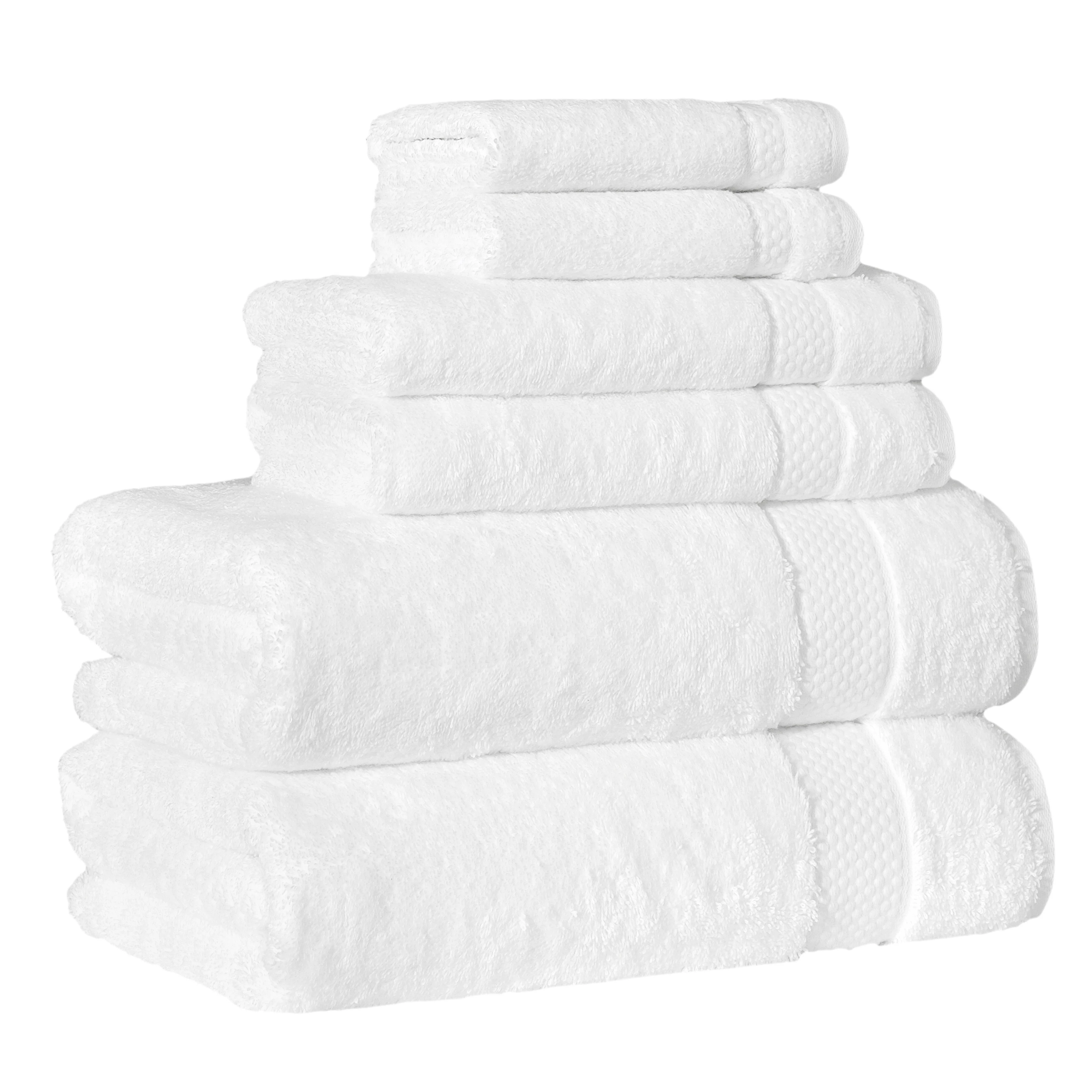 • Set includes 2 bath towels (27” x 54” / 580 GSM), 2 hand towels (16” x 30” / 580 GSM), 2 washcloths (13” x 13” / 580 GSM)