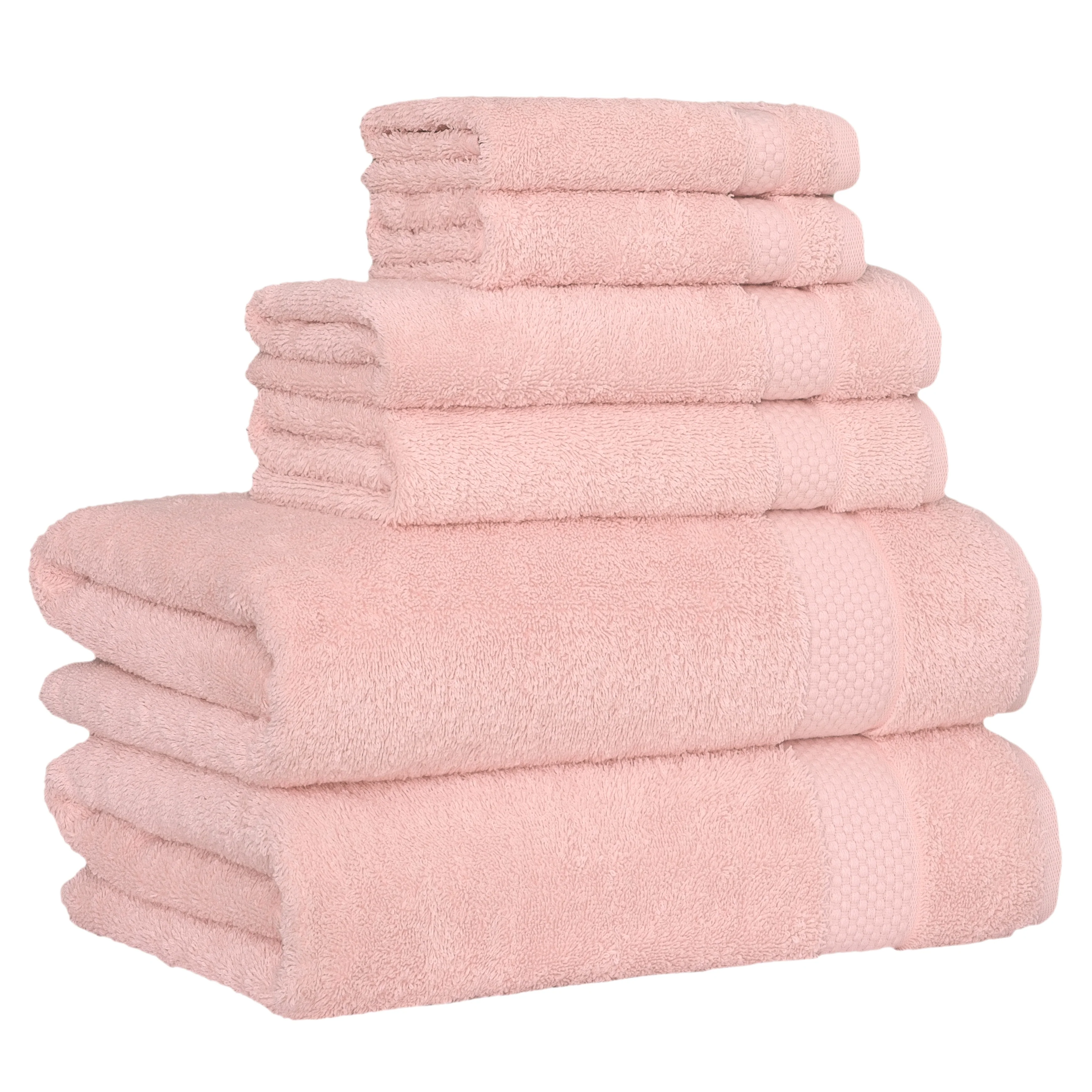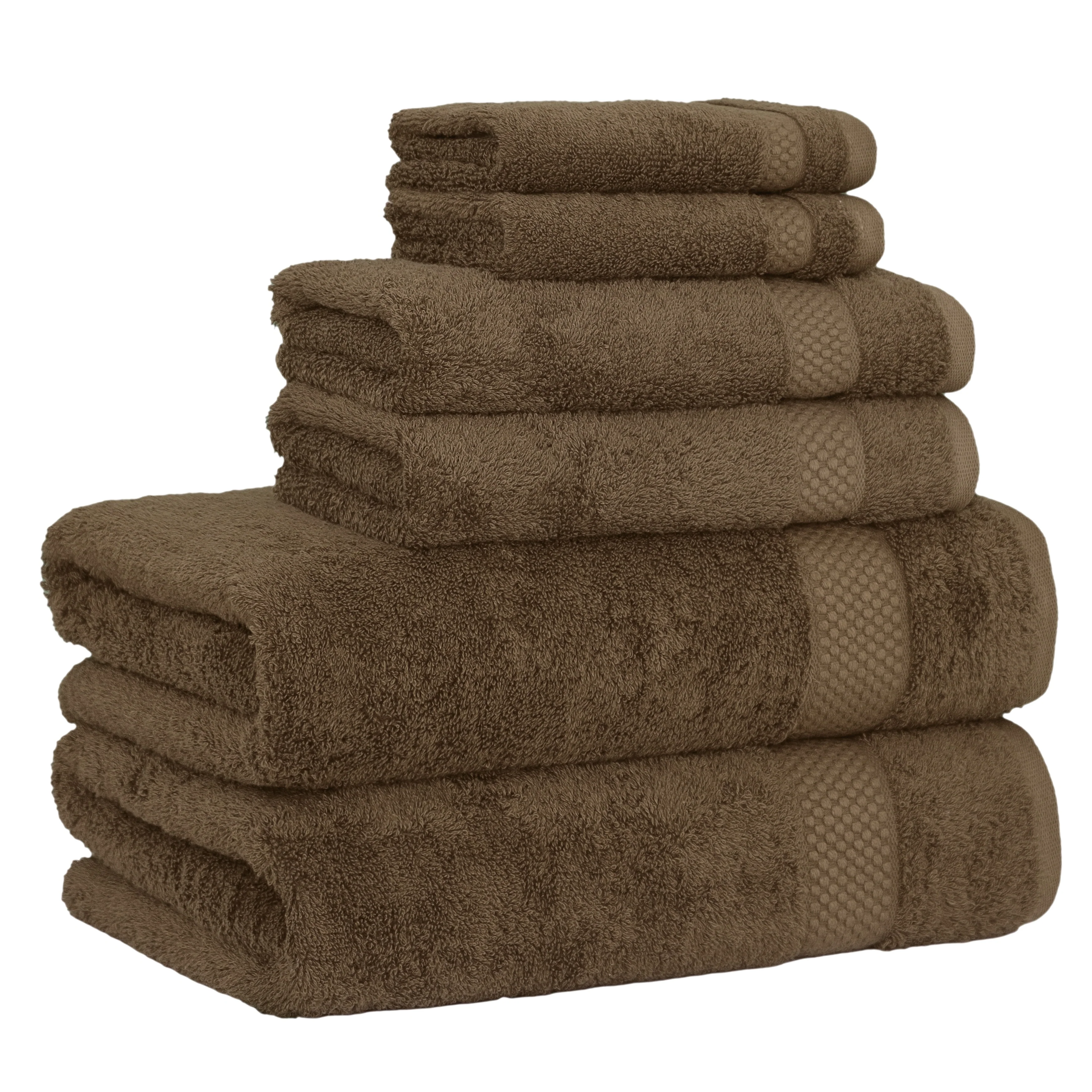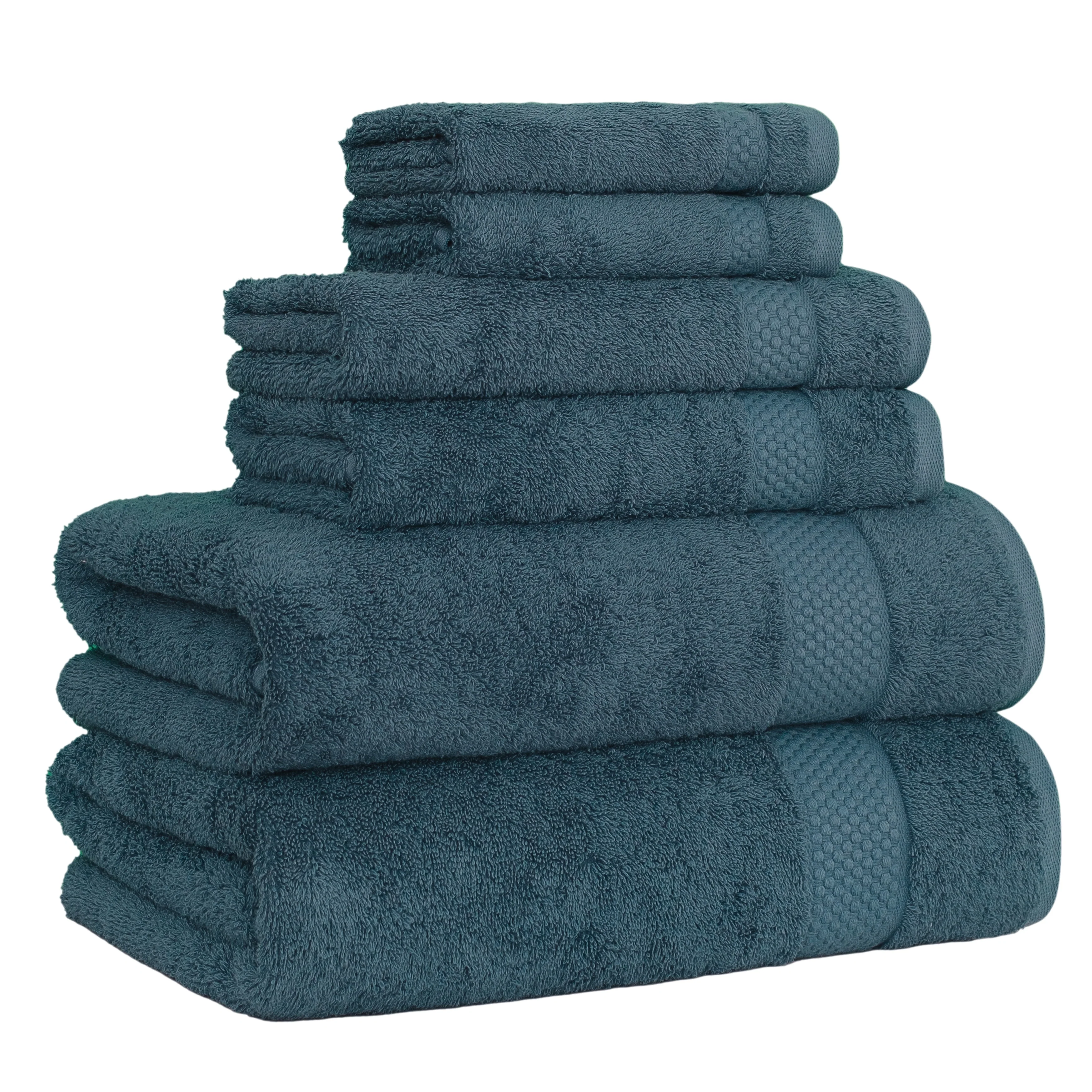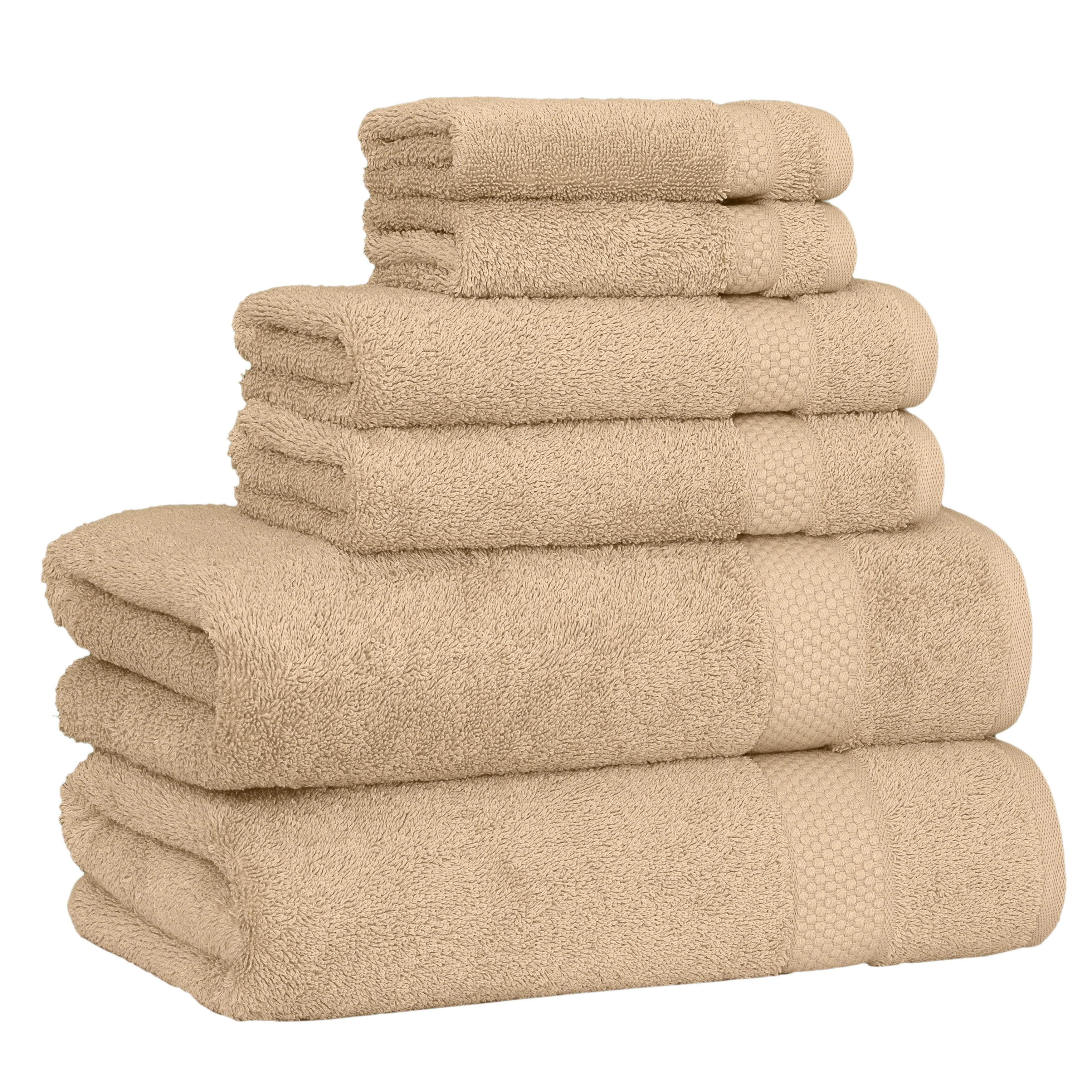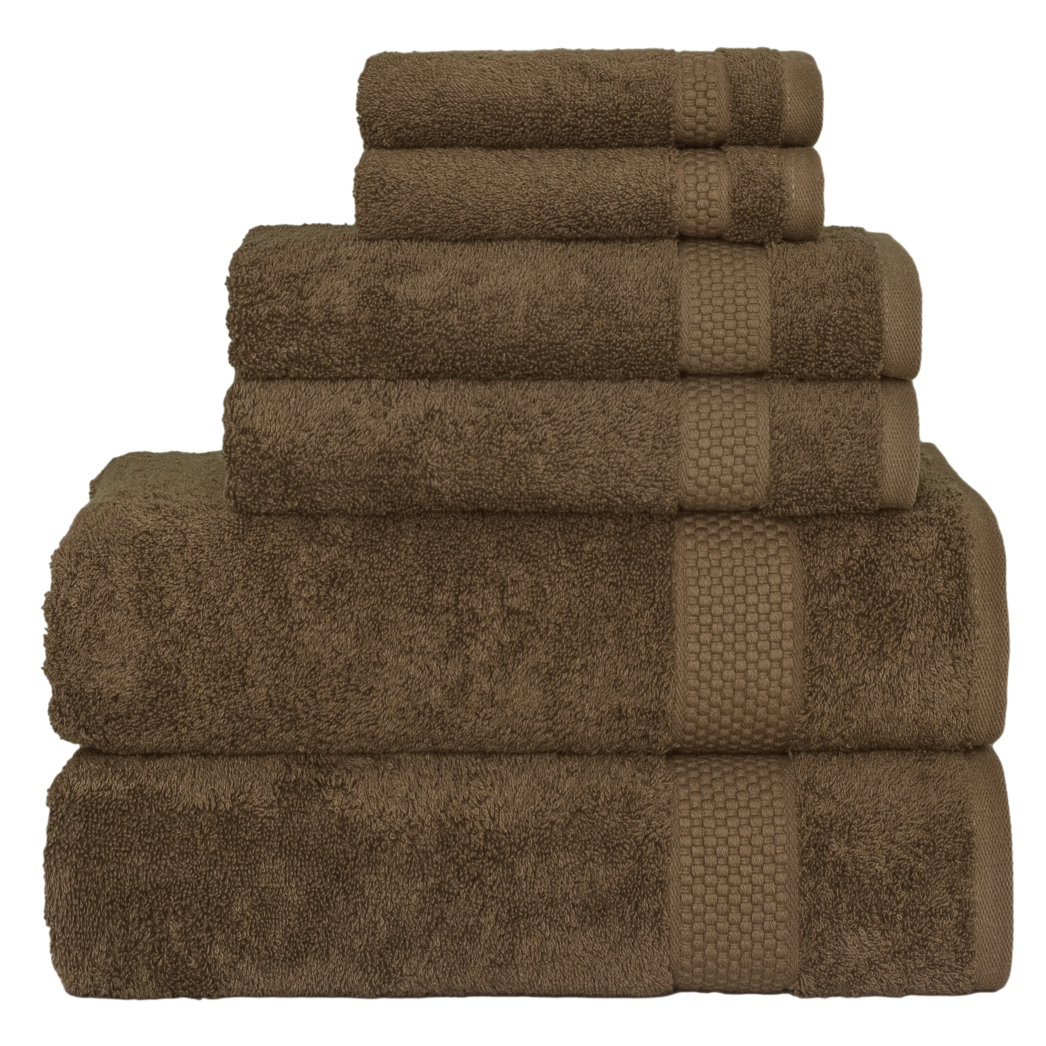• Set includes 2 bath towels (27” x 54” / 580 GSM), 2 hand towels (16” x 30” / 580 GSM), 2 washcloths (13” x 13” / 580 GSM)