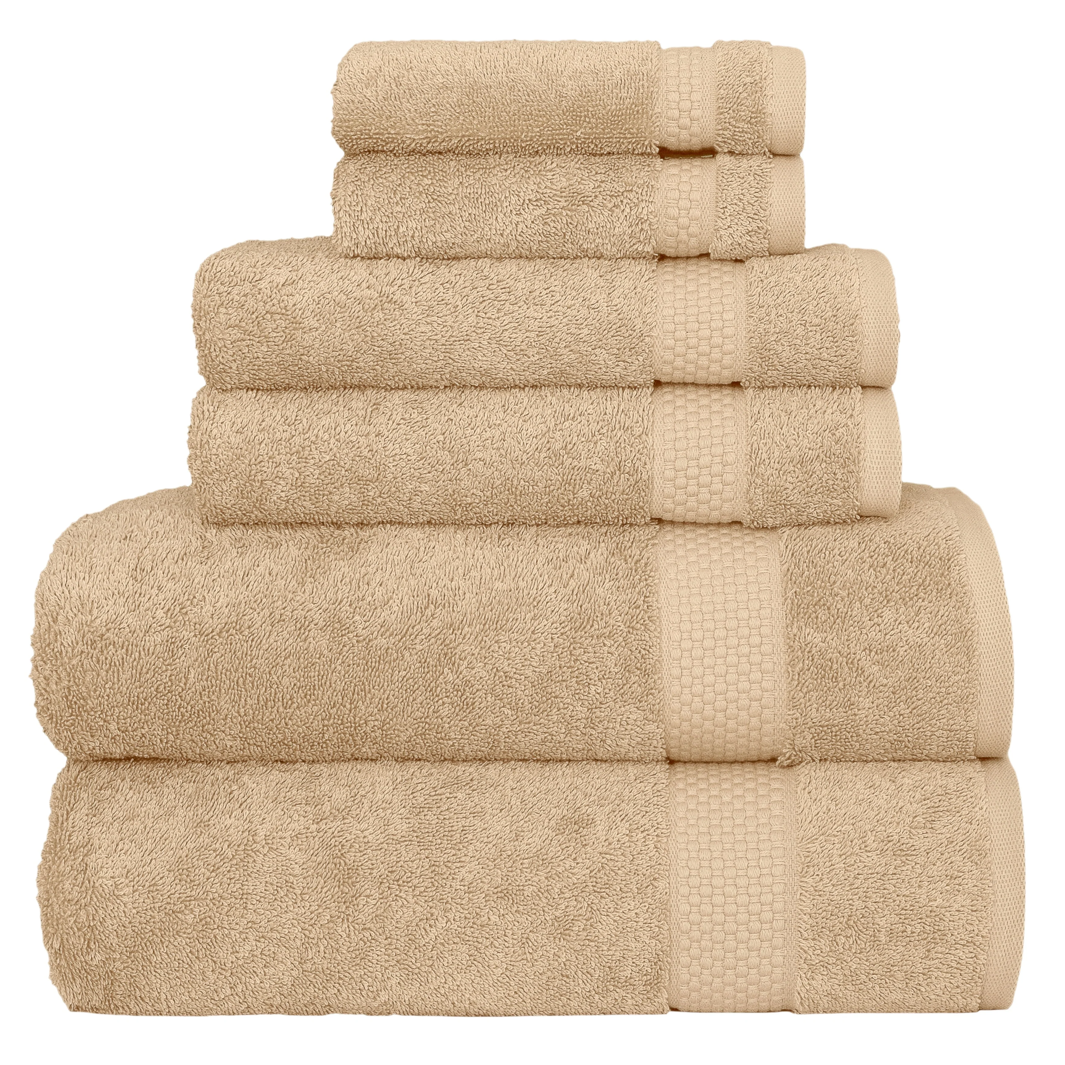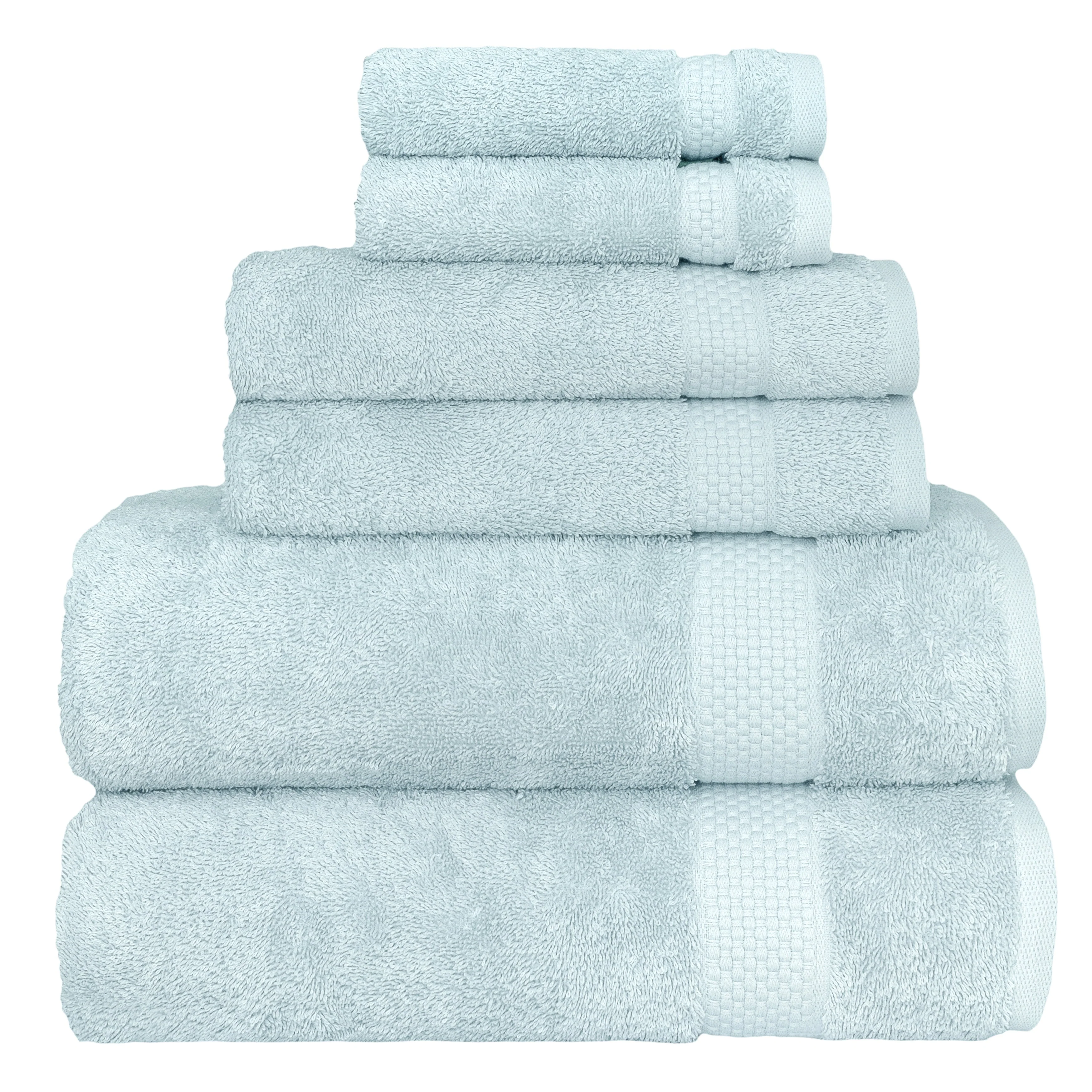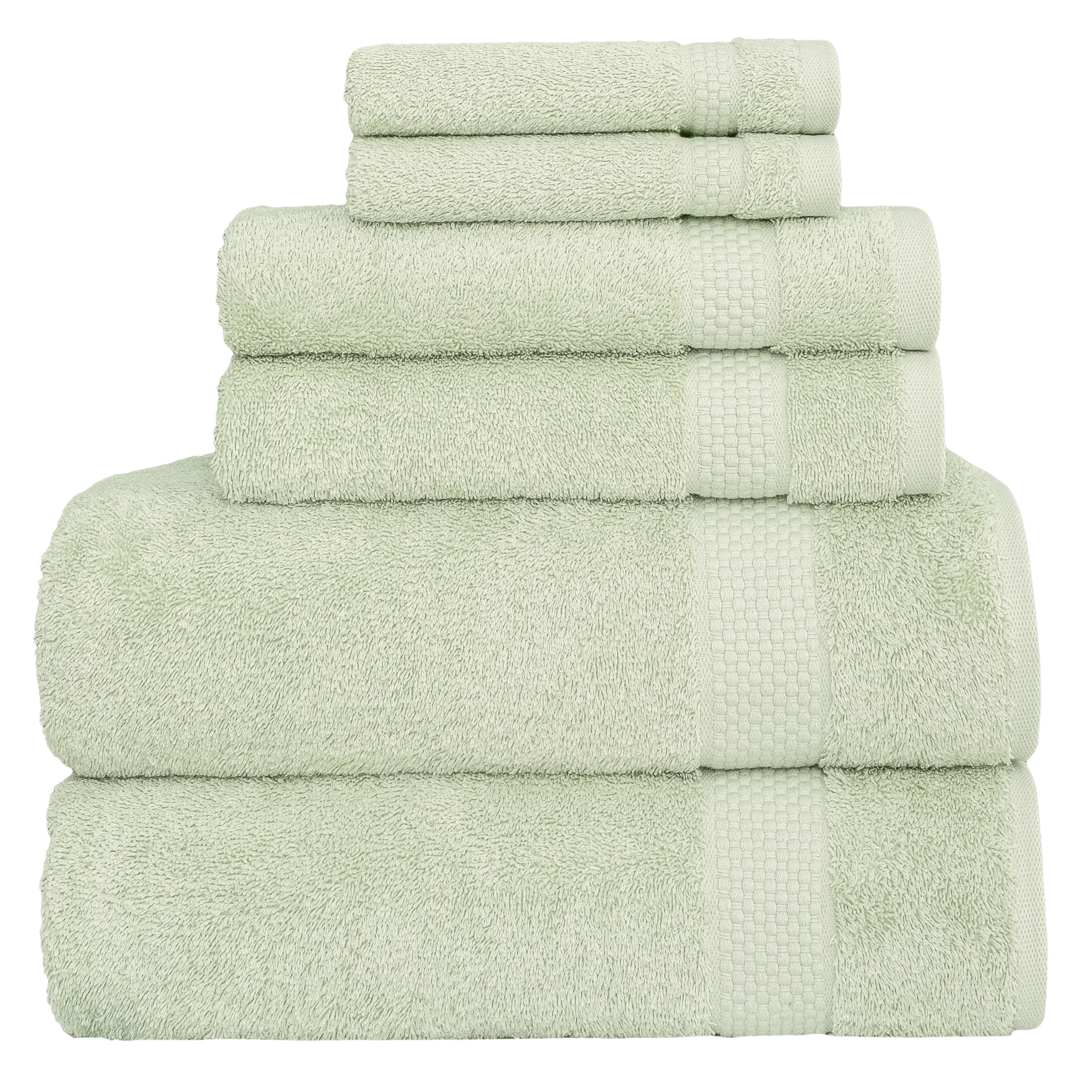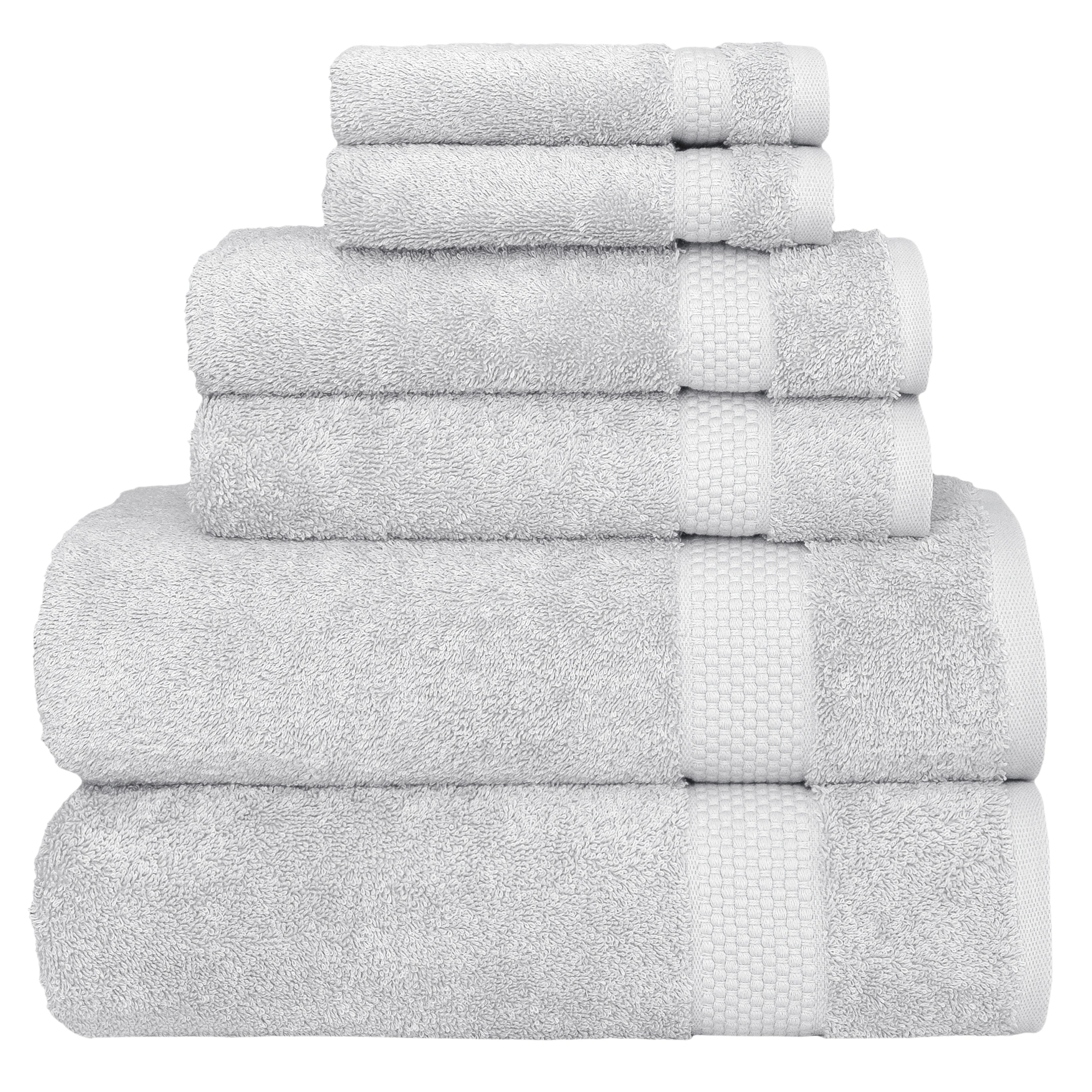 • Set includes 2 bath towels (27” x 54” / 580 GSM), 2 hand towels (16” x 30” / 580 GSM), 2 washcloths (13” x 13” / 580 GSM)