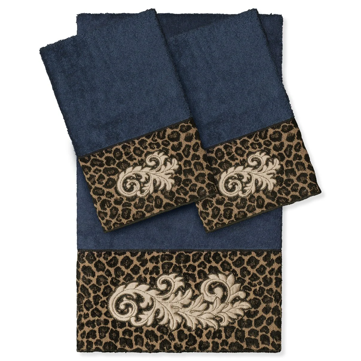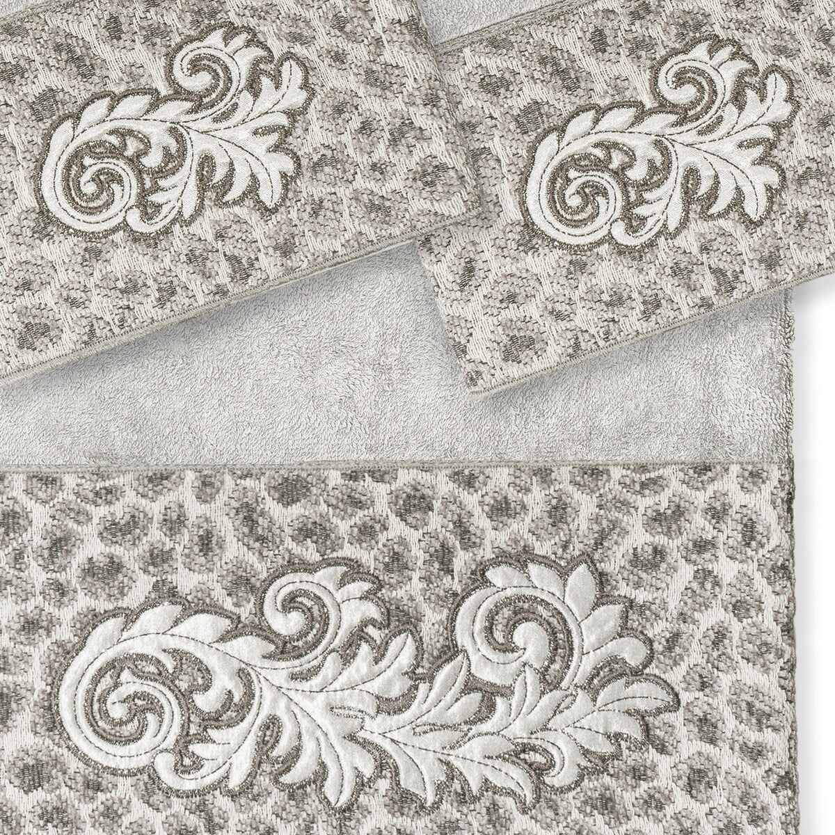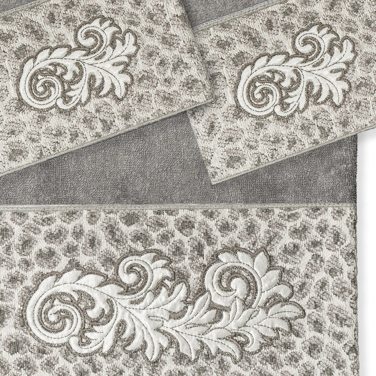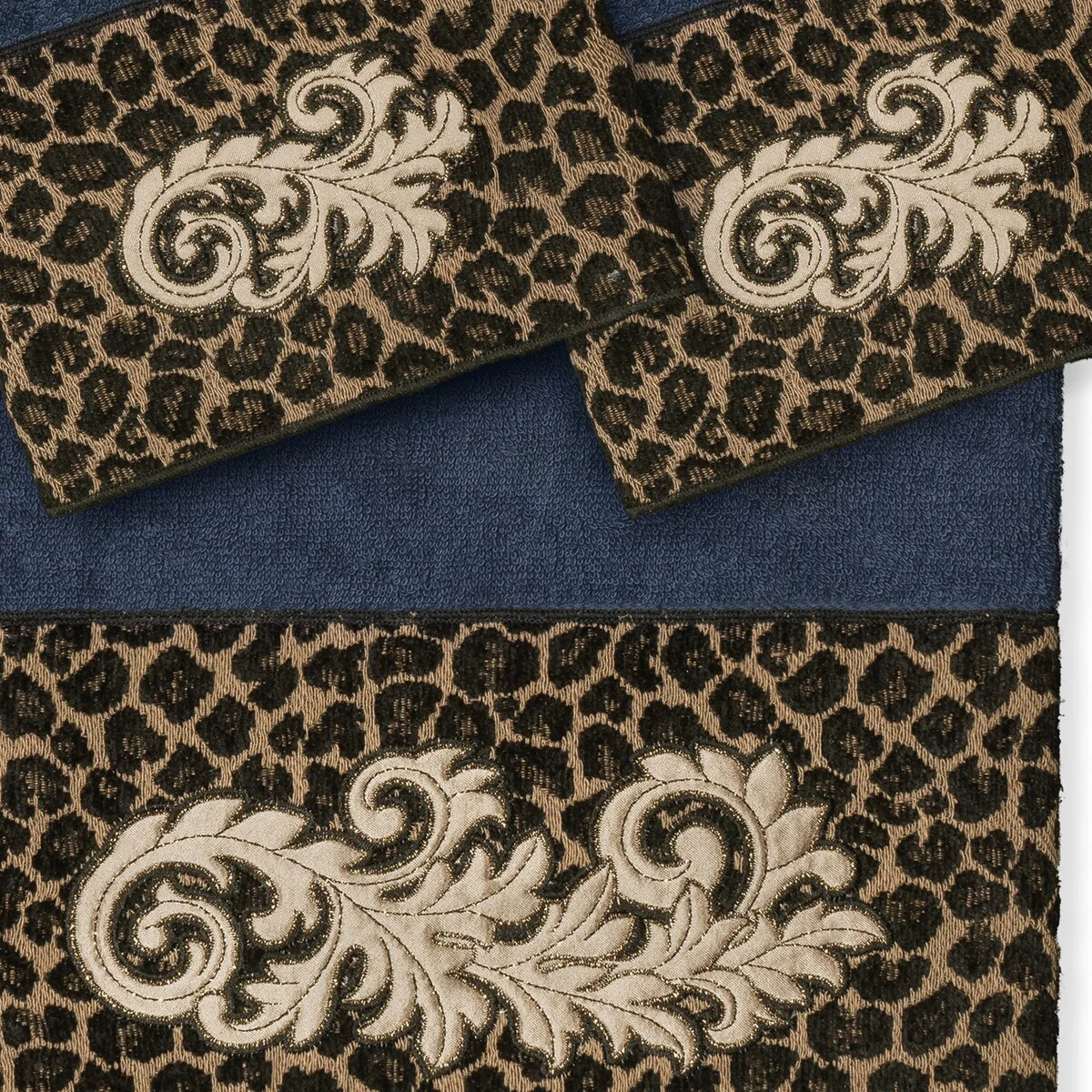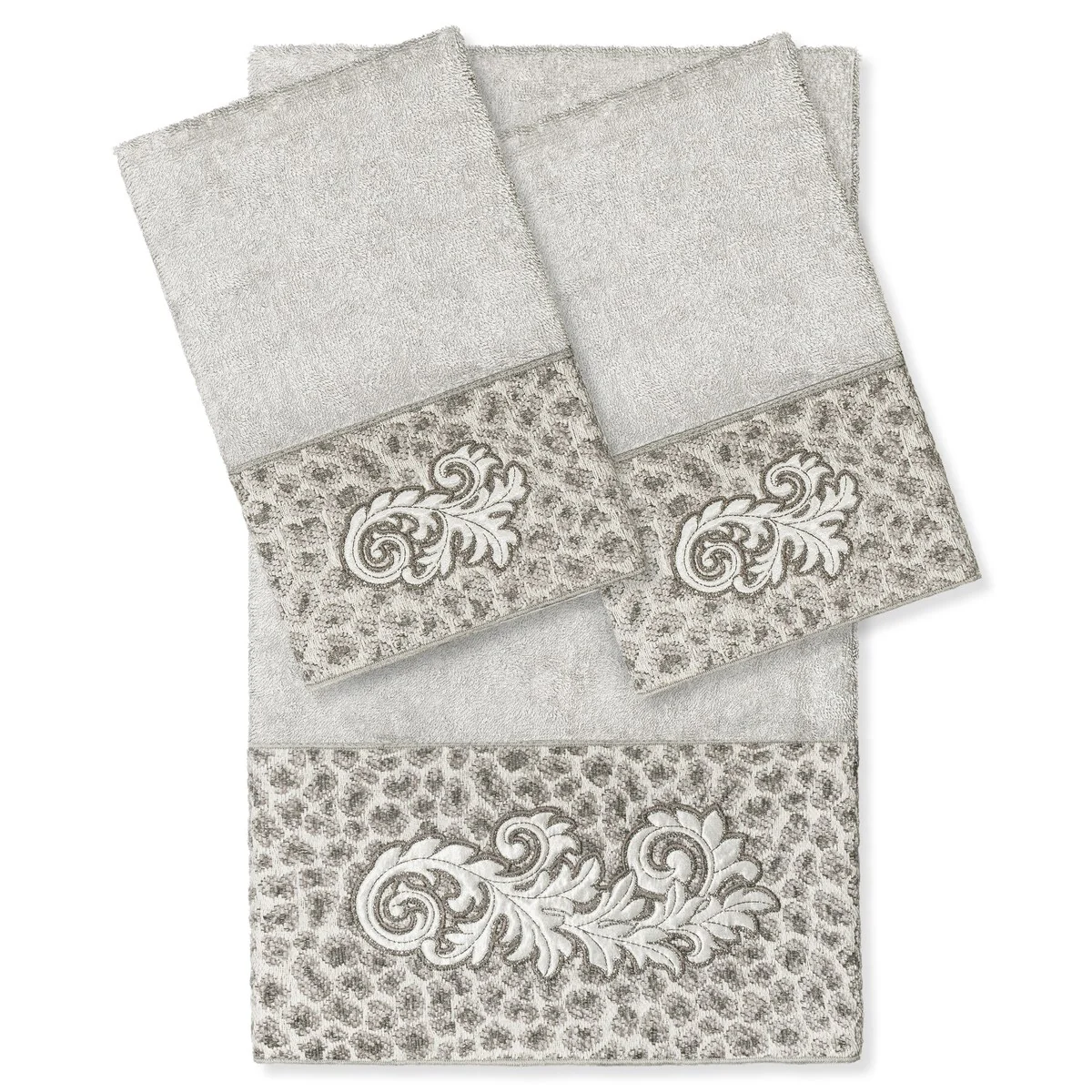 The April Embellished Towel Collection features an elegant lustrous appliqué scroll motif, embroidered on a plush cheetah patterned border. These soft and luxurious towels are made of 100% premium Turkish Cotton and offer lasting absorbency and superior durability.